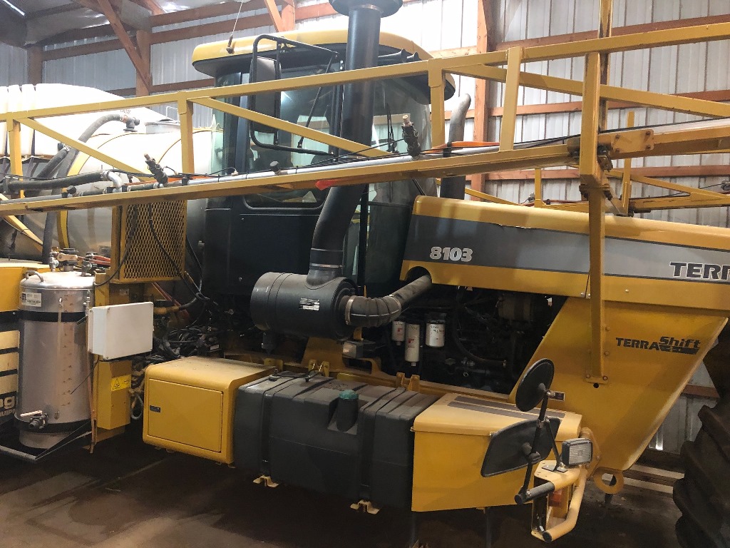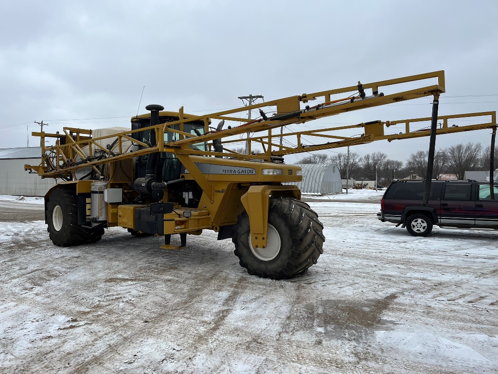 2005 TerraGator 8103 Liquid Sprayer (LD1247), powershift transmission, 85 foot booms, 5 section, 1,800 gallon stainless steel tank, Raven SCS 5000 controller, Smart Trax auto steer, high capacity pump, shows 2,738 hours.