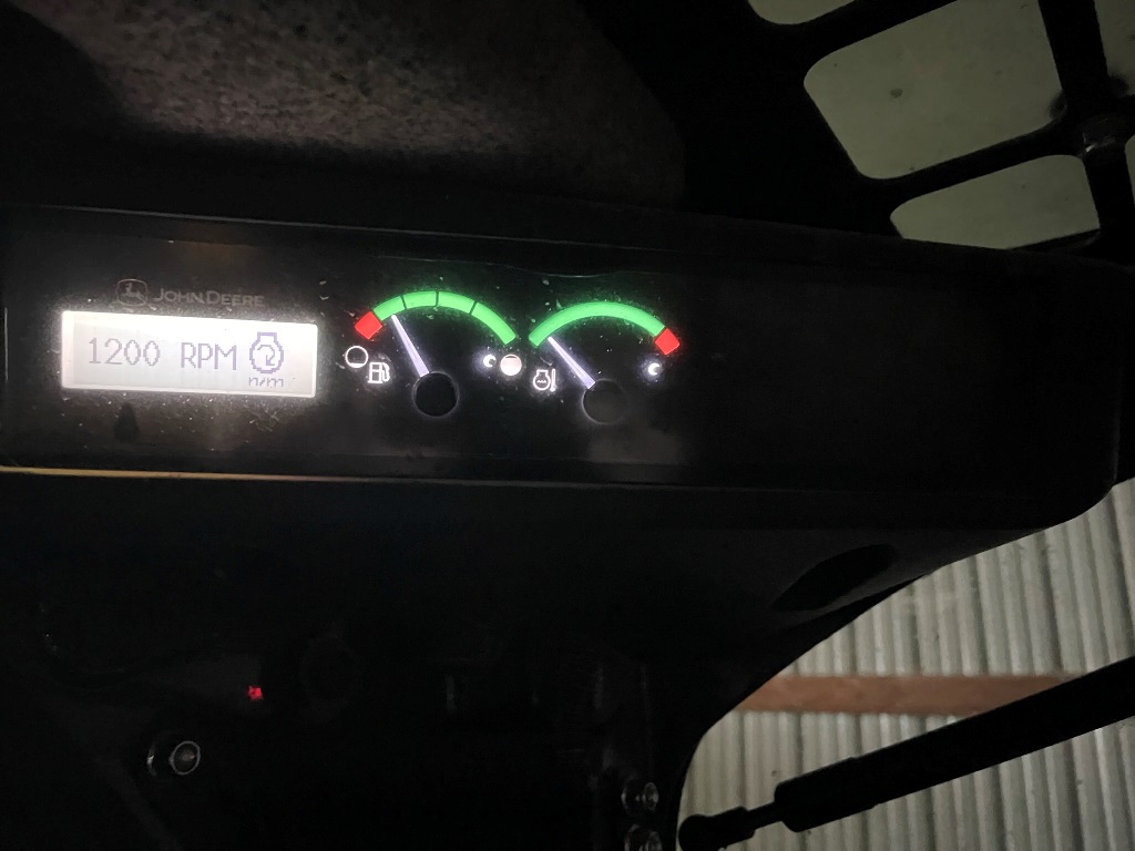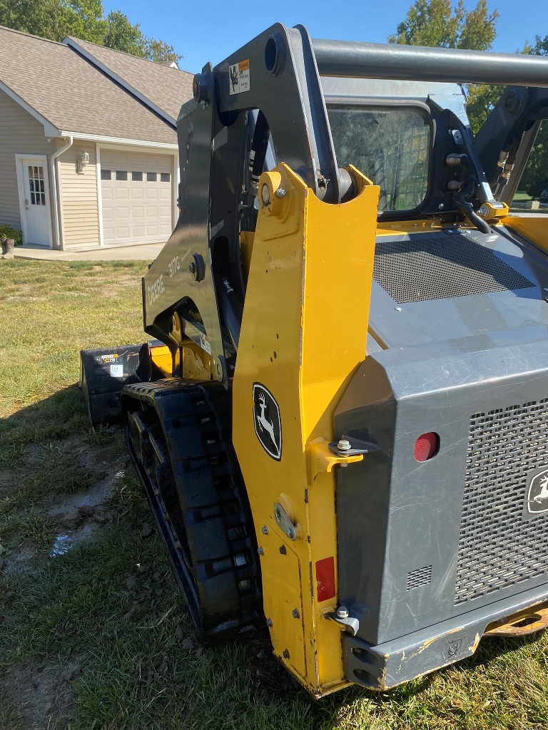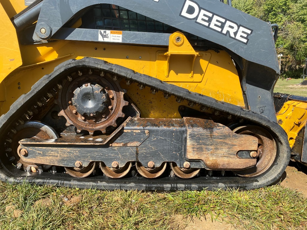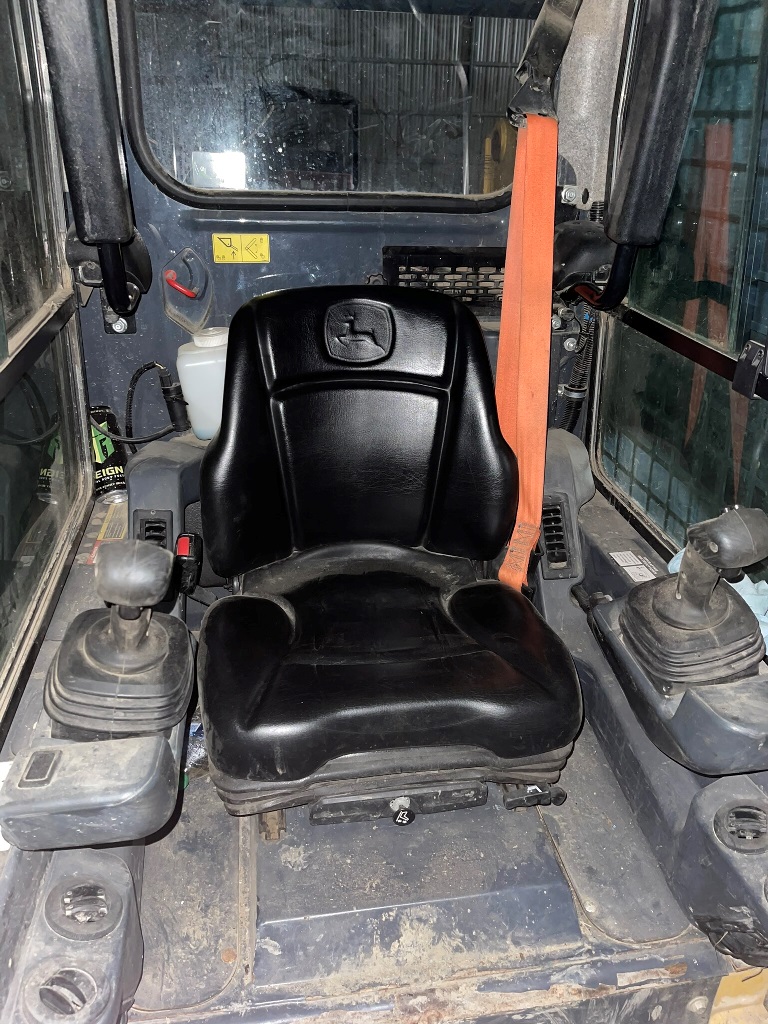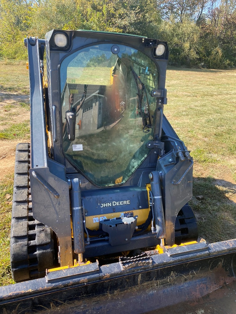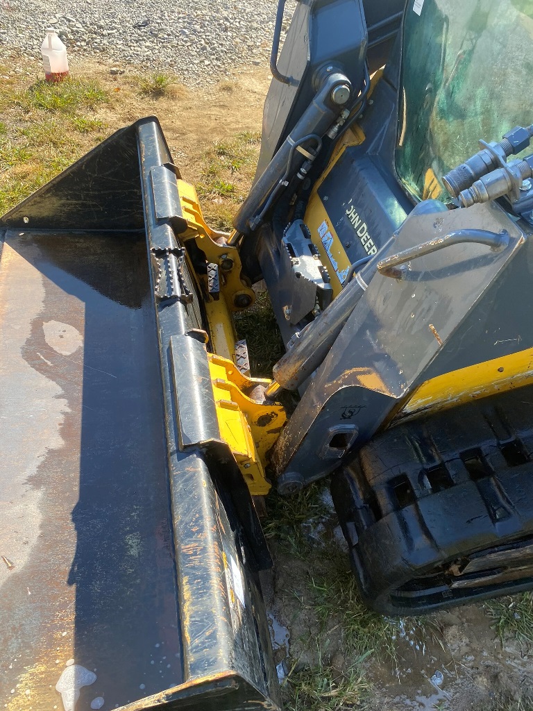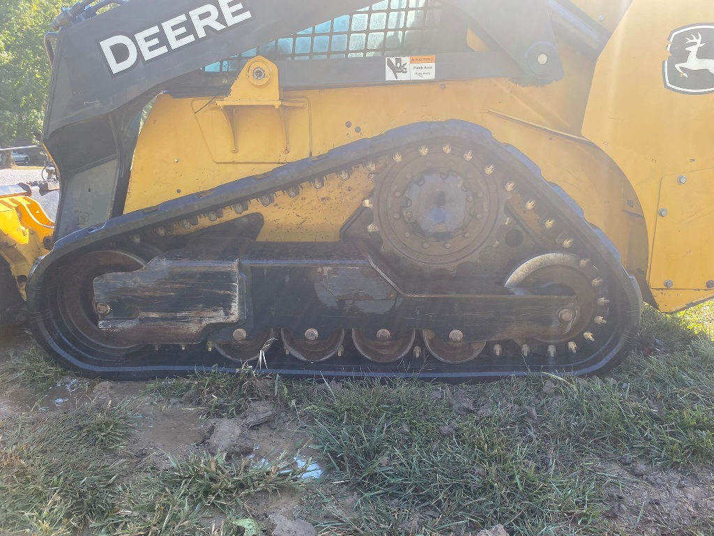 2016 John Deere 317G Skid Loader (LD1258), diesel engine, joystick pilot controls, auxiliary hydraulic hookup, air ride seat, air conditioning, heat, smooth bucket included, shows 877 hours.