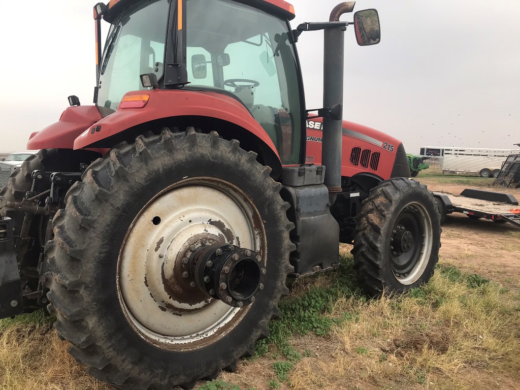 2009 Case IH 215 Magnum Tractor (LD1253), 215HP diesel engine, transmission, 4WD, 38 inch fronts, 50 inch rear, 3 pt hitch, 10 suitcase weights, air conditioning, heat, AM/FM radio, CD player, Bluetooth audio, auxiliary input, 380/80R38 front tires, 480/80R50 rear tires, shows 6,554 hours.