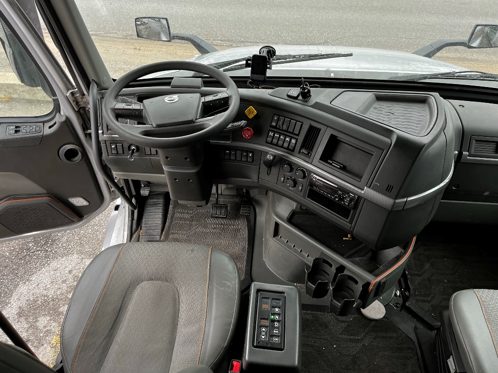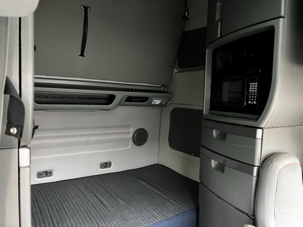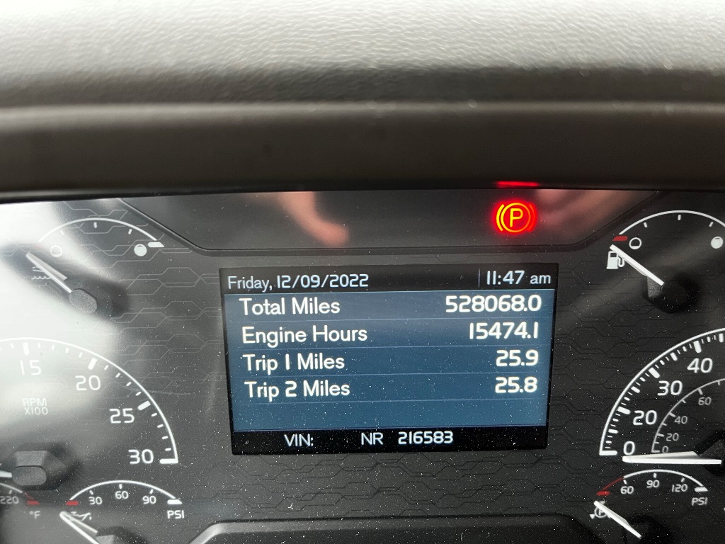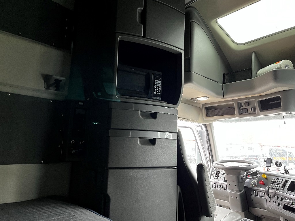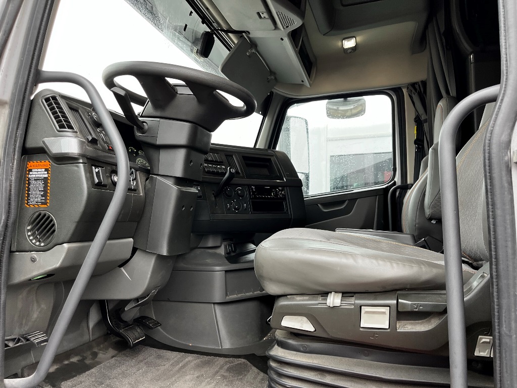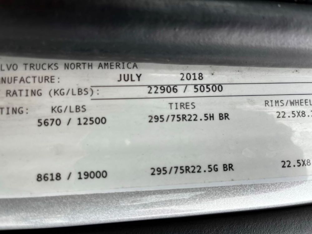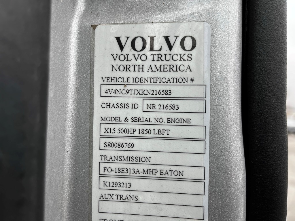 2019 Volvo VNL 860 Sleeper (LD1259), Cummins X15 diesel engine, Eaton Fuller 13 speed automatic transmission, air ride suspension, air slide 5th wheel, air ride cab, cruise control, engine brake, dump valve, full locking rears, AM/FM radio, CD player, USB and auxiliary inputs, Bluetooth audio, power windows and mirrors, air conditioning, heat, dual air ride seats, double bunk high rise sleeper, fridge, microwave, Ex-Guard XG grill guard, 295/75R22.5 tires, tandem axle with power divider, 12.500lb fronts, 38,000lb rears, 50,500lb GVWR, 3.36 gear ratio, 1/4 fenders, dual fuel tanks, 295/75R22.5 tires, shows 528,068 miles.