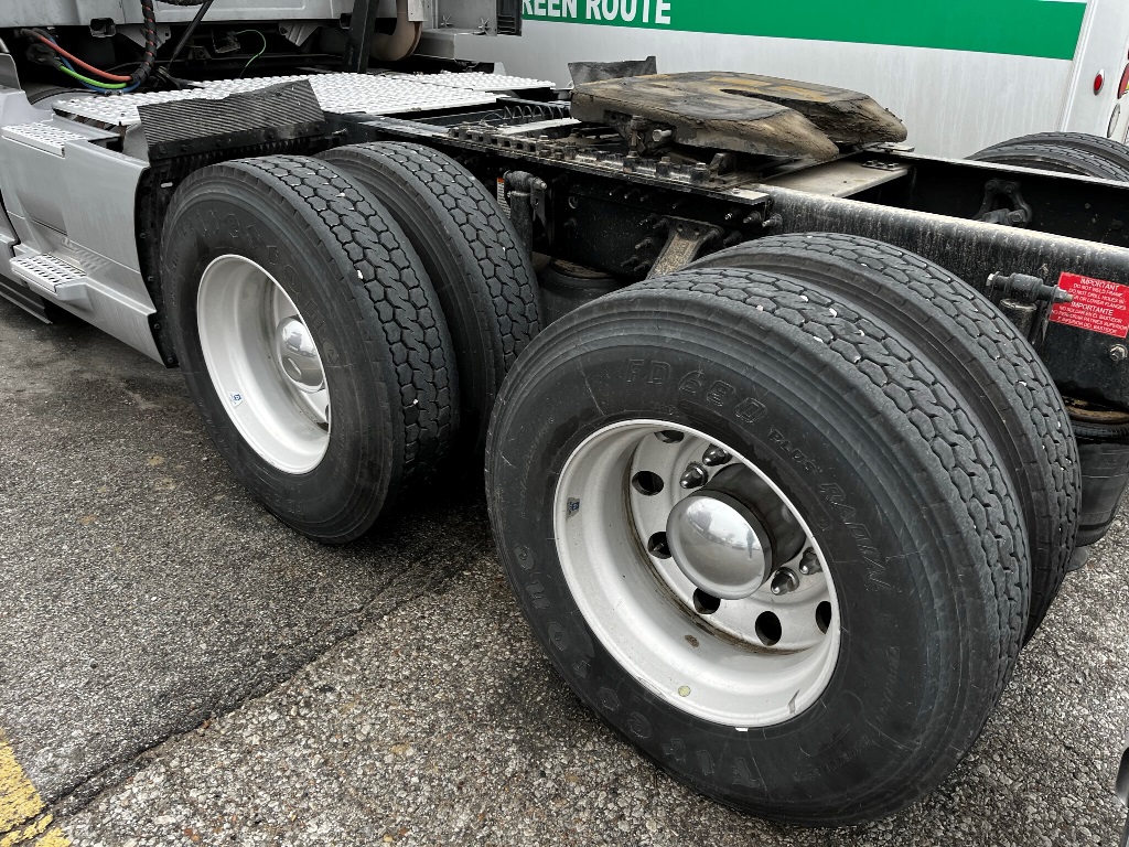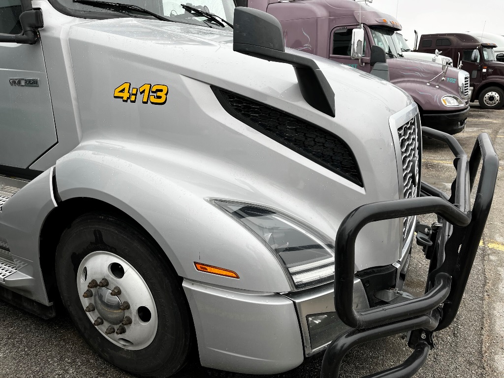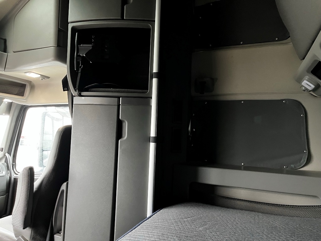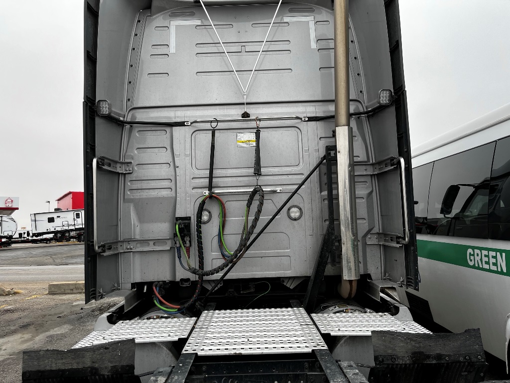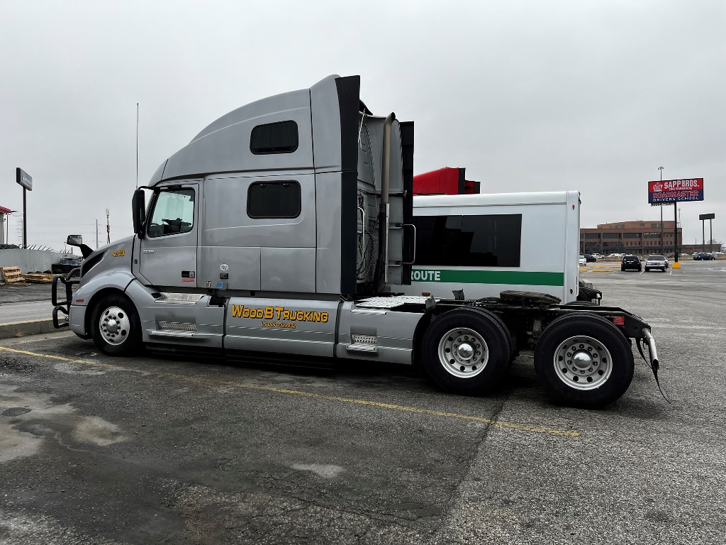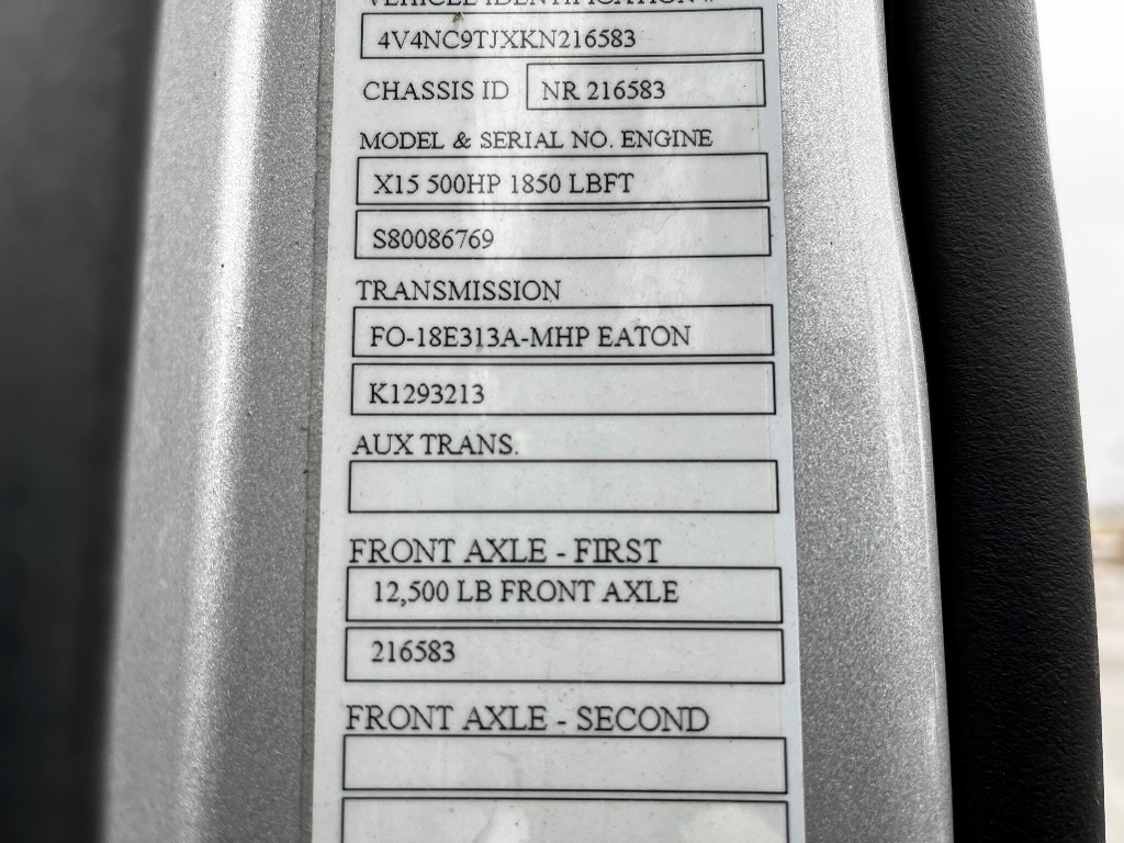2019 Volvo VNL 860 Sleeper (LD1259), Cummins X15 diesel engine, Eaton Fuller 13 speed automatic transmission, air ride suspension, air slide 5th wheel, air ride cab, cruise control, engine brake, dump valve, full locking rears, AM/FM radio, CD player, USB and auxiliary inputs, Bluetooth audio, power windows and mirrors, air conditioning, heat, dual air ride seats, double bunk high rise sleeper, fridge, microwave, Ex-Guard XG grill guard, 295/75R22.5 tires, tandem axle with power divider, 12.500lb fronts, 38,000lb rears, 50,500lb GVWR, 3.36 gear ratio, 1/4 fenders, dual fuel tanks, 295/75R22.5 tires, shows 528,068 miles.