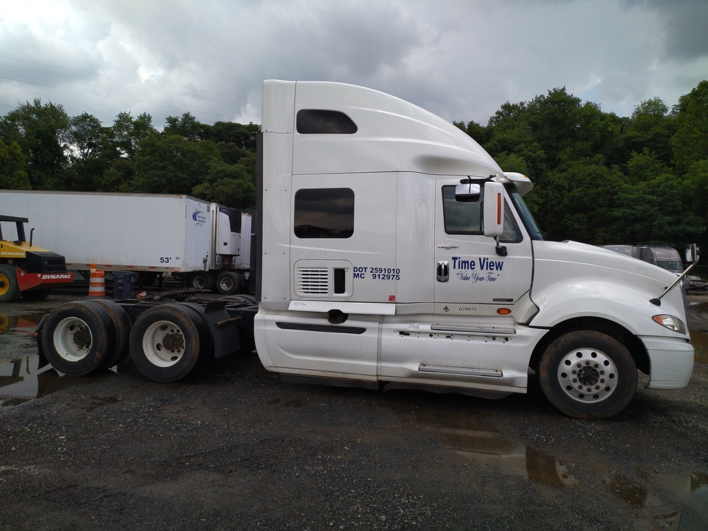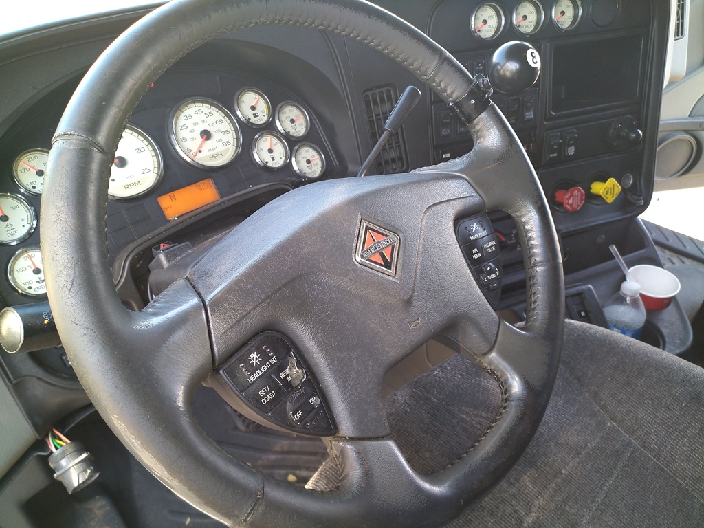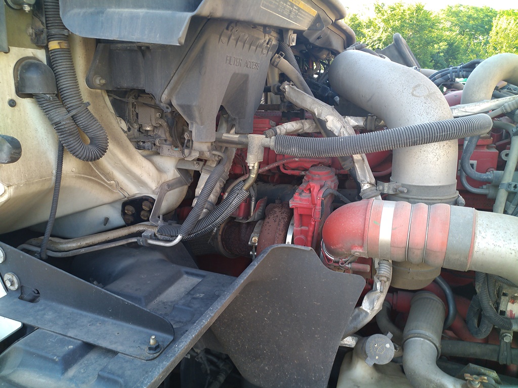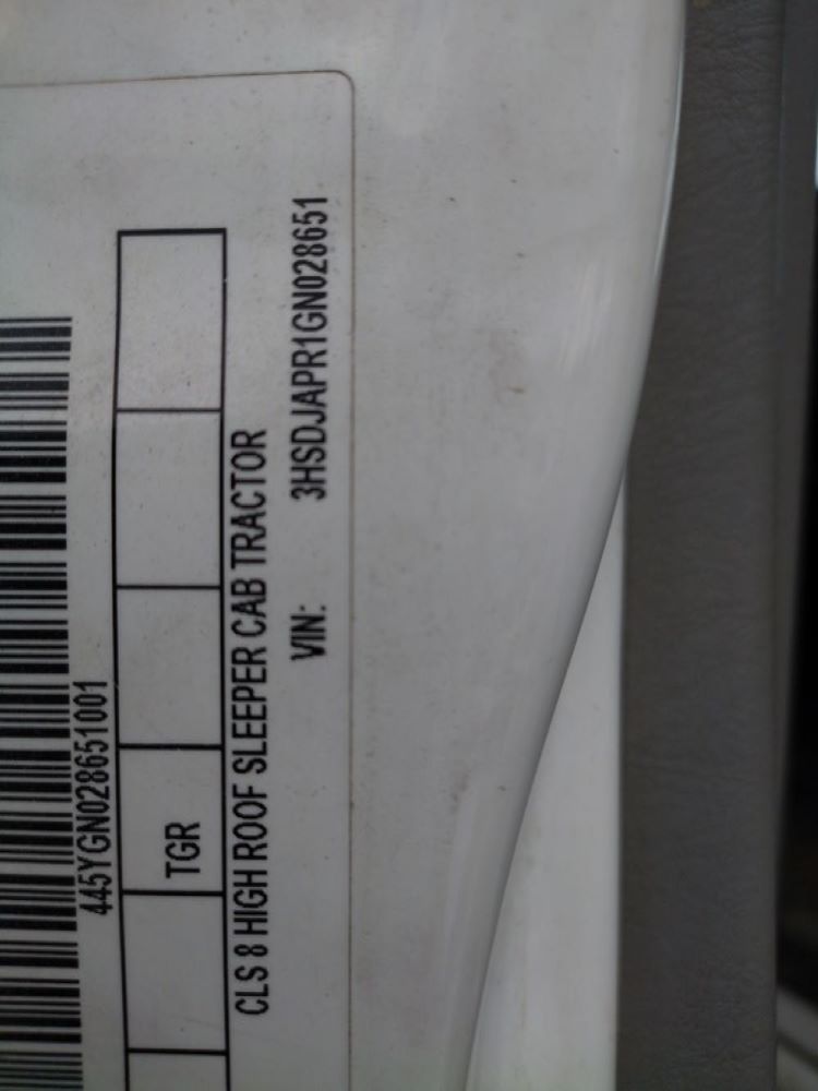 2016 International Prostar (LD1117), Cummins X15 diesel engine, transmission, air ride suspension, air ride cab, power mirrors/windows/locks, engine brake, air dump valve, air conditioning, heat, AM/FM radio, USB and auxiliary inputs, air ride driver seat, cruise control, high roof sleeper, sleeper controls, stationary 5th wheel, inch wheel base, 295/75R22.5 tires, tandem axle with power divider, GVWR, dual aluminum fuel tanks, shows 548,295 miles.
