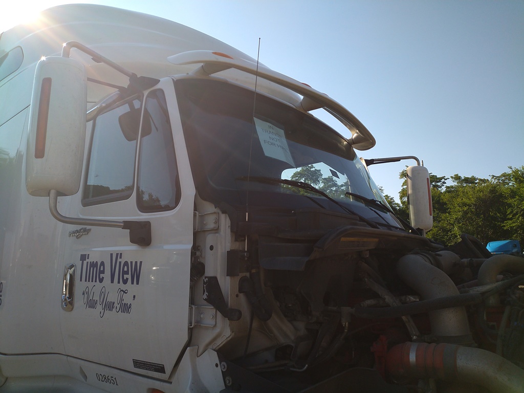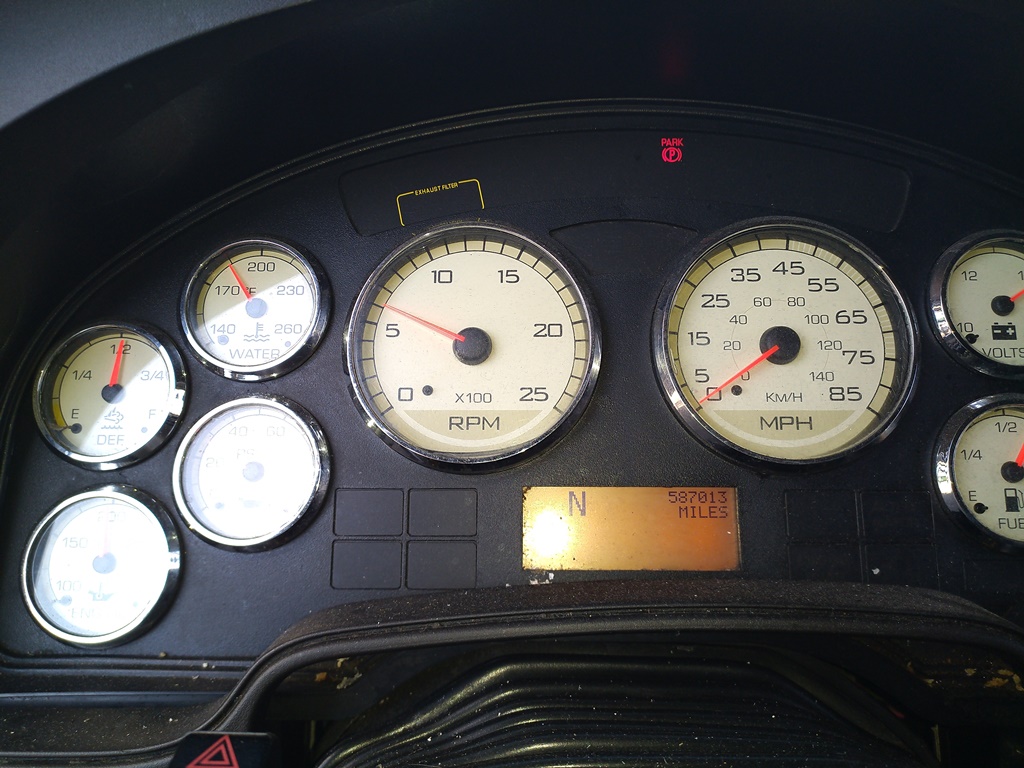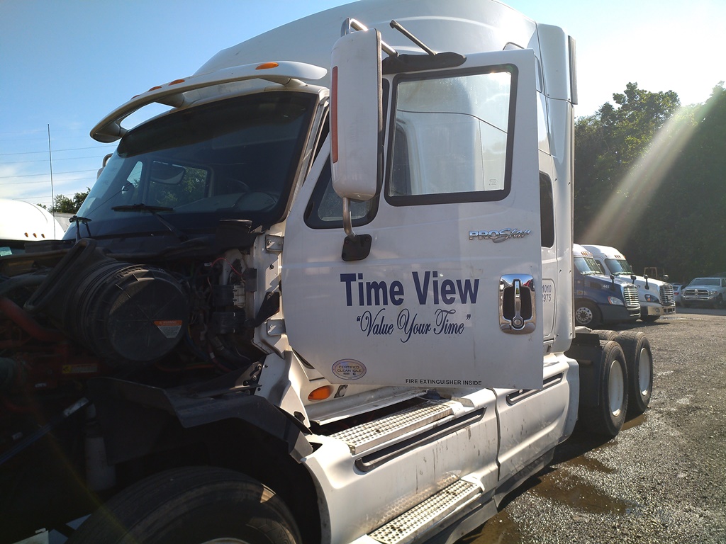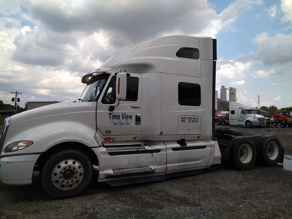2016 International Prostar (LD1117), Cummins X15 diesel engine, transmission, air ride suspension, air ride cab, power mirrors/windows/locks, engine brake, air dump valve, air conditioning, heat, AM/FM radio, USB and auxiliary inputs, air ride driver seat, cruise control, high roof sleeper, sleeper controls, stationary 5th wheel, inch wheel base, 295/75R22.5 tires, tandem axle with power divider, GVWR, dual aluminum fuel tanks, shows 548,295 miles.