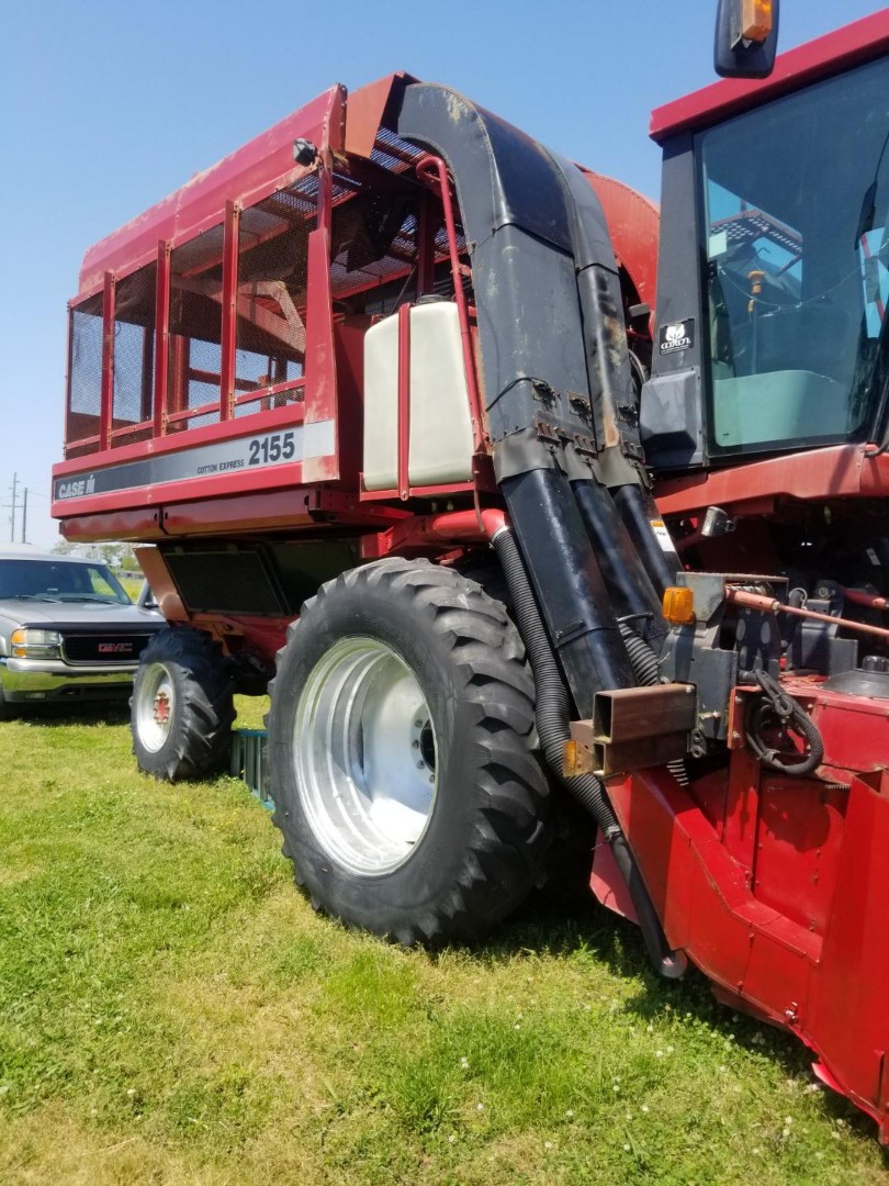 Case IH 2155 Cotton Picker (MN327), model 2155, Cummins 6 Cylinder turbo diesel engine, 2 Speed Hydrostatic Transmission (recently redone), 4WD, 4 row, high drum, hydraulic row width adjustment, plant lifters, automatic height adjustment, onboard greasing, automatic packer, 4 bale capacity, light bar, enclosed cab, buddy seat, heat and A/C, AM/FM radio, 4,168 engine hours, 2,519 fan hours.