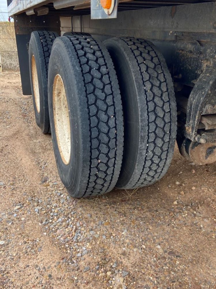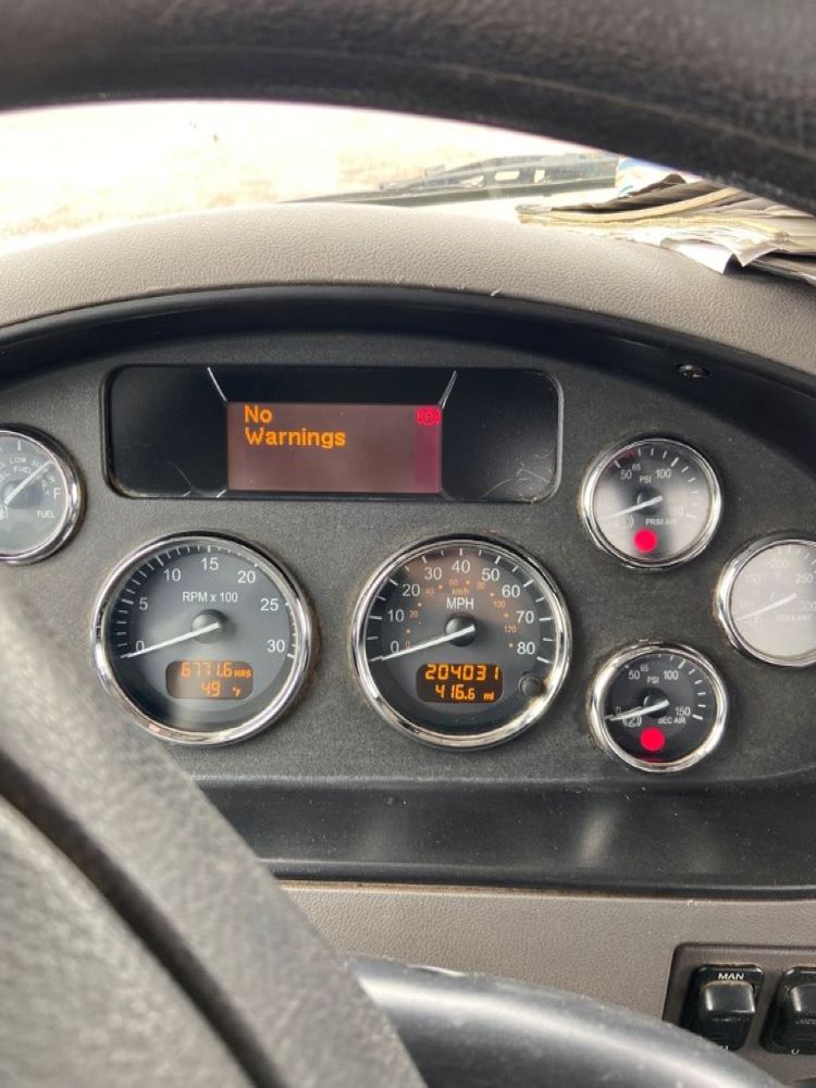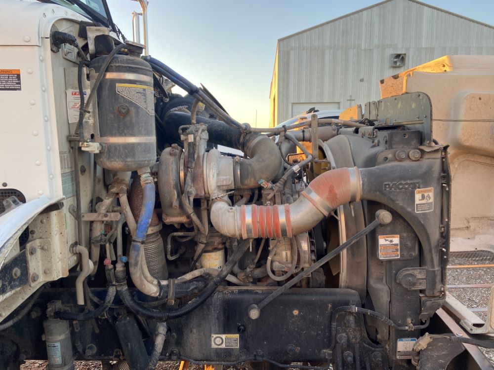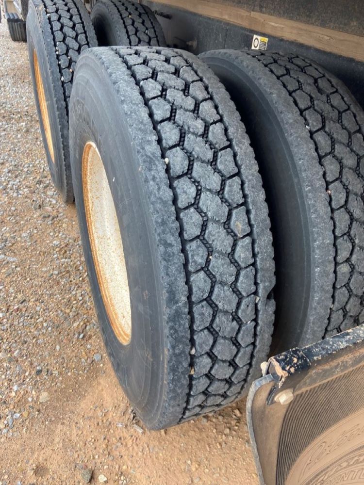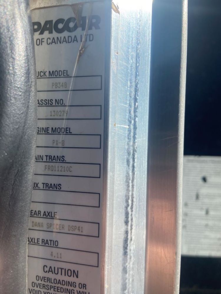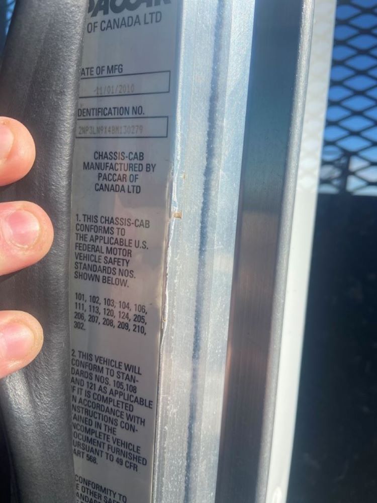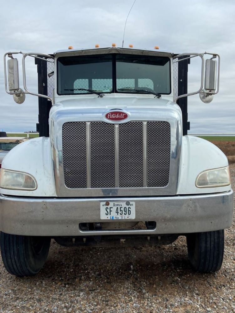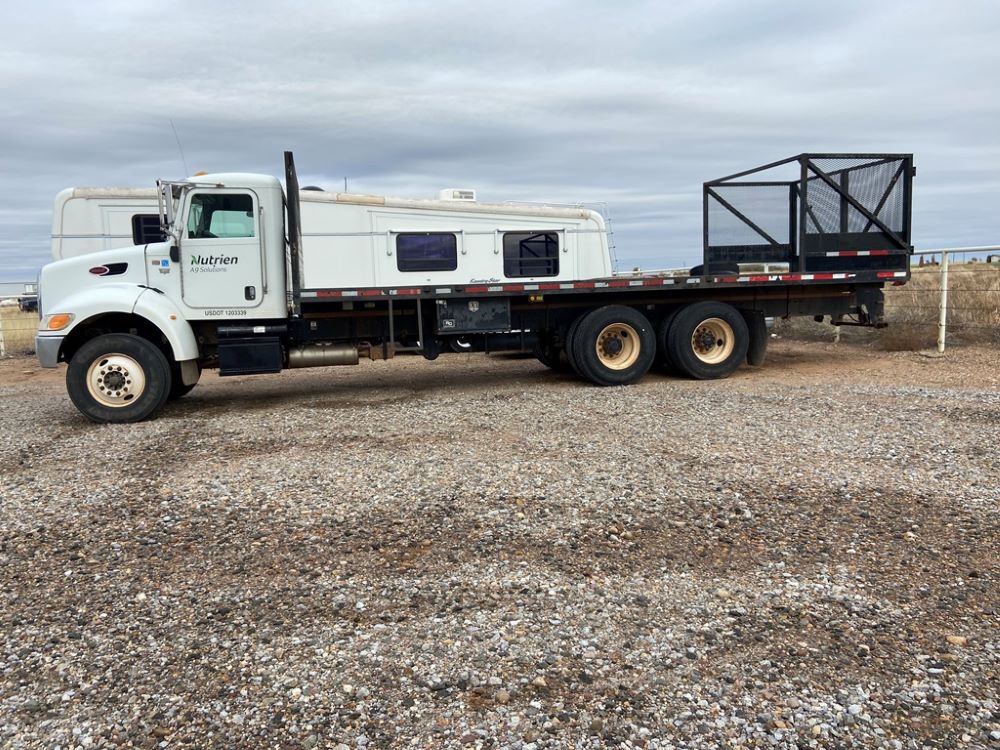 2011 Peterbilt 348 Flatbed Truck (NP3412, Unit 21813), Paccar PX-8 diesel engine, FR011210C 10 speed transmission, heat, Am/Fm radio, tandem axle, air ride suspension, steel flatbed, single fuel tank, 4.11 axle ratio, GVWR 52,350 pounds, shows 204,031 miles.