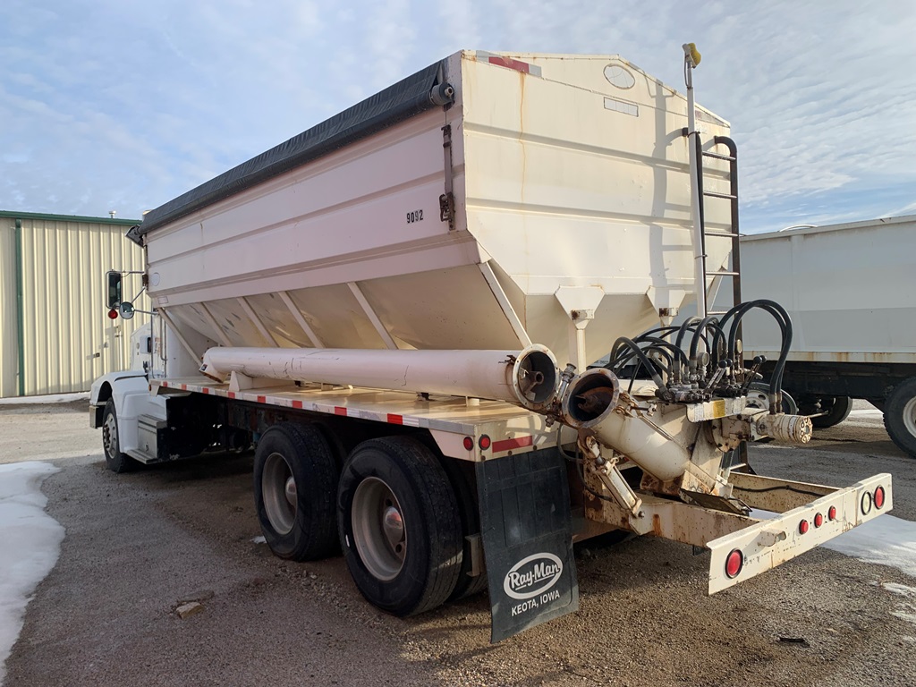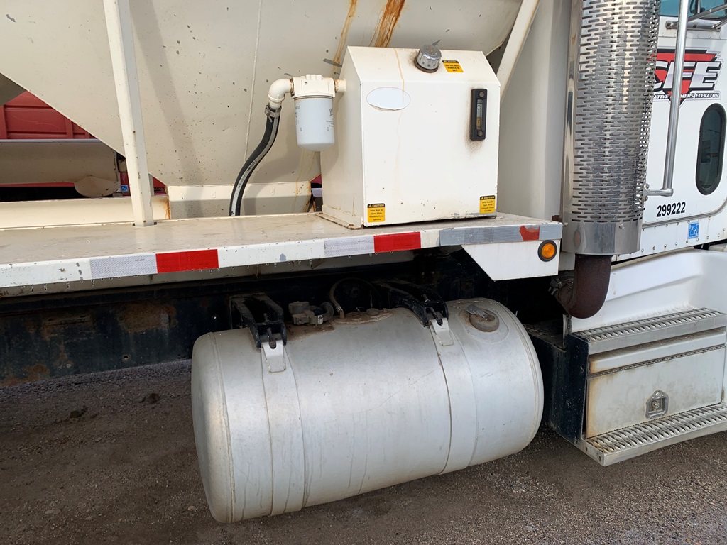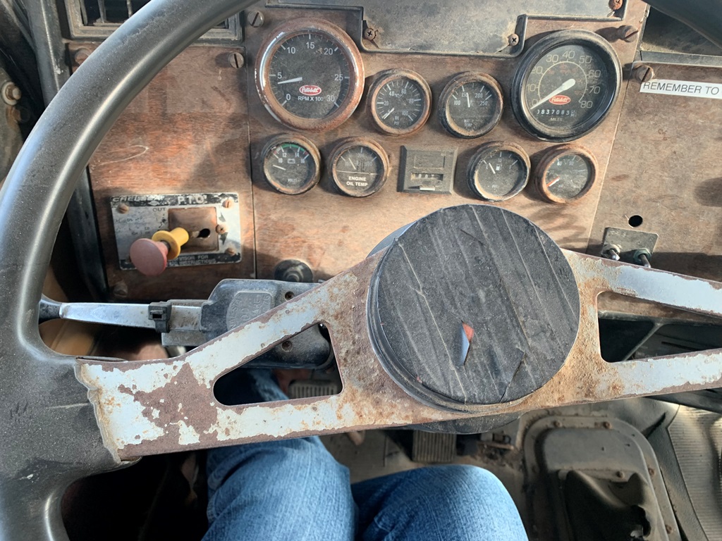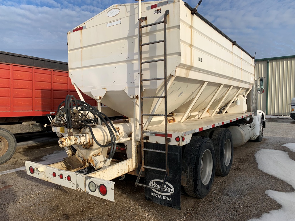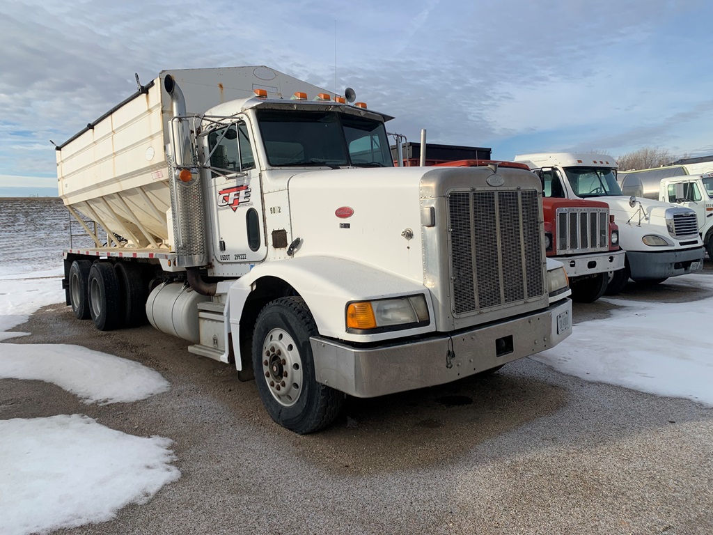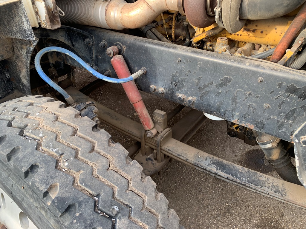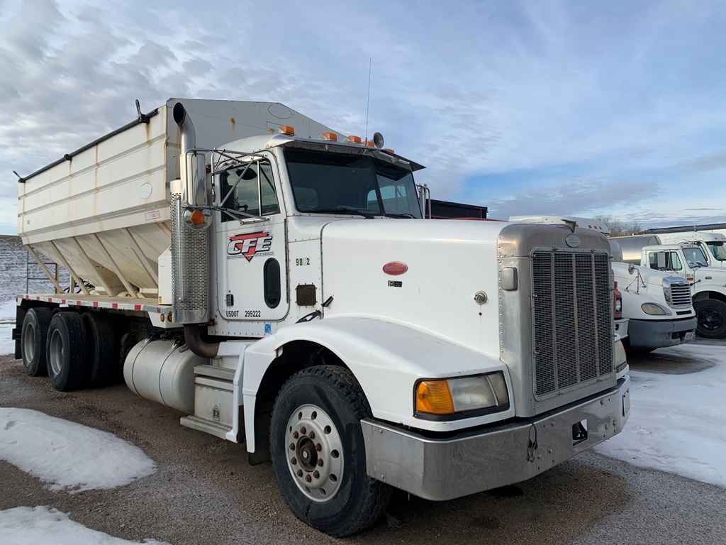 1991 Peterbilt 377 Day Cab Tender Truck (CP0258), Cat 3176 engine, 9 speed transmission, Rayman 16 ton side shooter, air ride suspension, 11R22.5 tires, 837,083 miles.