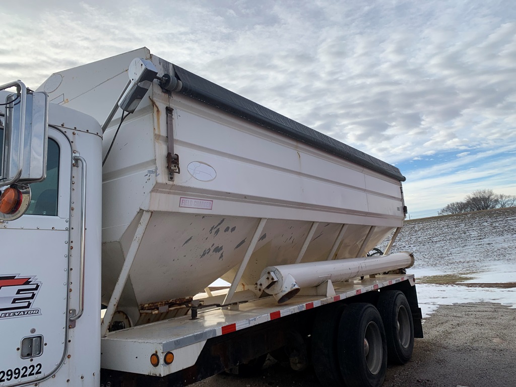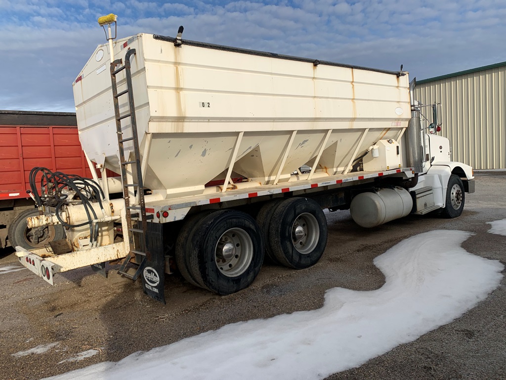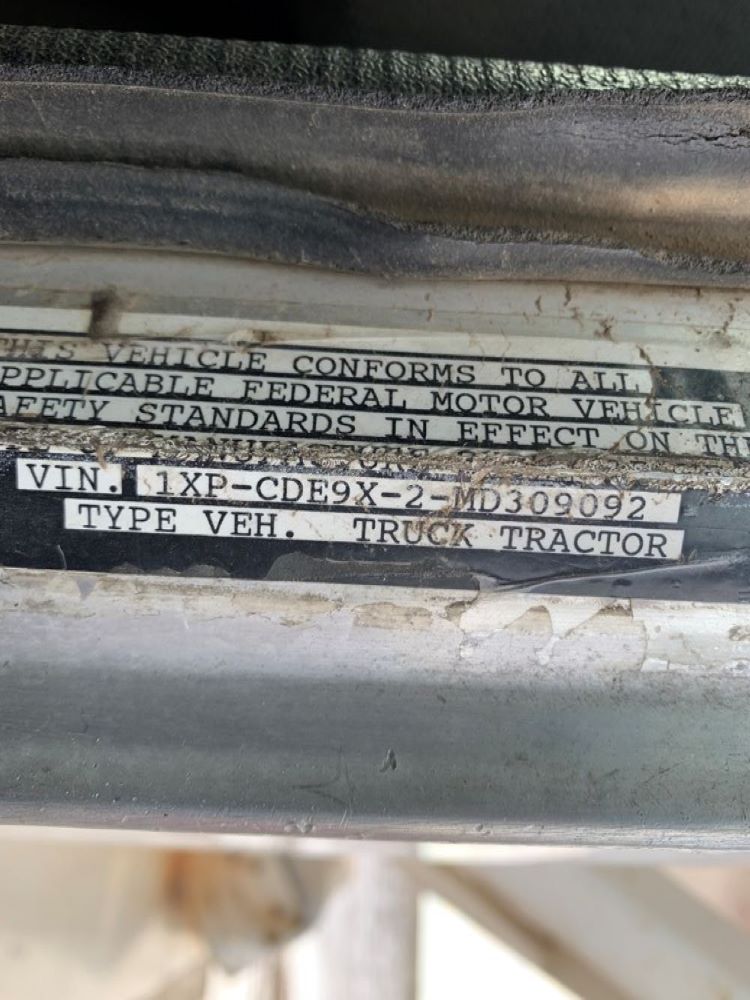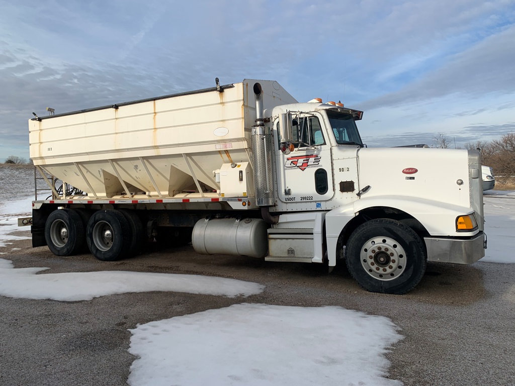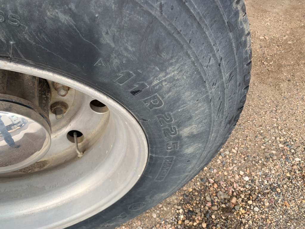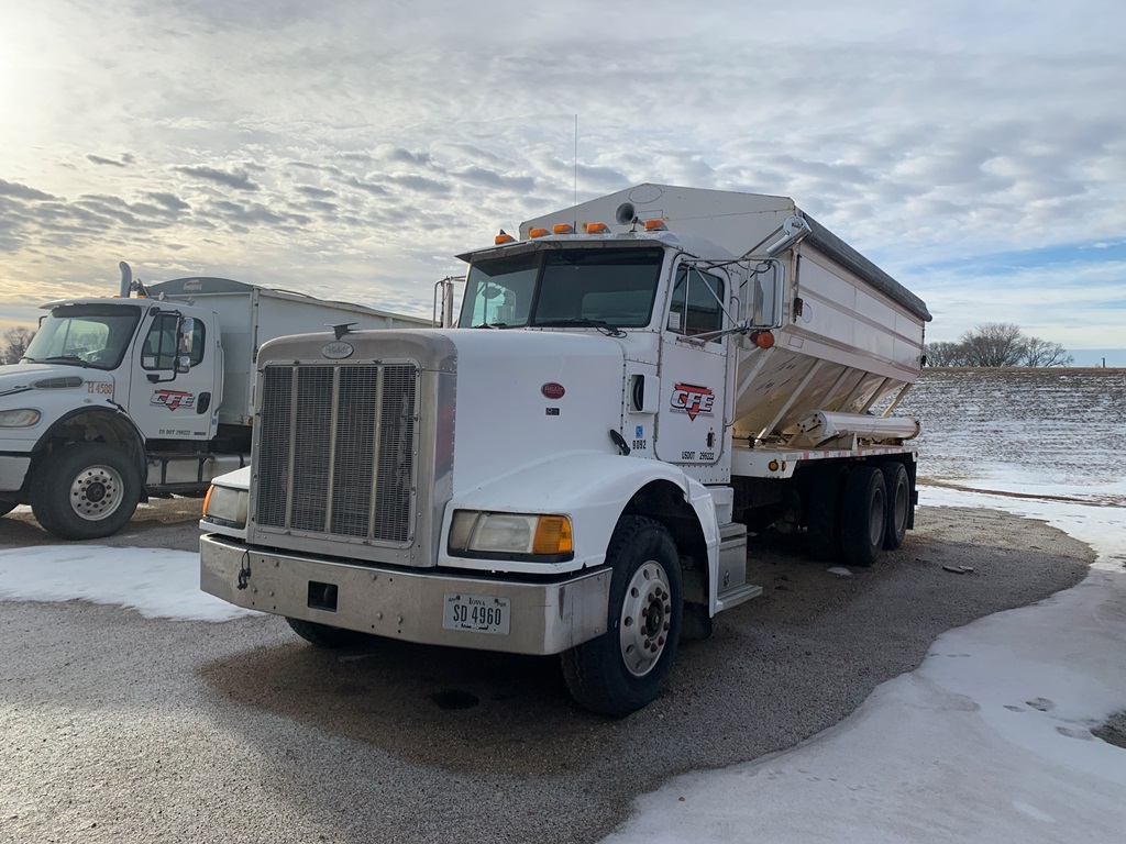 1991 Peterbilt 377 Day Cab Tender Truck (CP0258), Cat 3176 engine, 9 speed transmission, Rayman 16 ton side shooter, air ride suspension, 11R22.5 tires, 837,083 miles.