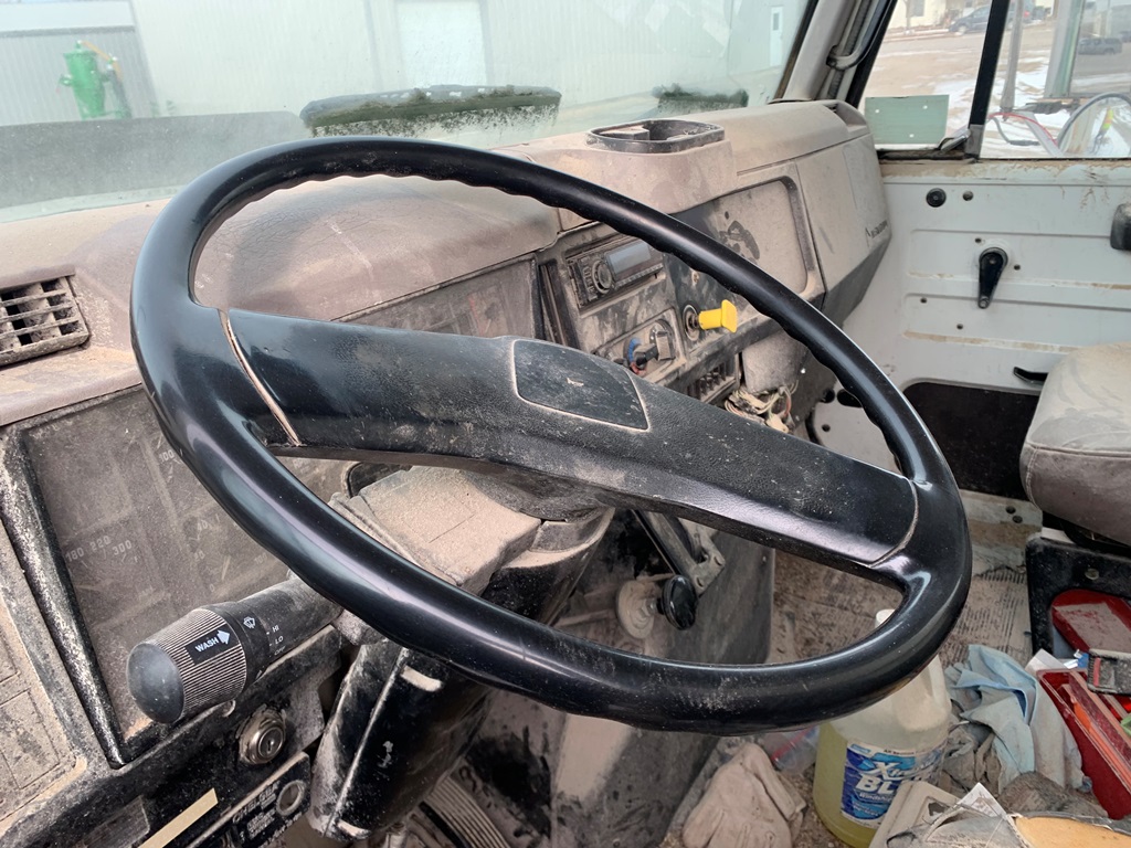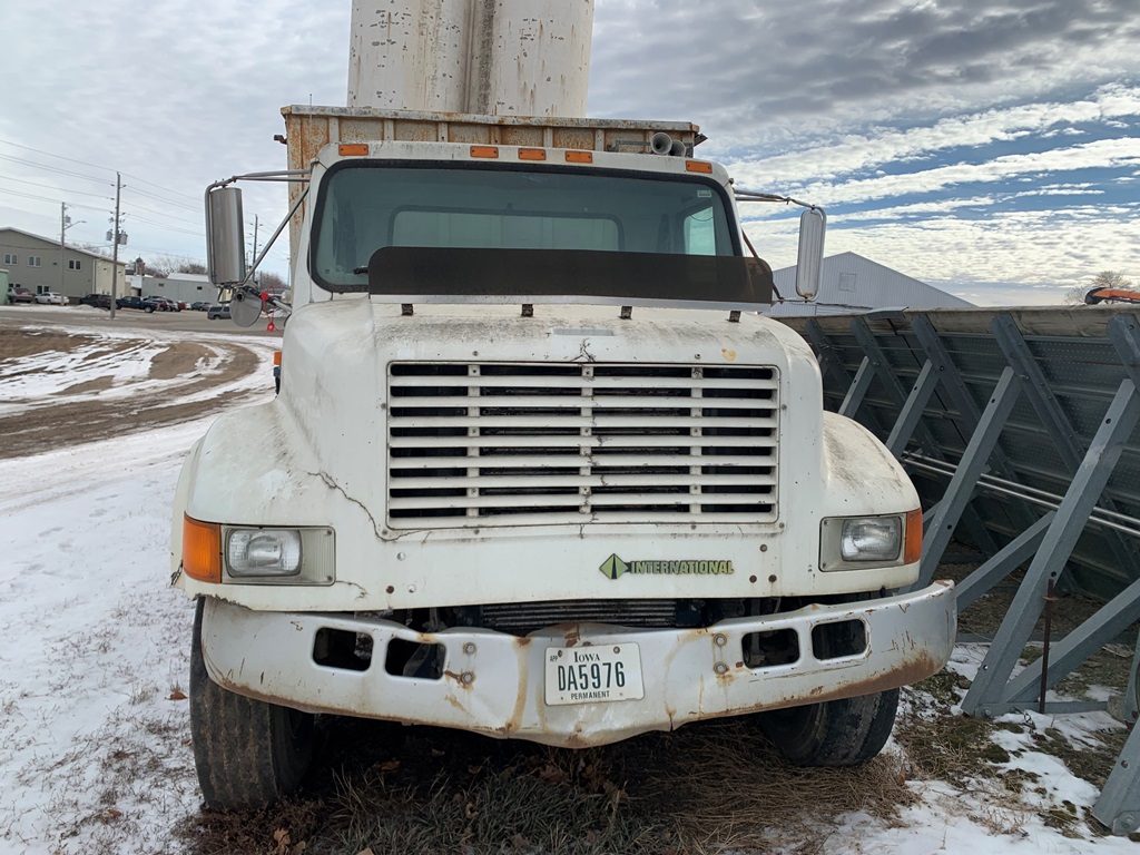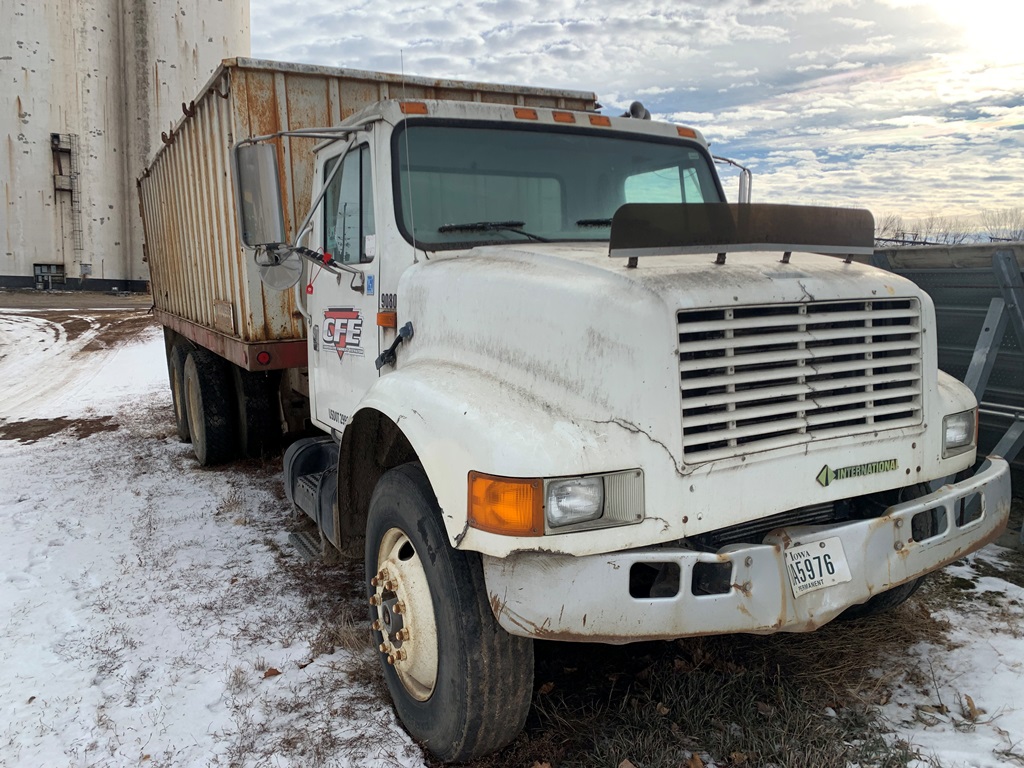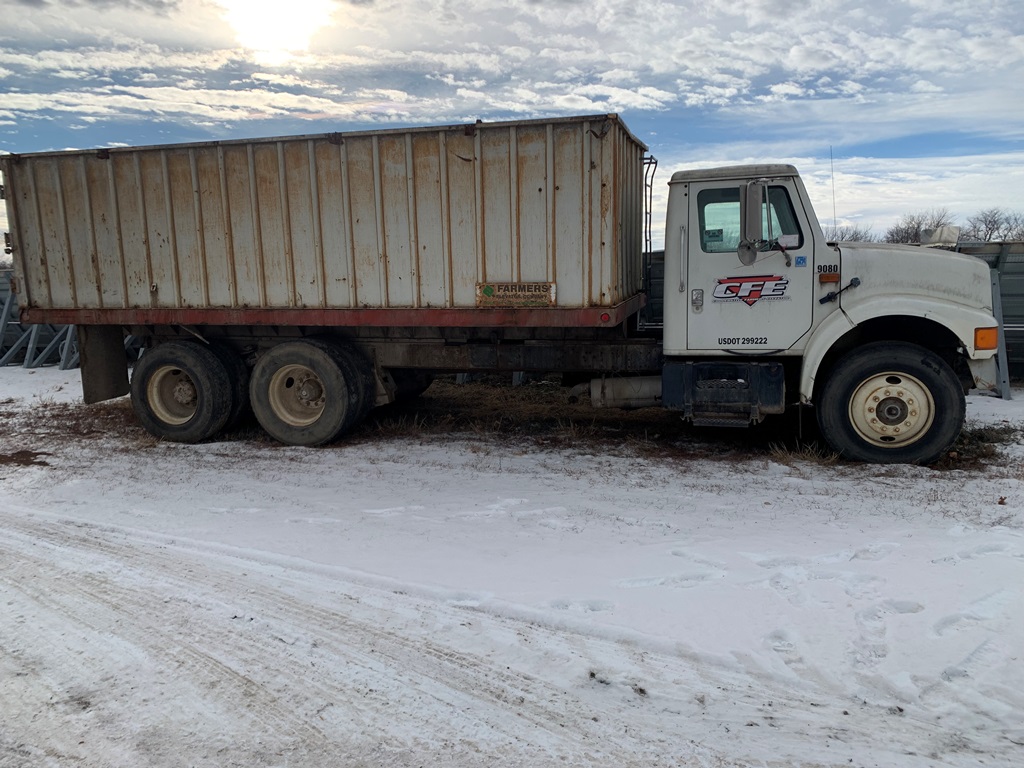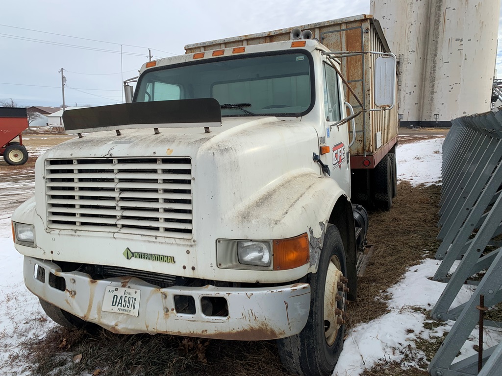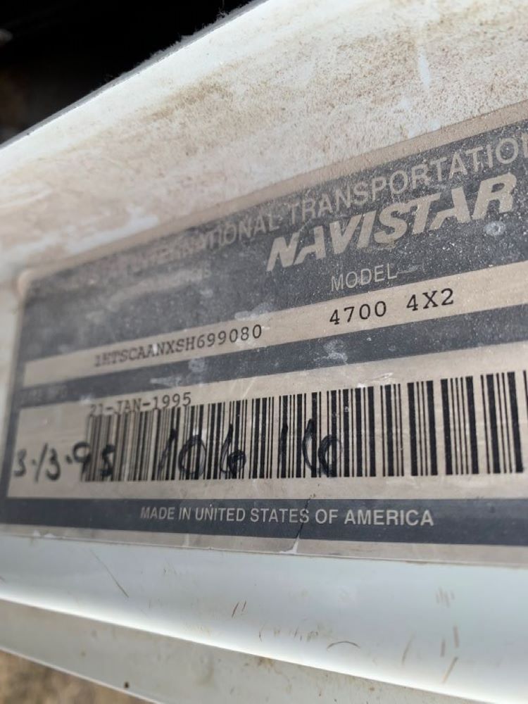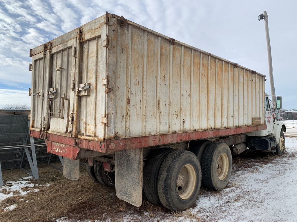 1995 International 4700 Grain Truck (CP0260), International diesel engine, automatic transmission, single axle, spring suspension, 20 foot steel box, grain doors, end gate, 11R22.5 tires, 76139 miles.