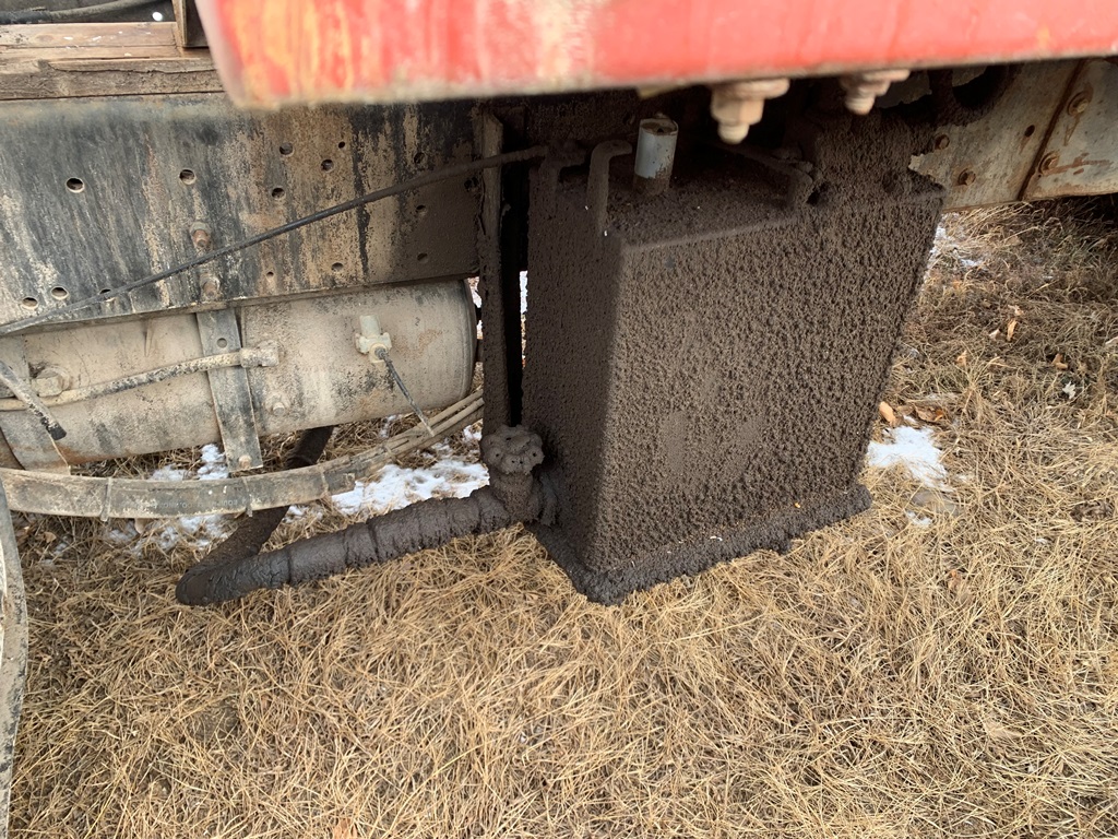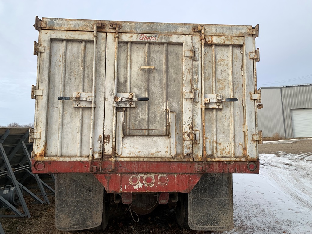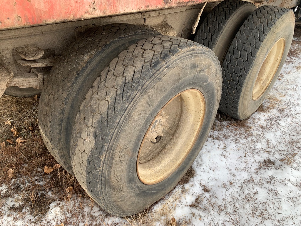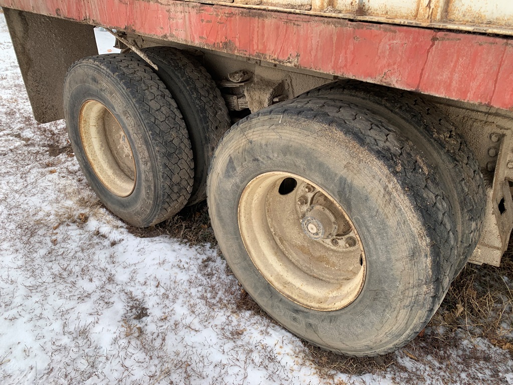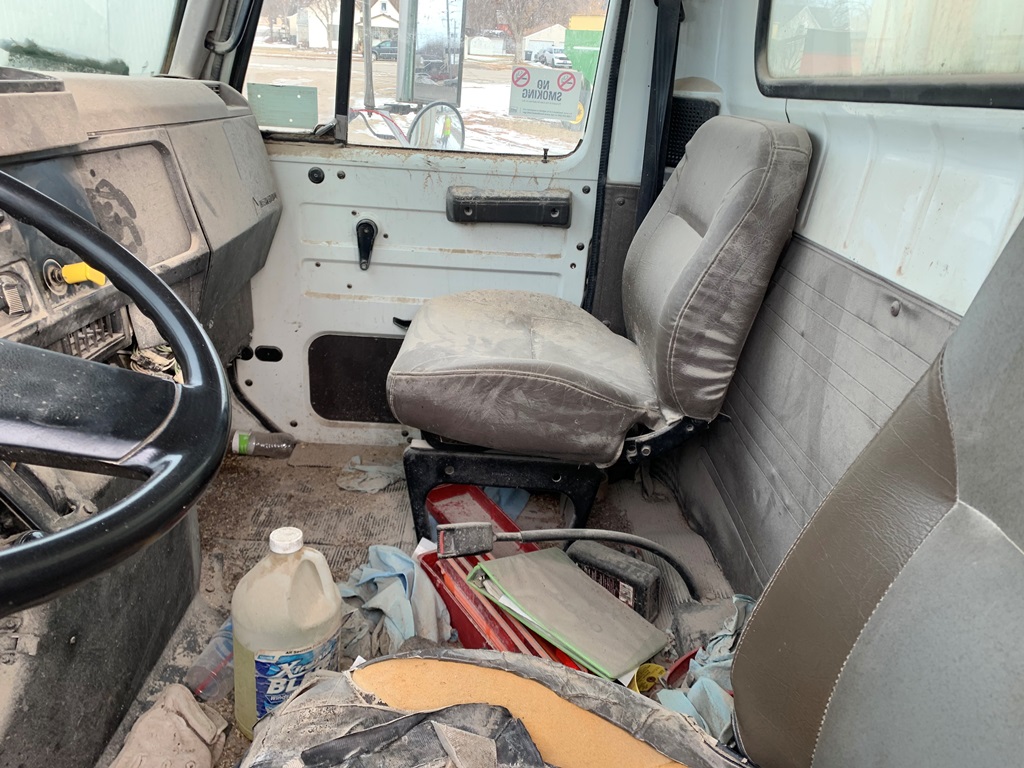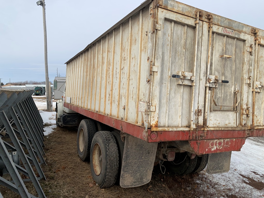 1995 International 4700 Grain Truck (CP0260), International diesel engine, automatic transmission, single axle, spring suspension, 20 foot steel box, grain doors, end gate, 11R22.5 tires, 76139 miles.
