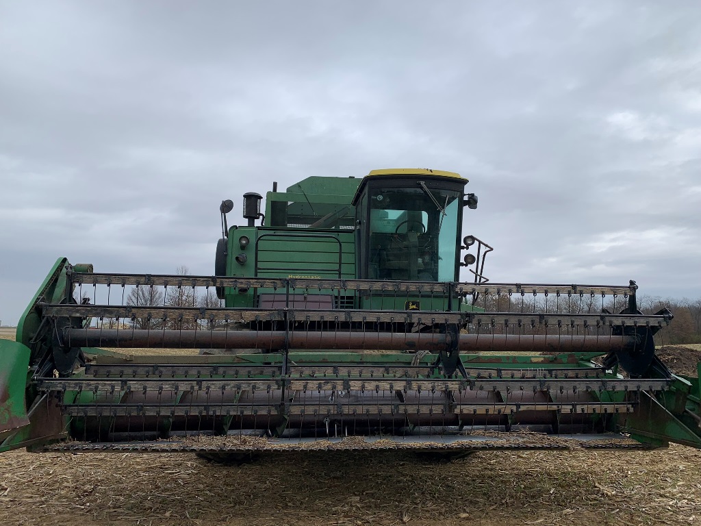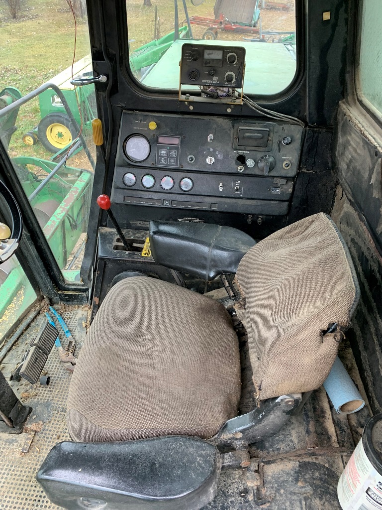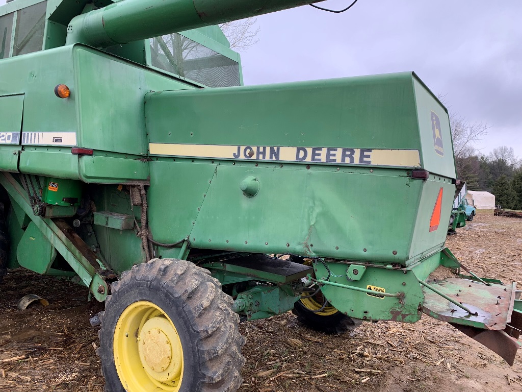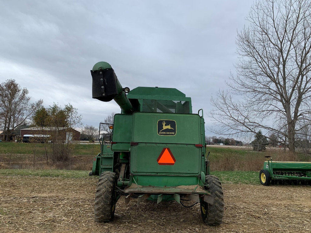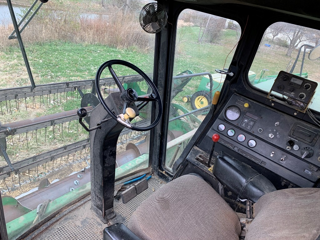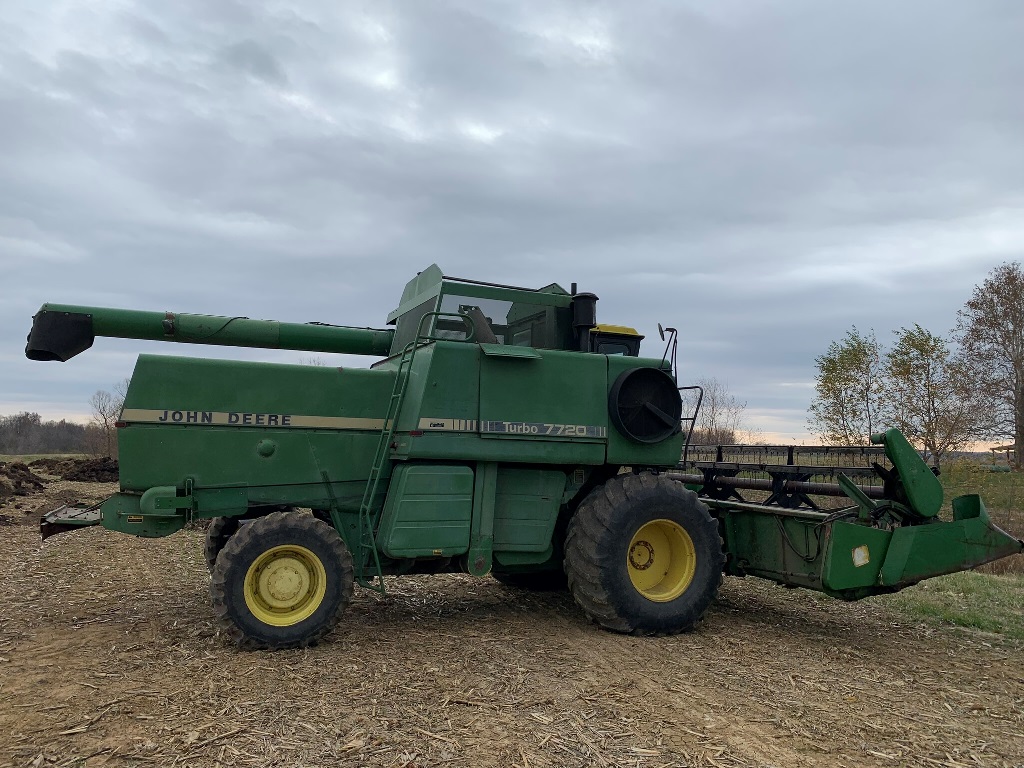 1980 John Deere Turbo 7720 Combine (DL2528), rear wheel assist, used this fall to harvest about 100 acres of corn and soybeans, machine worked as it should, seller has upgraded to 9500 as only reason for selling, seller patched a few holes this year and has some hydraulic leaks as expected with an older machine, chopper on back, engine starts with ease and runs great, no heat or a/c, shows 5,347 hours.