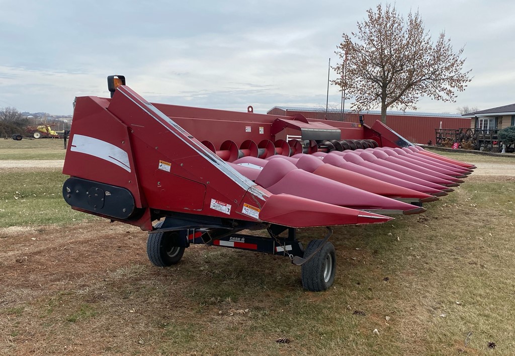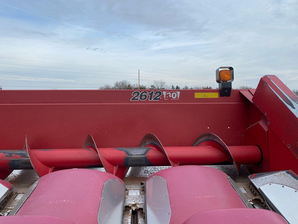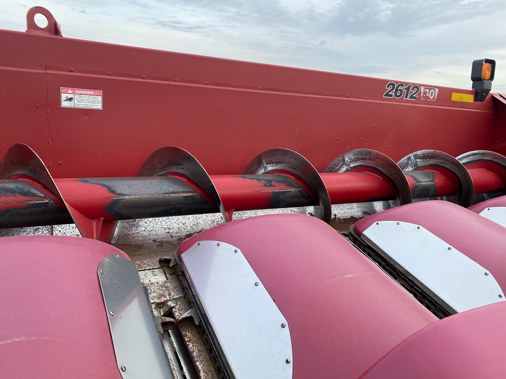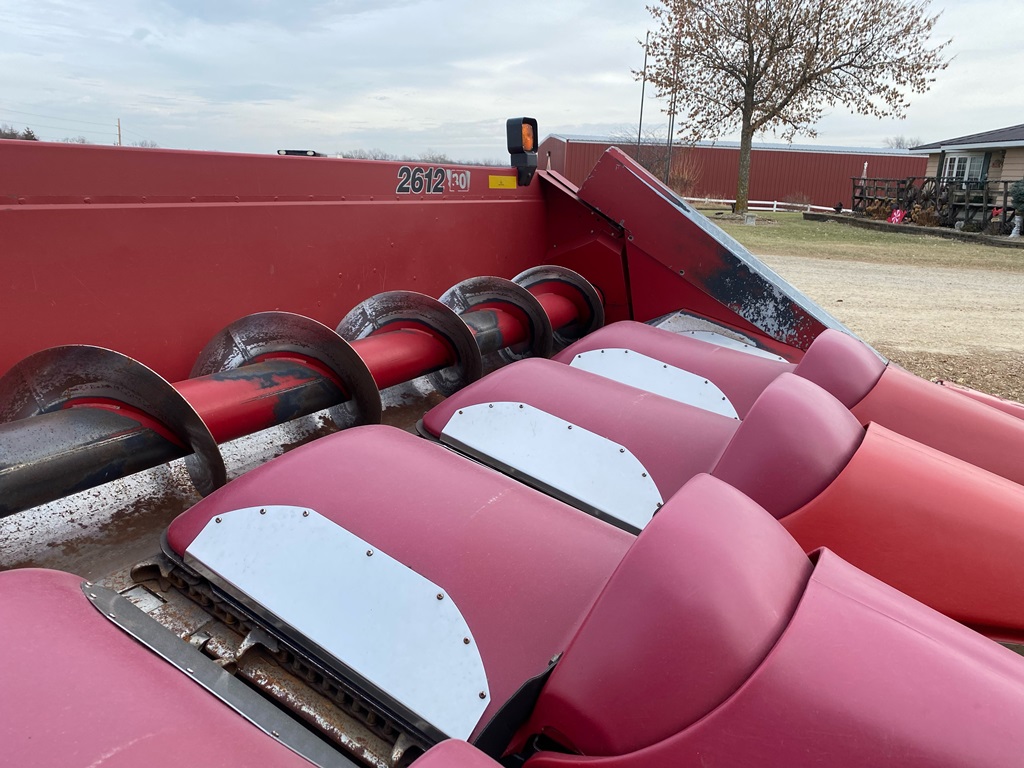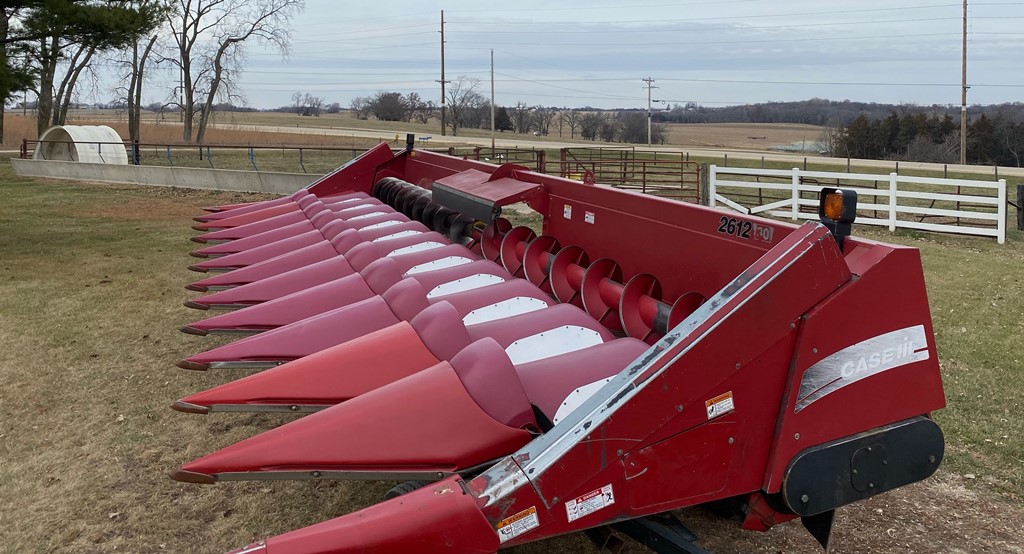 Case IH 2612 Chopping Corn Head And CIH Cart (ED3153), Case IH 2612 12R30 chopping corn header and 30 foot Case IH head cart, hydraulic deck plates, knife rolls, single point hook up, chopper, auto height control, poly snouts, stainless wear plates, 30 foot cart, extendable tongue, good rubber, field ready.