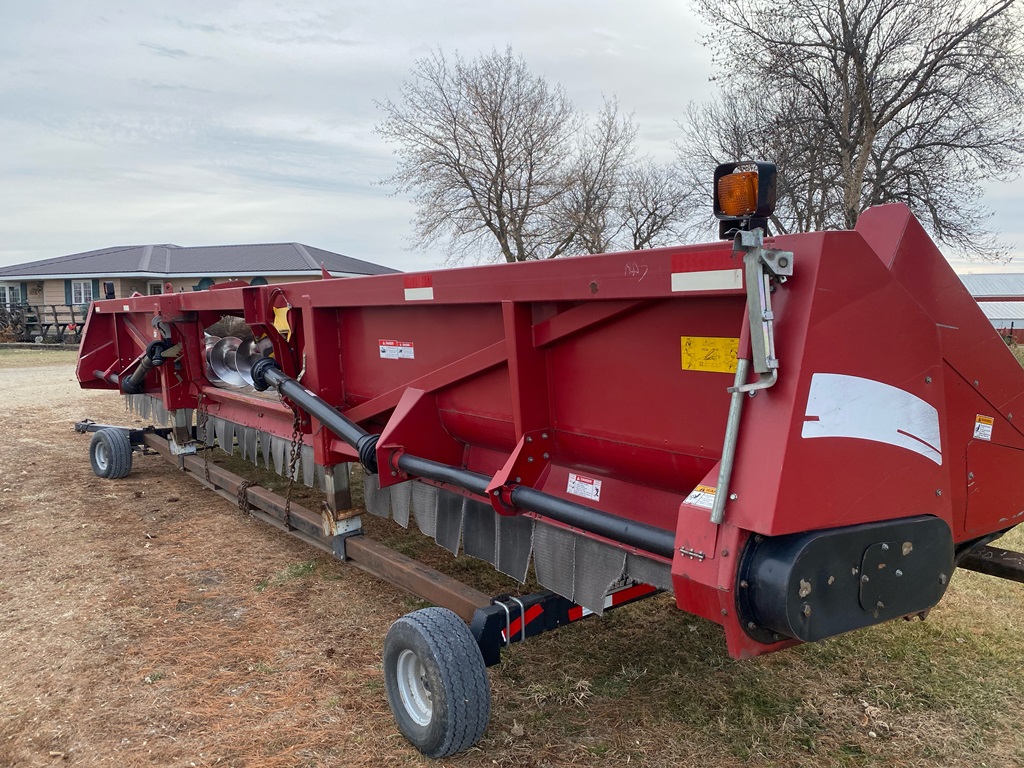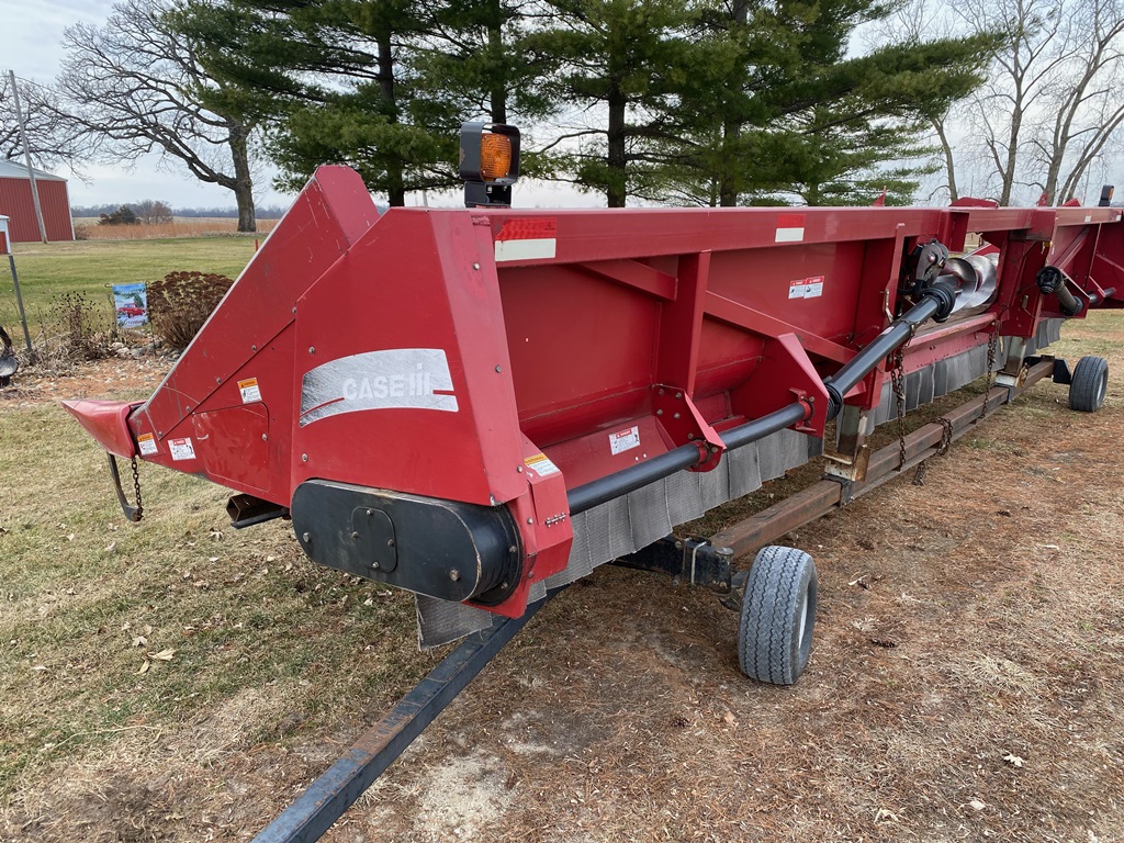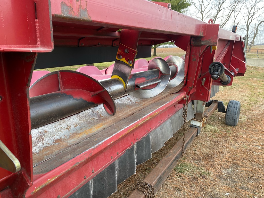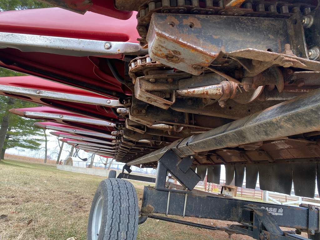 Case IH 2612 Chopping Corn Head And CIH Cart (ED3153), Case IH 2612 12R30 chopping corn header and 30 foot Case IH head cart, hydraulic deck plates, knife rolls, single point hook up, chopper, auto height control, poly snouts, stainless wear plates, 30 foot cart, extendable tongue, good rubber, field ready.