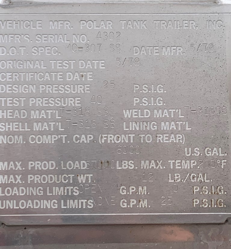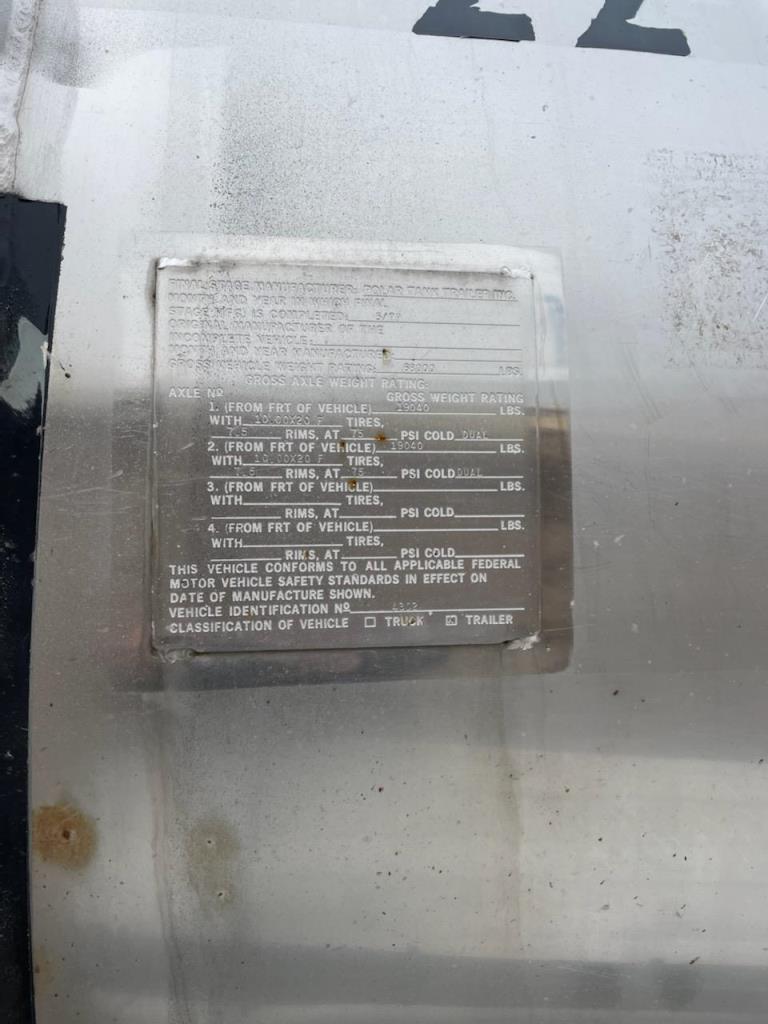 1979 Polar Semi Tanker Trailer (ED3128), 1979 Polar double conical, 6000 gallon with air ride suspension, baffles, brakes approximately 85%, new Honda 3 inch pump, new 11Rx22.5 tires.