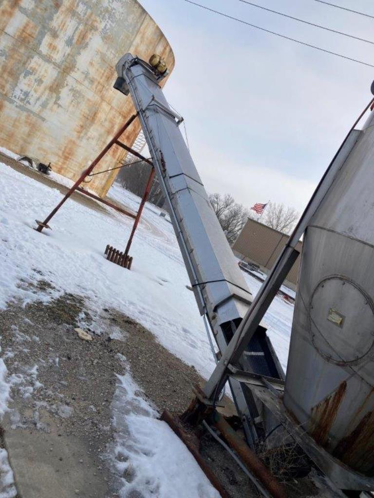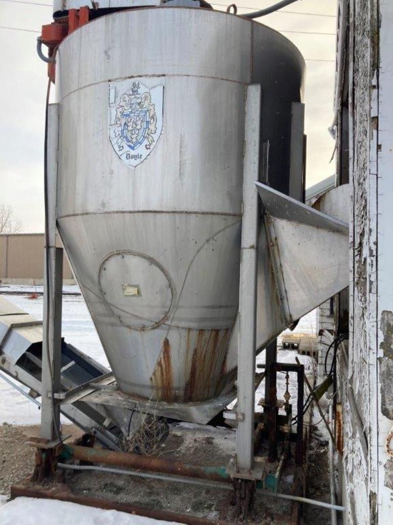 Doyle 8 Ton Stainless Steel Vertical Blender (PD3422), scale, load out conveyor.