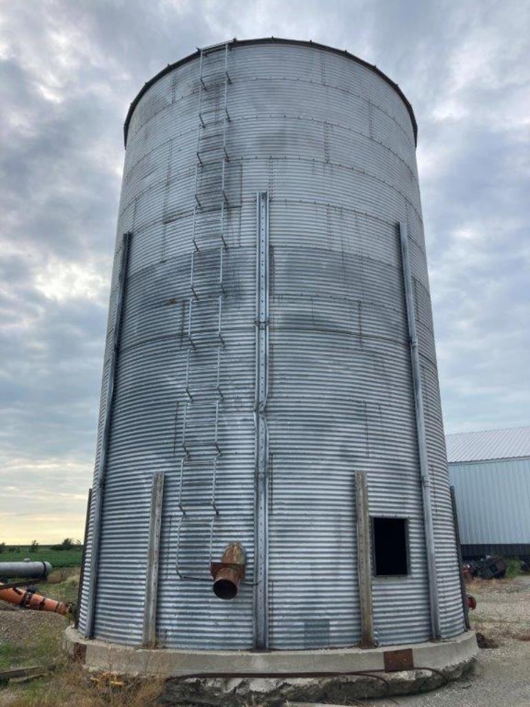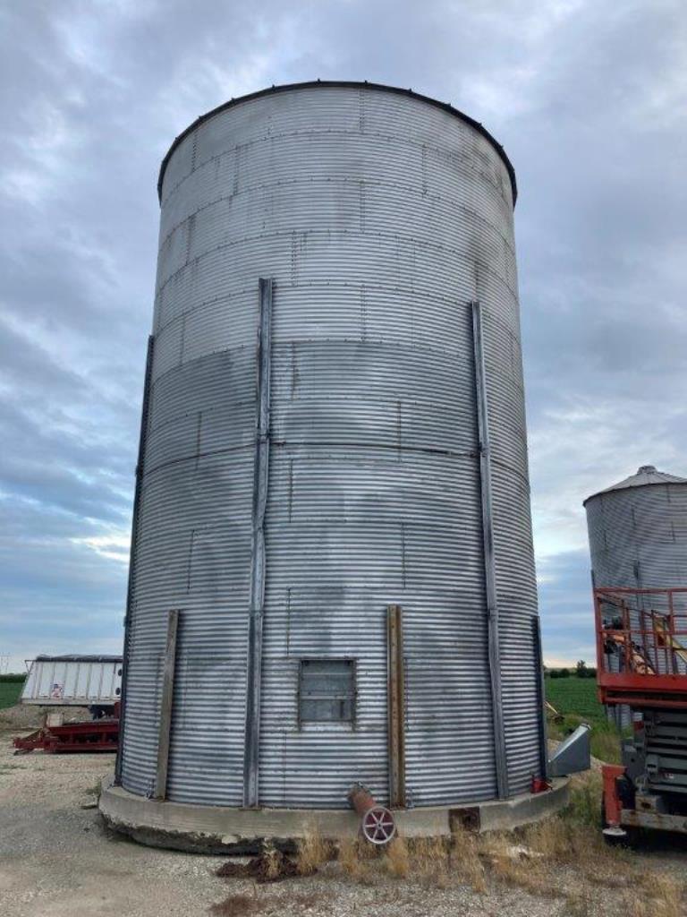 Butler 21 Foot X 12 Ring Grain Bin (PD3414), 10,000 bushel stiffened grain bin, 8 inch unload, full floor, 1 lower pour spout, fan transition but no fan included.