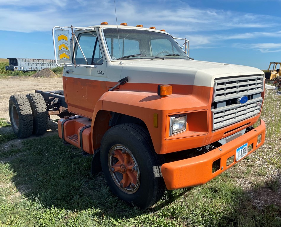1986 Ford 600 Dually (ED3148), 1986 Ford 600 dually, Detroit 8.2 diesel, automatic, rust free cab, tilt hood, good rubber, shows 42,701 original miles.