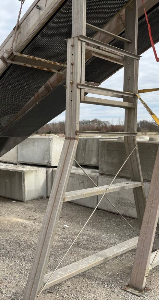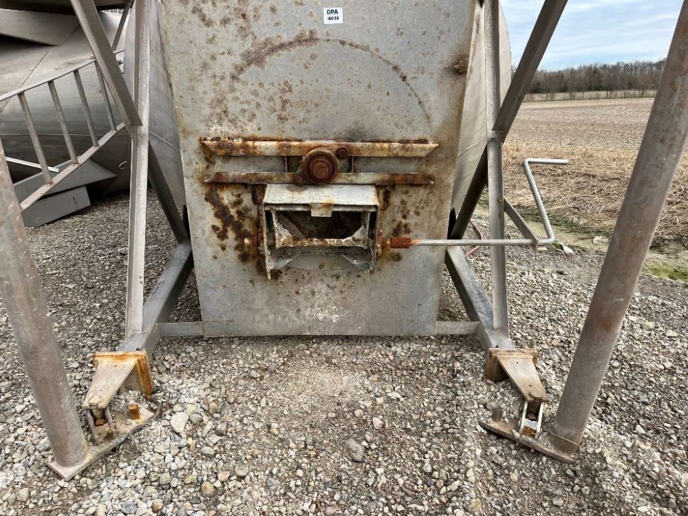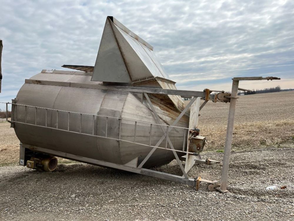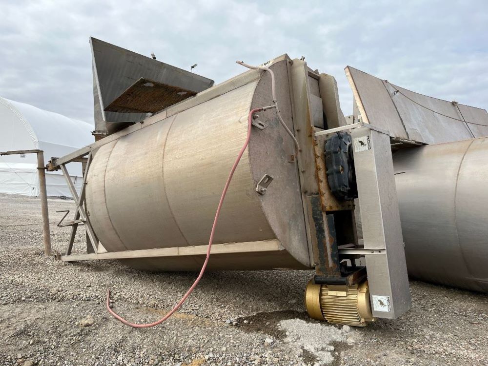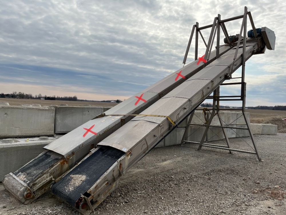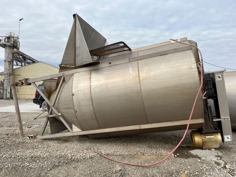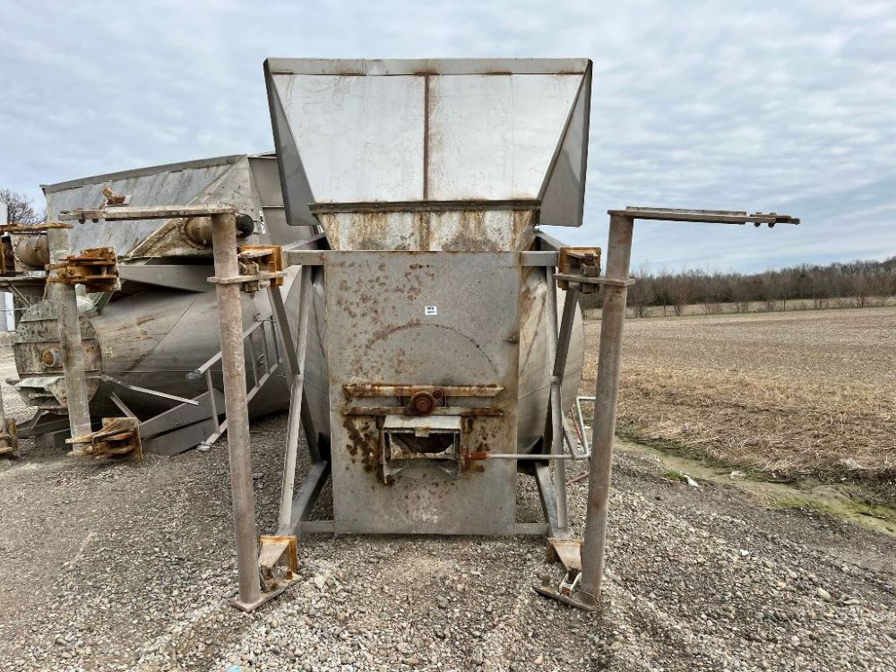 Adams Dry Blender (DB0150 - DB0151), Adams vertical stainless steel dry blender, stainless steel hopper, ladder, 30' x 24" stainless steel loadout conveyor, electric motor, stainless steel stand.