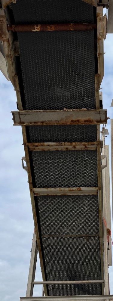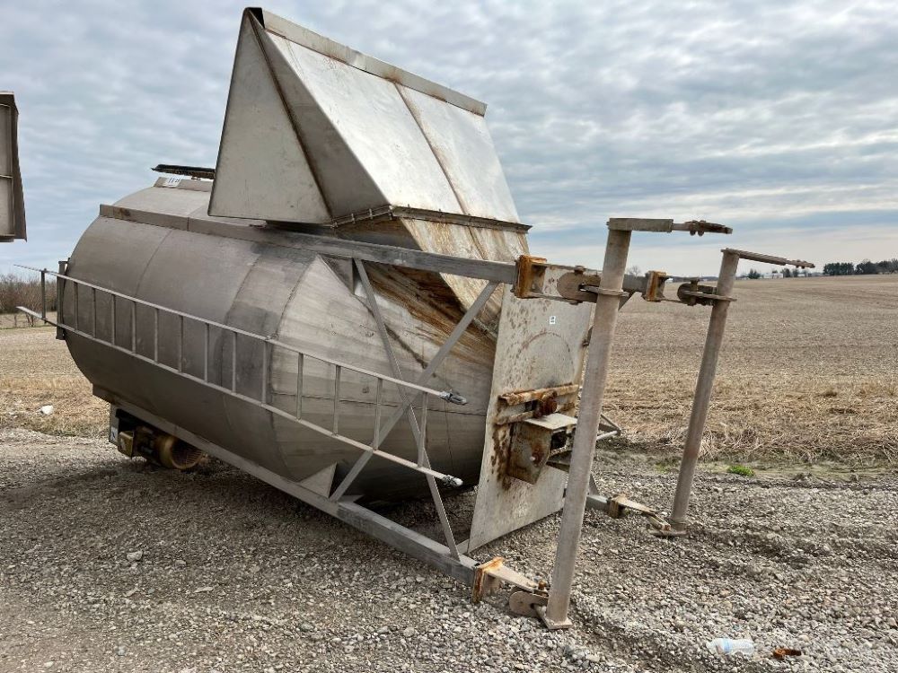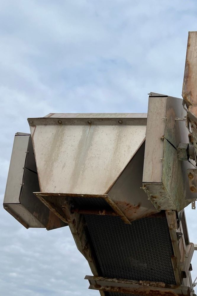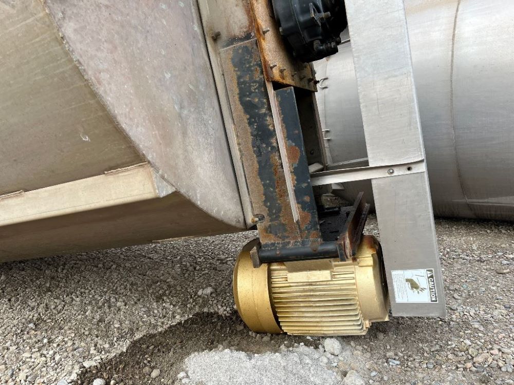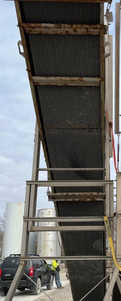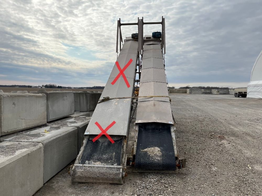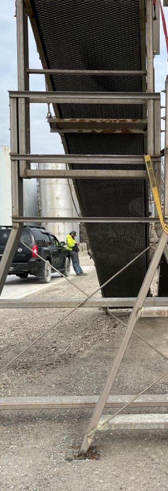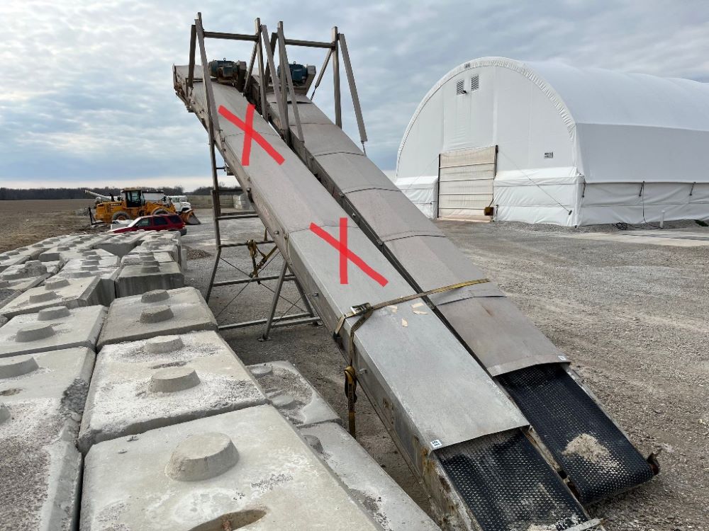 Adams Dry Blender (DB0150 - DB0151), Adams vertical stainless steel dry blender, stainless steel hopper, ladder, 30' x 24" stainless steel loadout conveyor, electric motor, stainless steel stand.