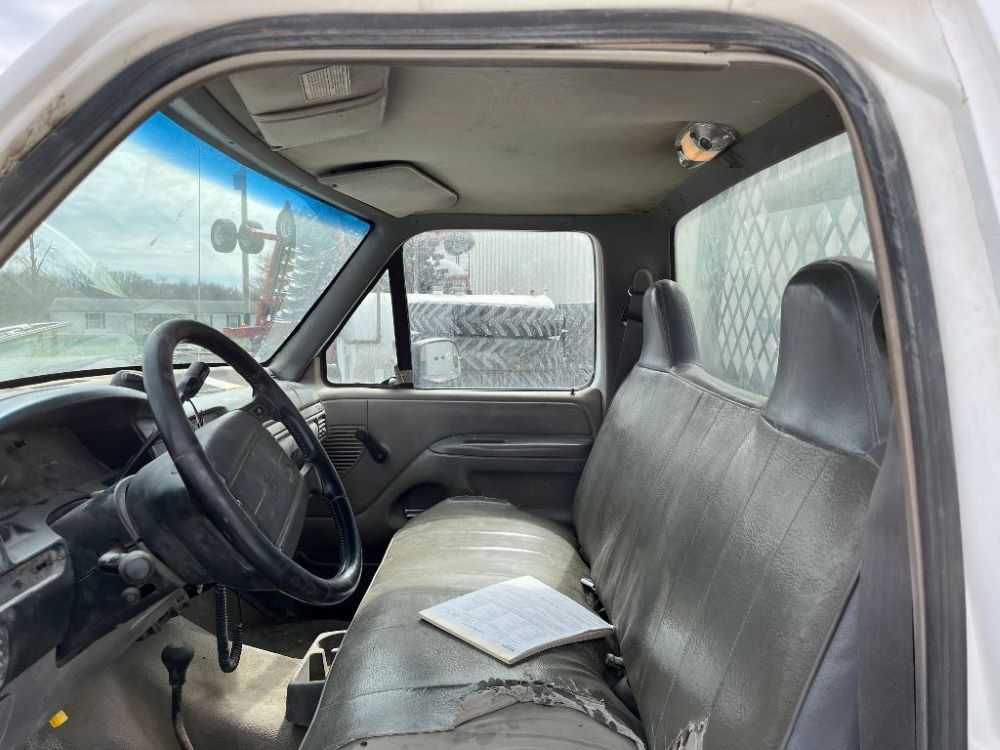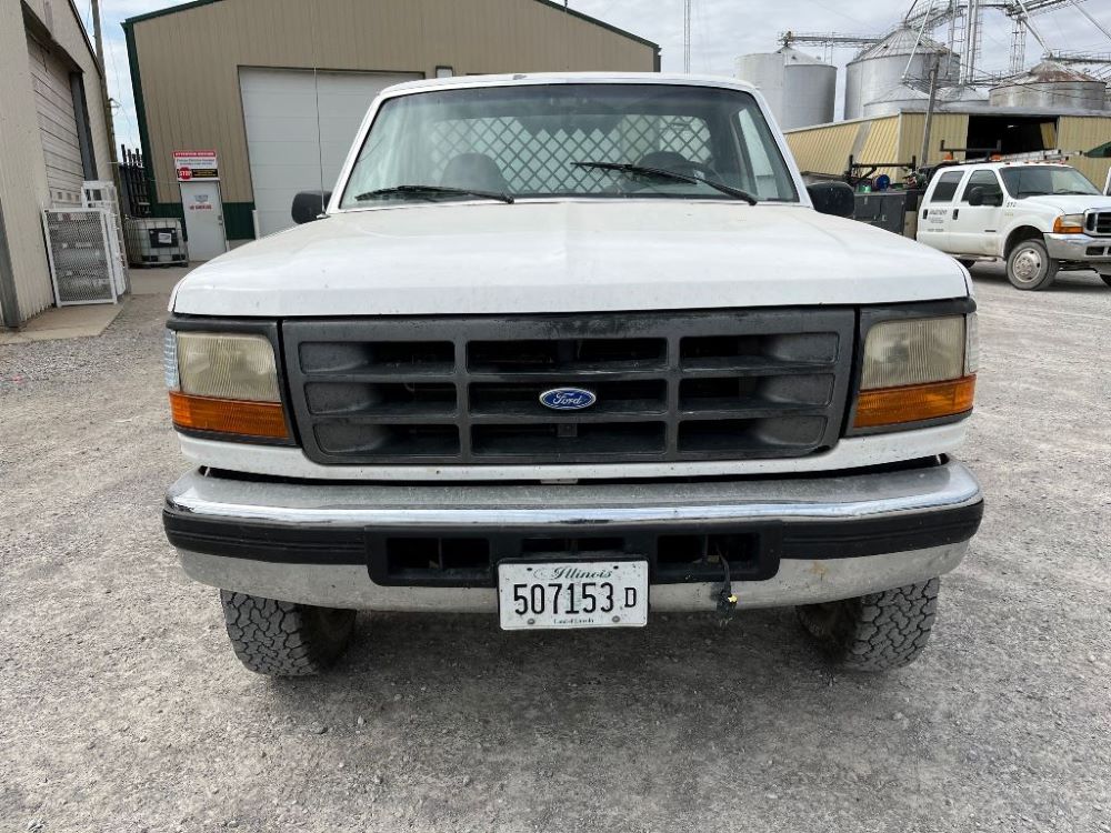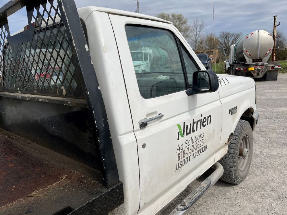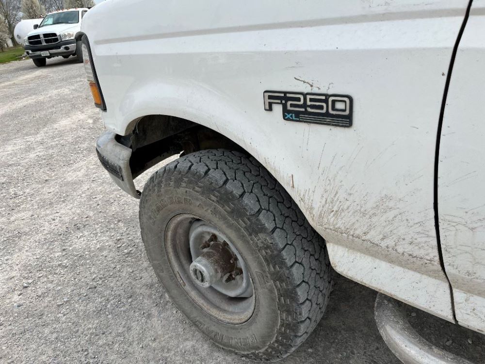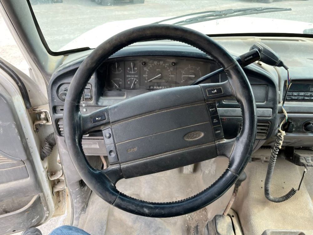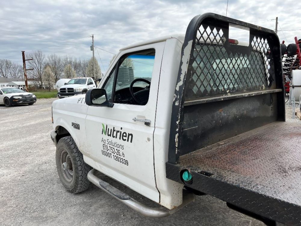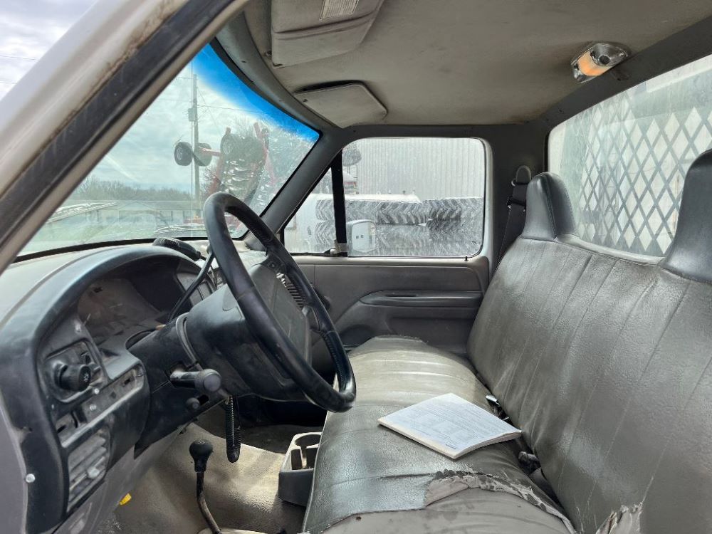 1995 Ford F250XL Flatbed (DB0146, Unit 121540), 4x4, diesel engine, automatic transmission, air conditioning, heat, Am/Fm radio, cruise control, single axle, running boards, rear hitch, Knapheide steel flatbed, headache rack, 5th wheel ball, LT235/85R16 tires, shows 303,006 miles.