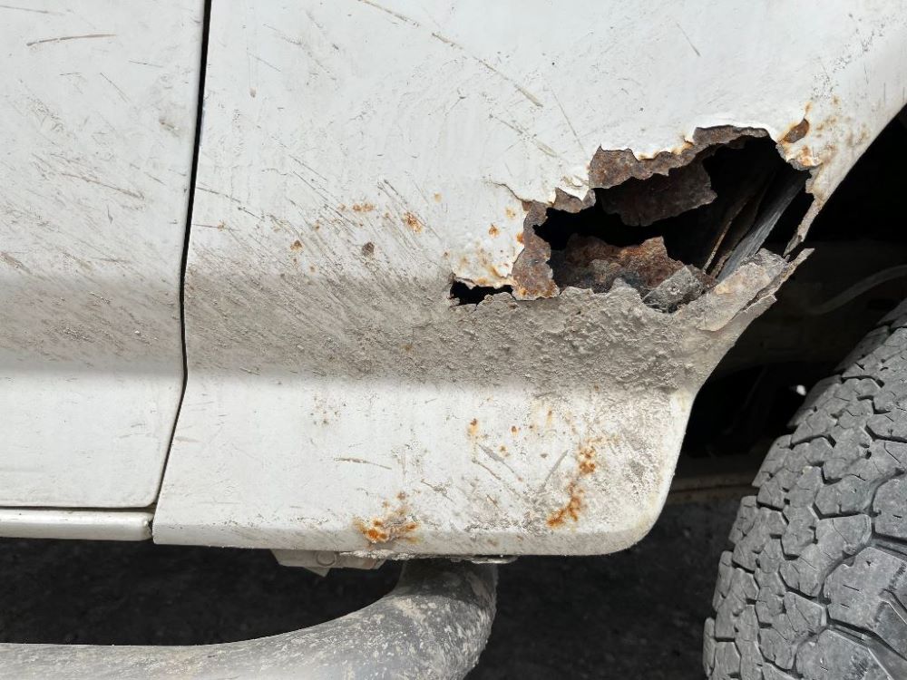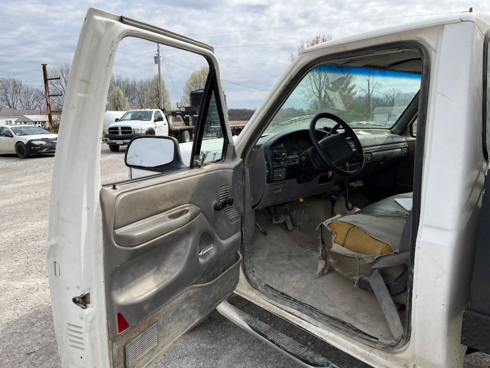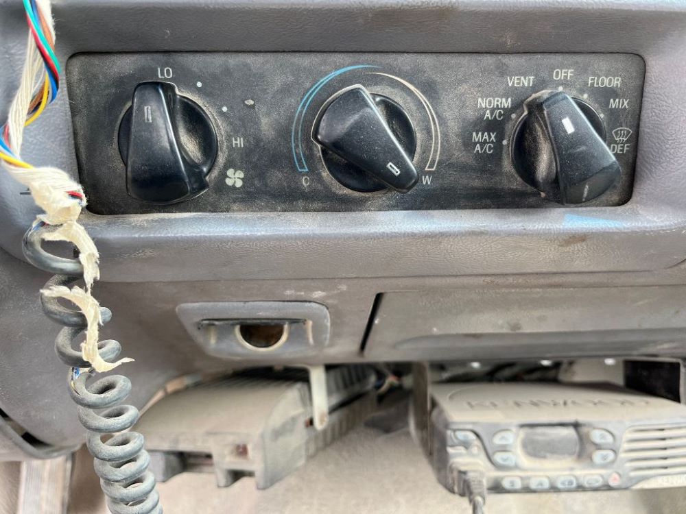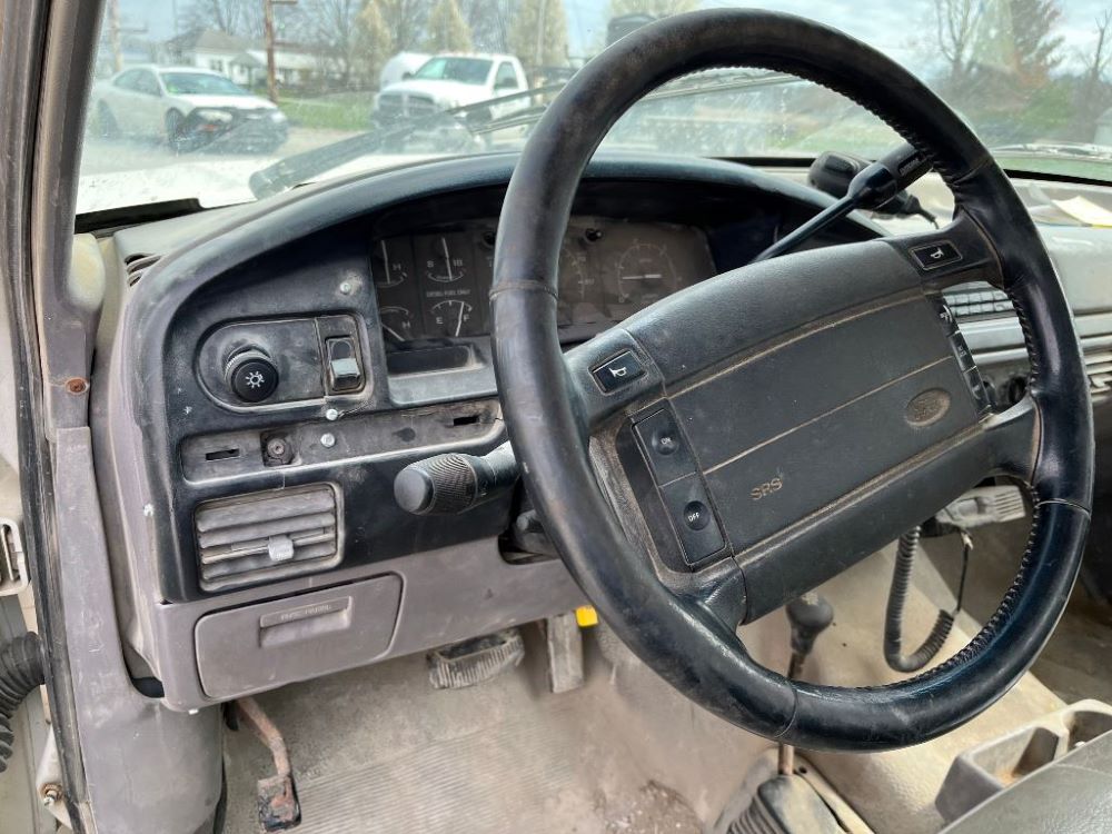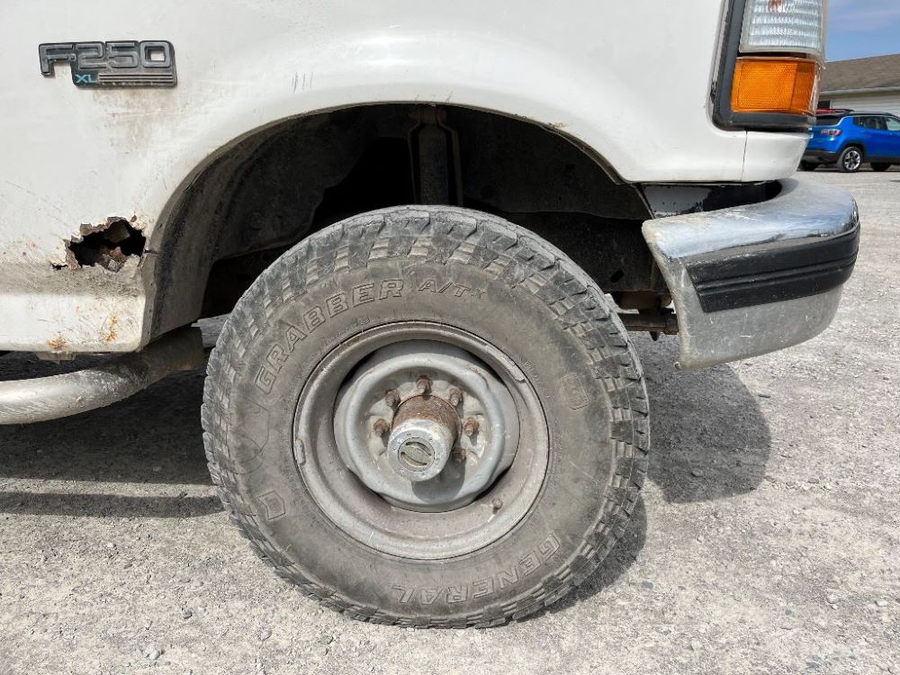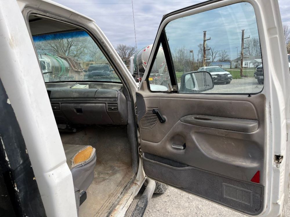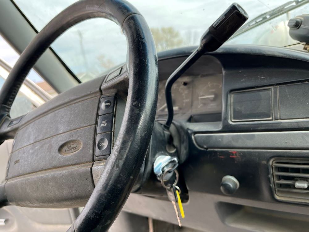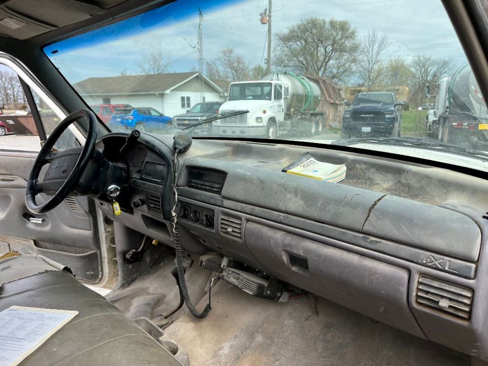1995 Ford F250XL Flatbed (DB0146, Unit 121540), 4x4, diesel engine, automatic transmission, air conditioning, heat, Am/Fm radio, cruise control, single axle, running boards, rear hitch, Knapheide steel flatbed, headache rack, 5th wheel ball, LT235/85R16 tires, shows 303,006 miles.