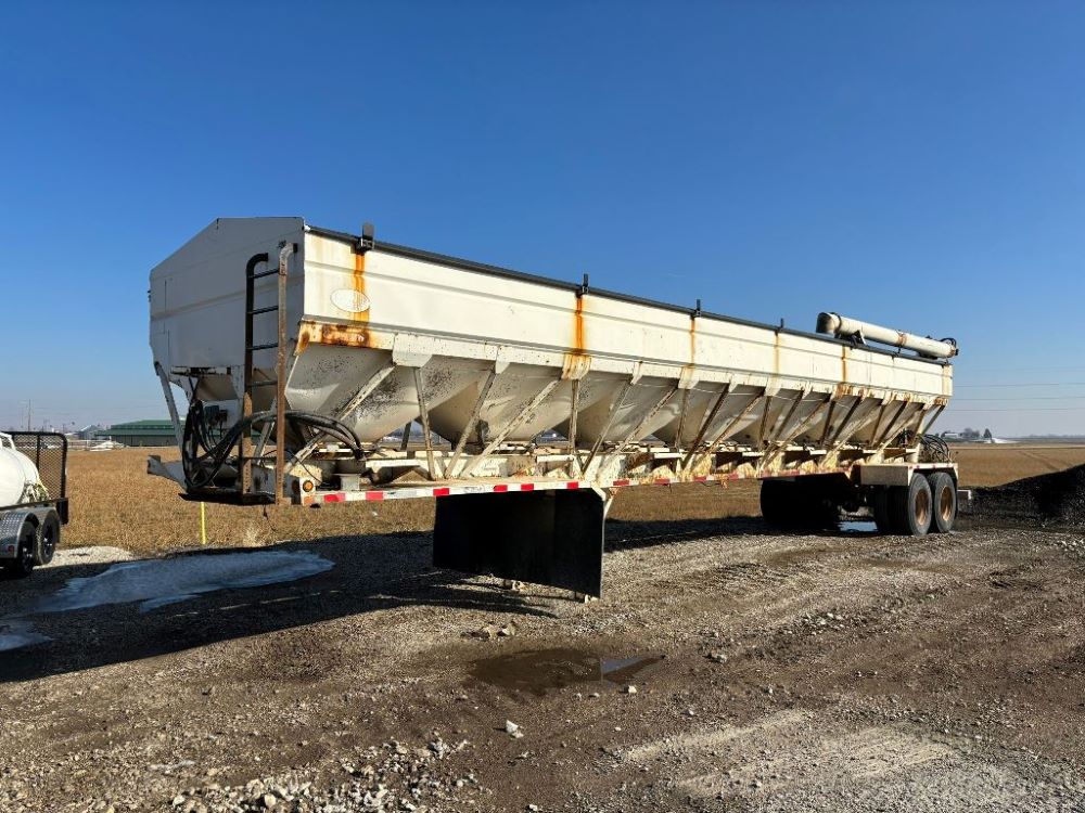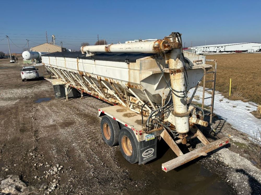 2012 Ray-Man Dry Tender Trailer (GP6225, Unit 29946), 2012 Ray-Man 24 ton 7 compartment dry tender trailer, overhead auger system, roll over tarp, tandem axle, spring suspension, 11R22.5 tires.