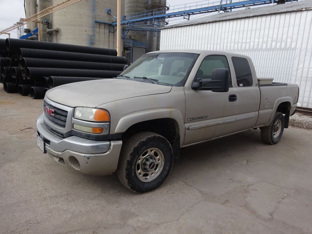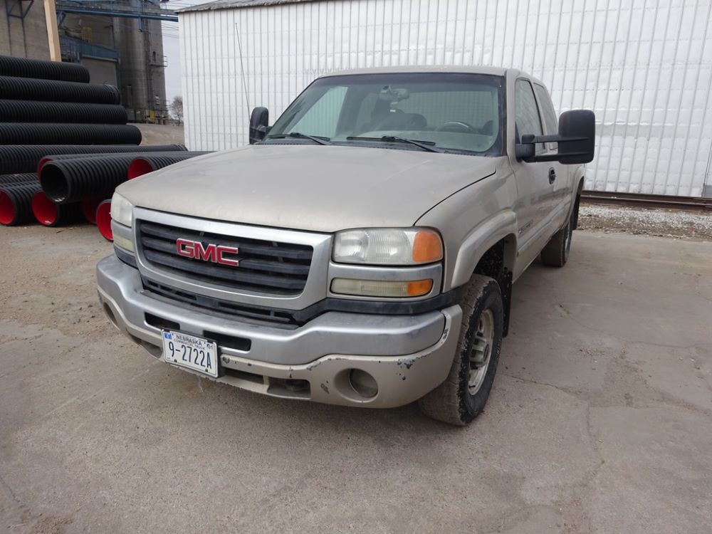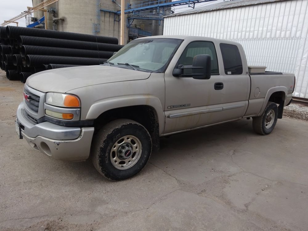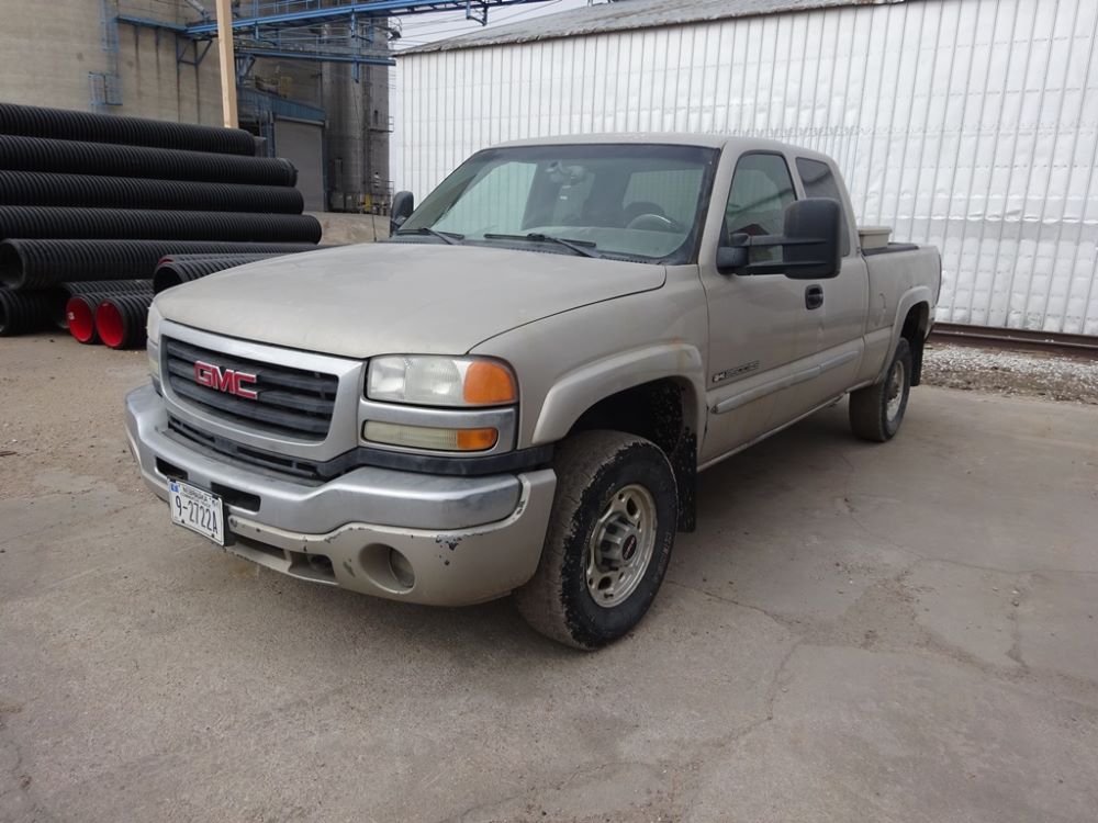 2006 GMC 2500HD Extended Cab Pickup (PZ12007, Unit 2440), 4x4, Vortec 6.0L gas engine, automatic transmission, air conditioning, heat, Am/Fm CD radio, cruise control, power windows & locks, 5th wheel ball, rear hitch, LT245/75R16 tires, shows 360,302 miles.