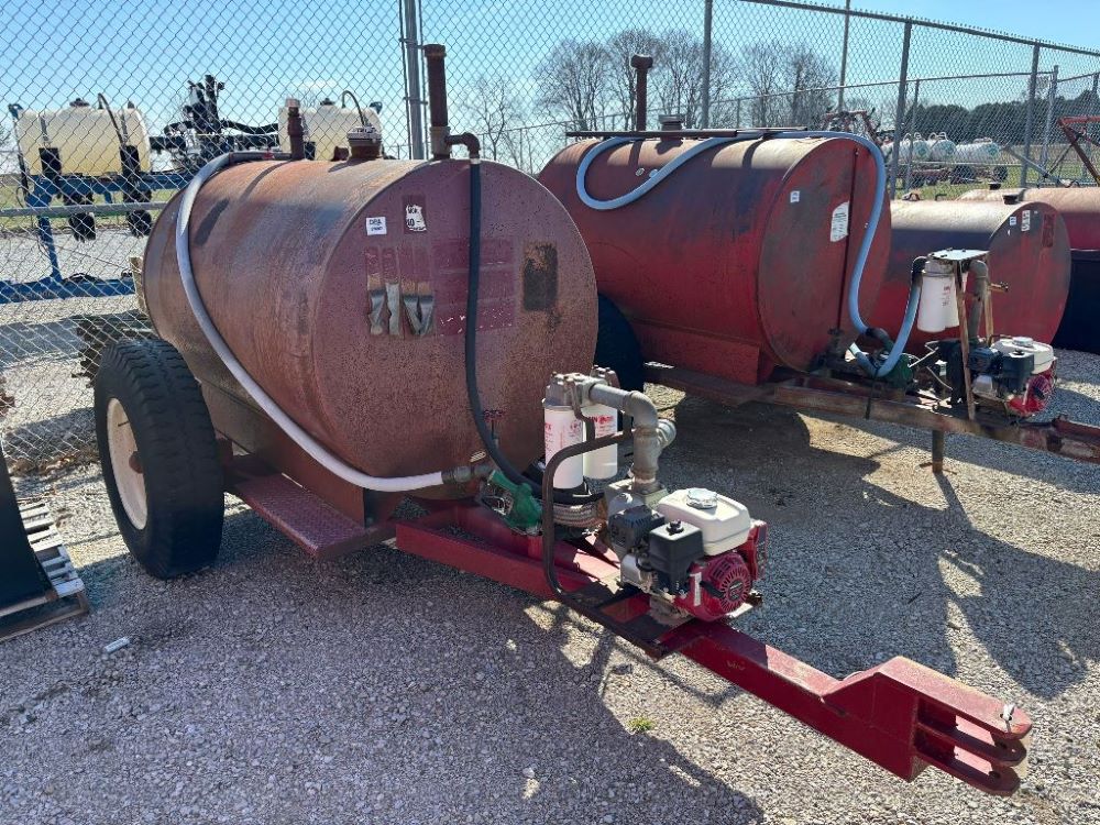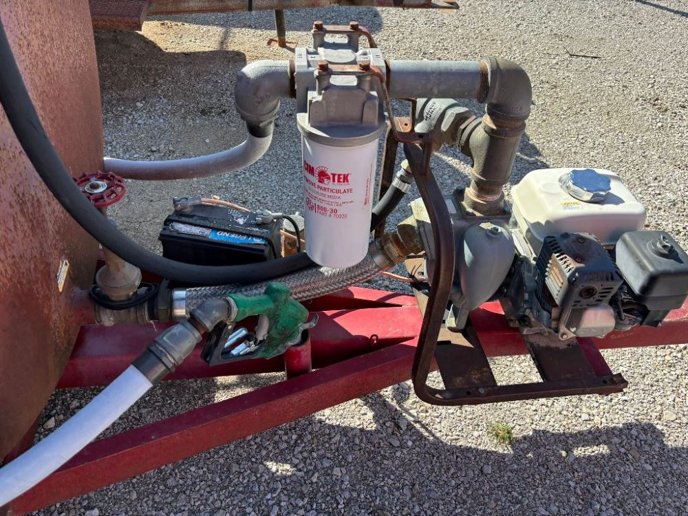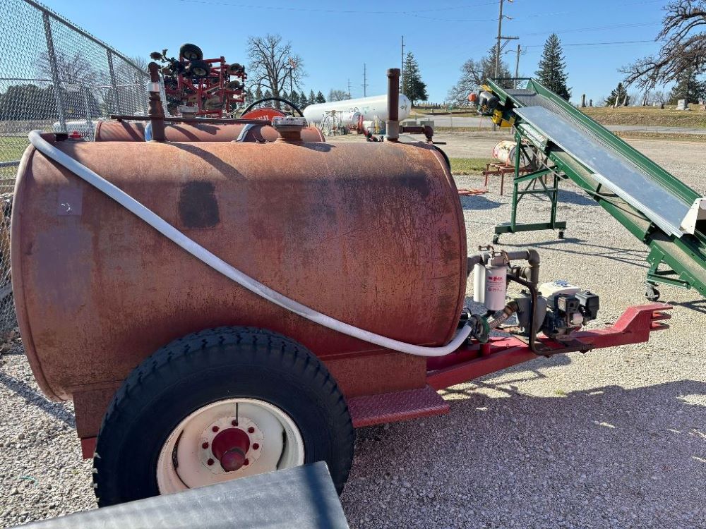 Portable Fuel Tank (GP6912), approx. 500 gallon capacity, single axle gear, Honda GX160 electric start gas motor, pump, fuel gun, 9.00-20 tires.