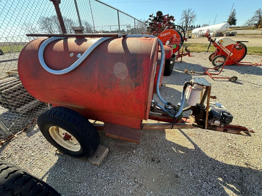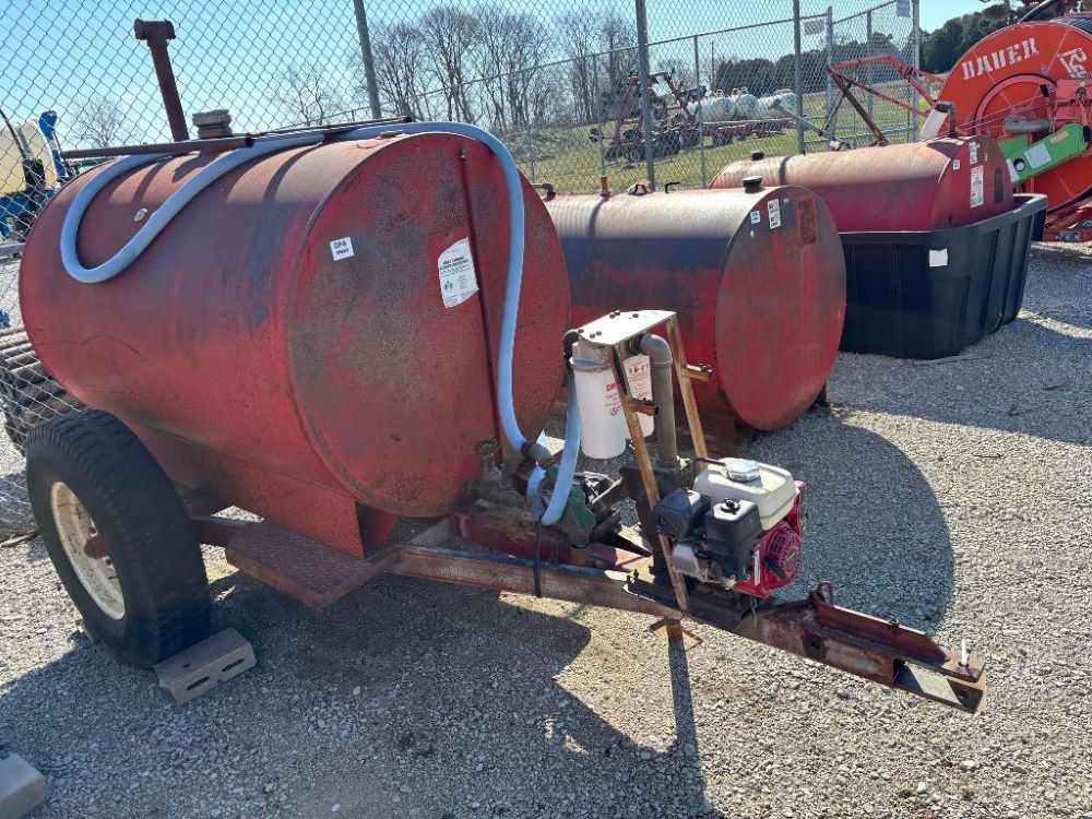 Portable Fuel Tank (GP6913), approx. 500 gallon capacity, single axle gear, Honda GX160 electric start gas motor, pump, fuel gun, 9.00-20 tires.