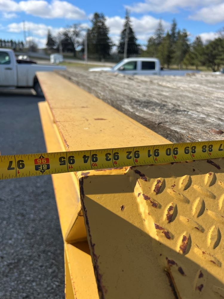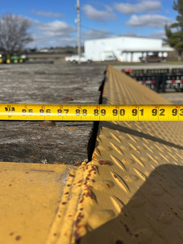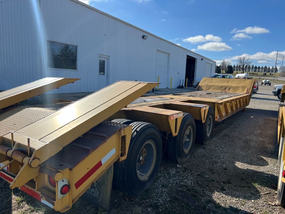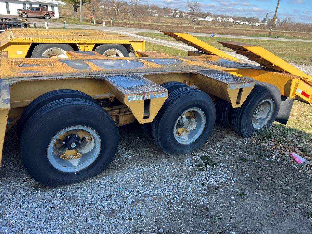 1977 Load King Drop Deck Trailer (GP6886), 1977 Load King drop deck trailer, upper deck approx. 89" long x 96" wide, lower deck approx. 17' long x 96" wide, wood deck, fold down ramps, triple axle, landing gear, 8.25R15 tires.