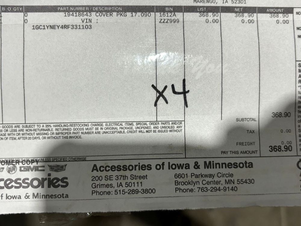 (4) Silverado Box Covers (GP6880), (4) box covers for 2024 Silverado 3/4 ton pickup.
