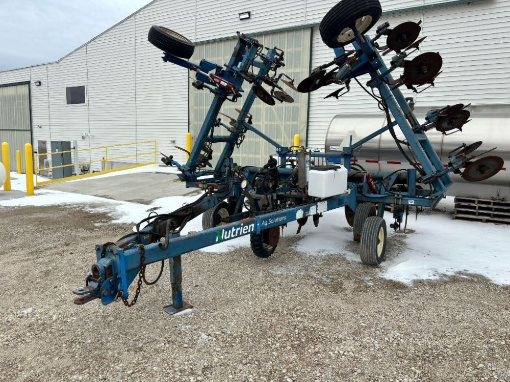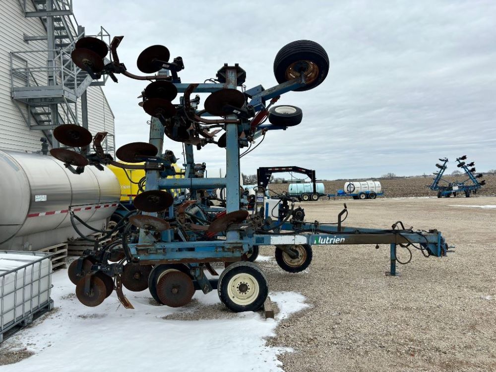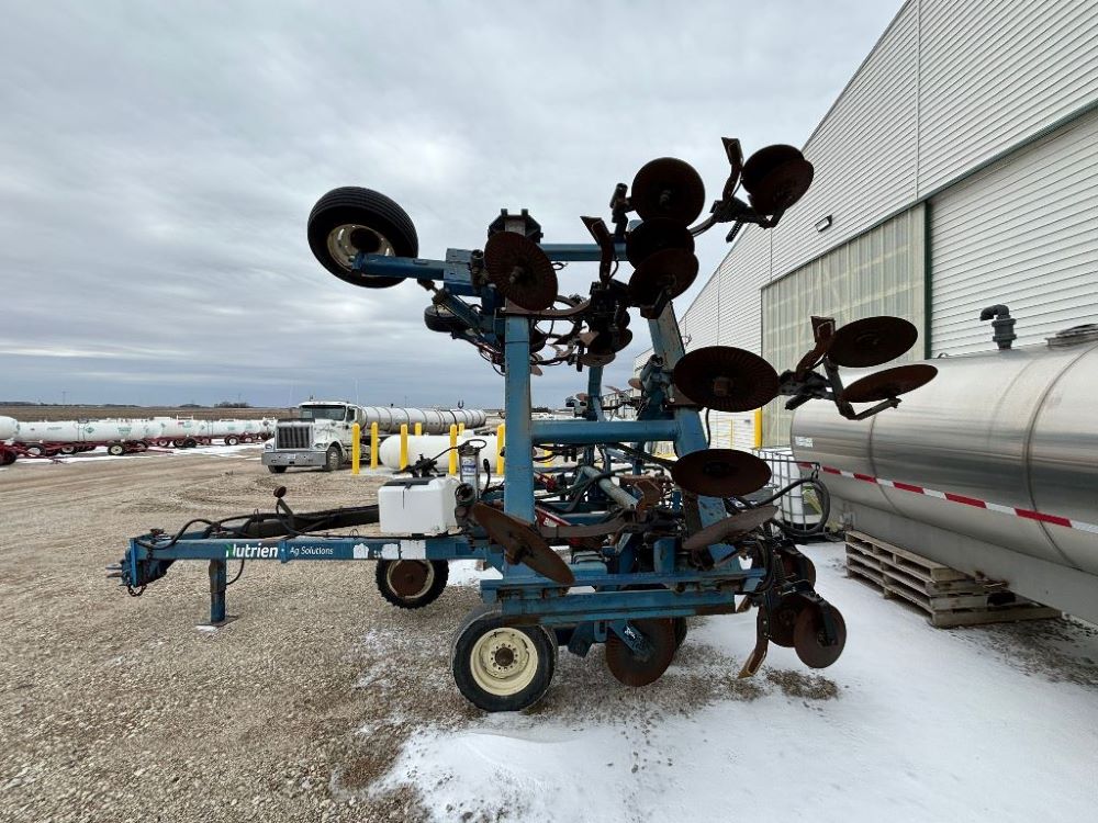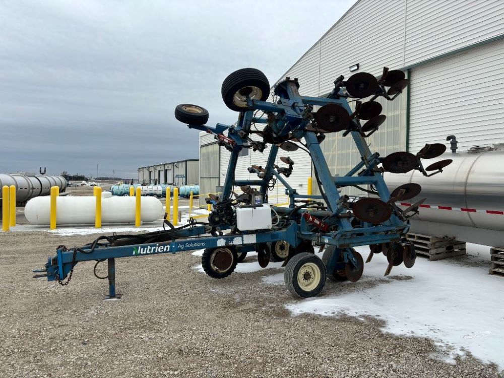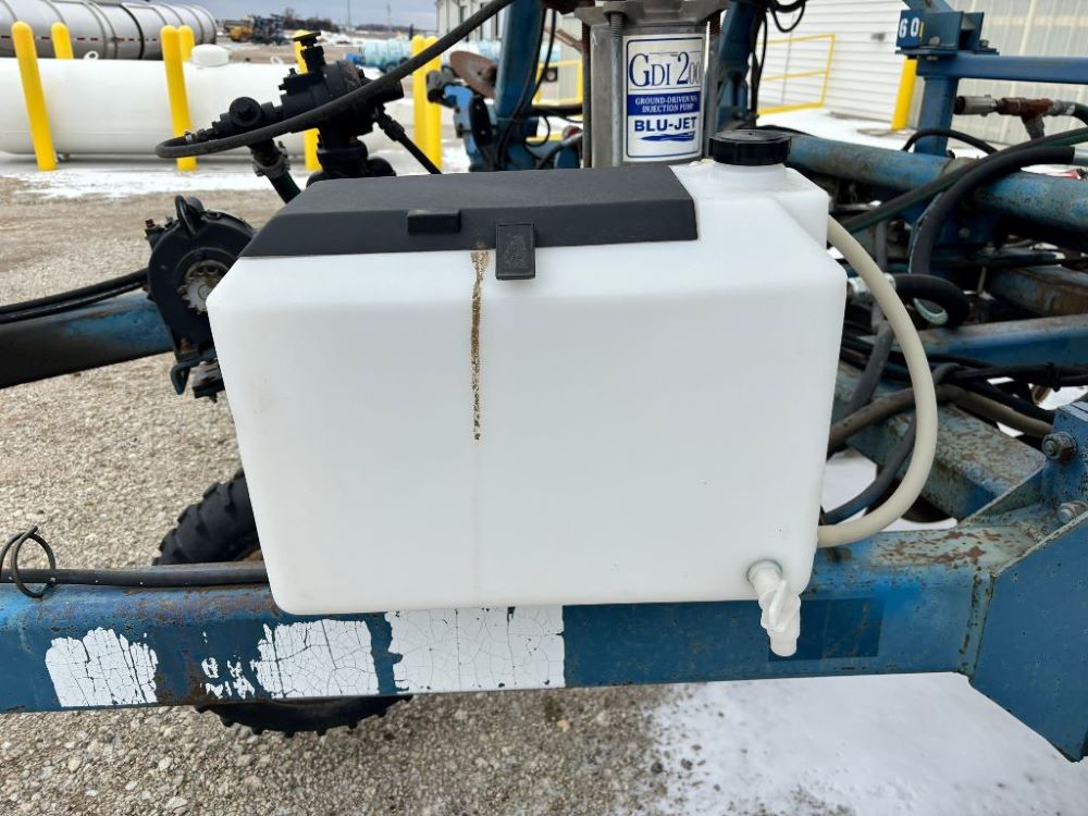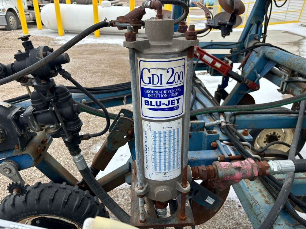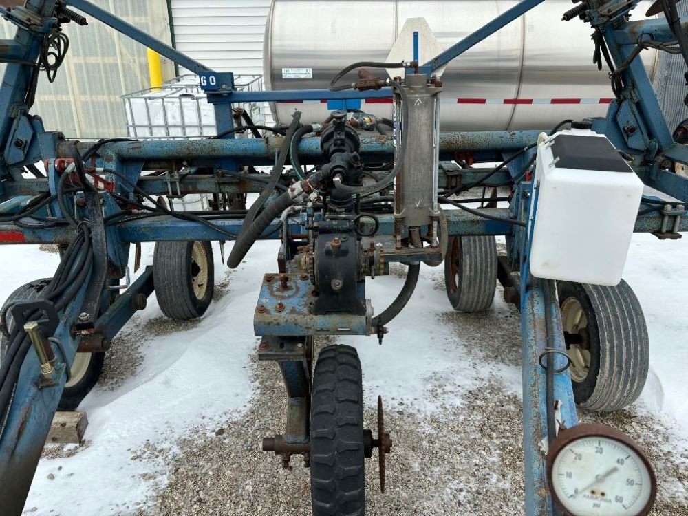 Anhydrous Tool Bar (GP6946, Unit 107660), 15 knife anhydrous tool bar, coulters, double disc sealers, walking tandems, Blu-Jet GDI 200 ground drive pump, 27x9.50-15 tires.