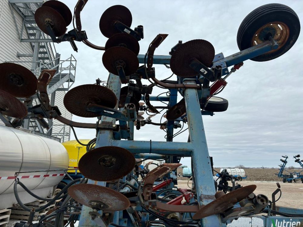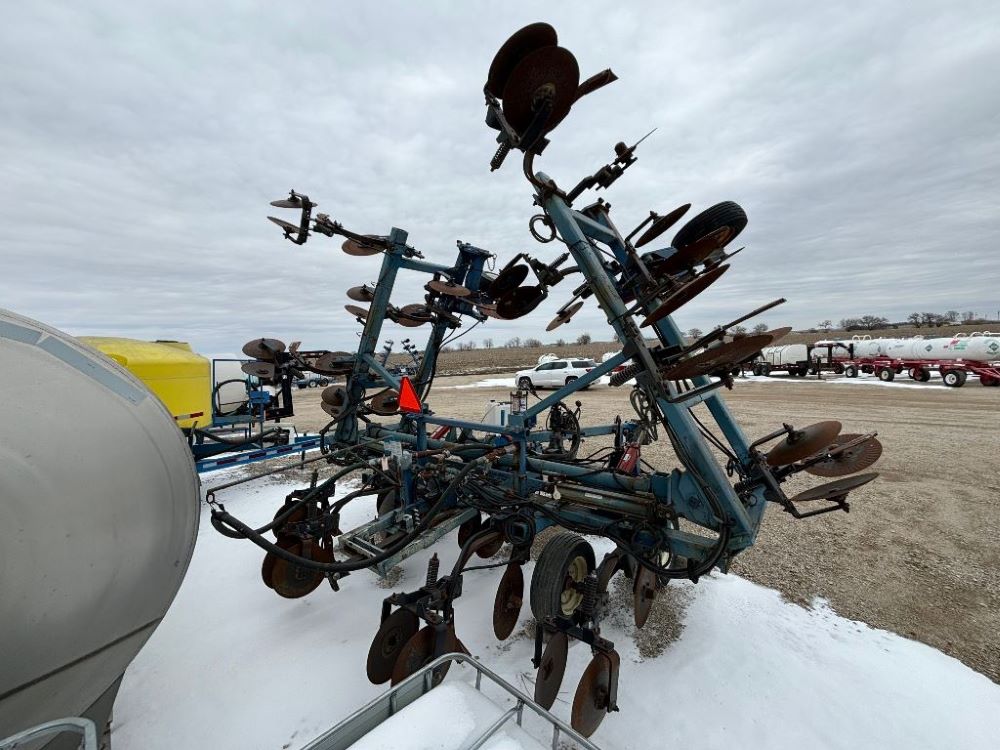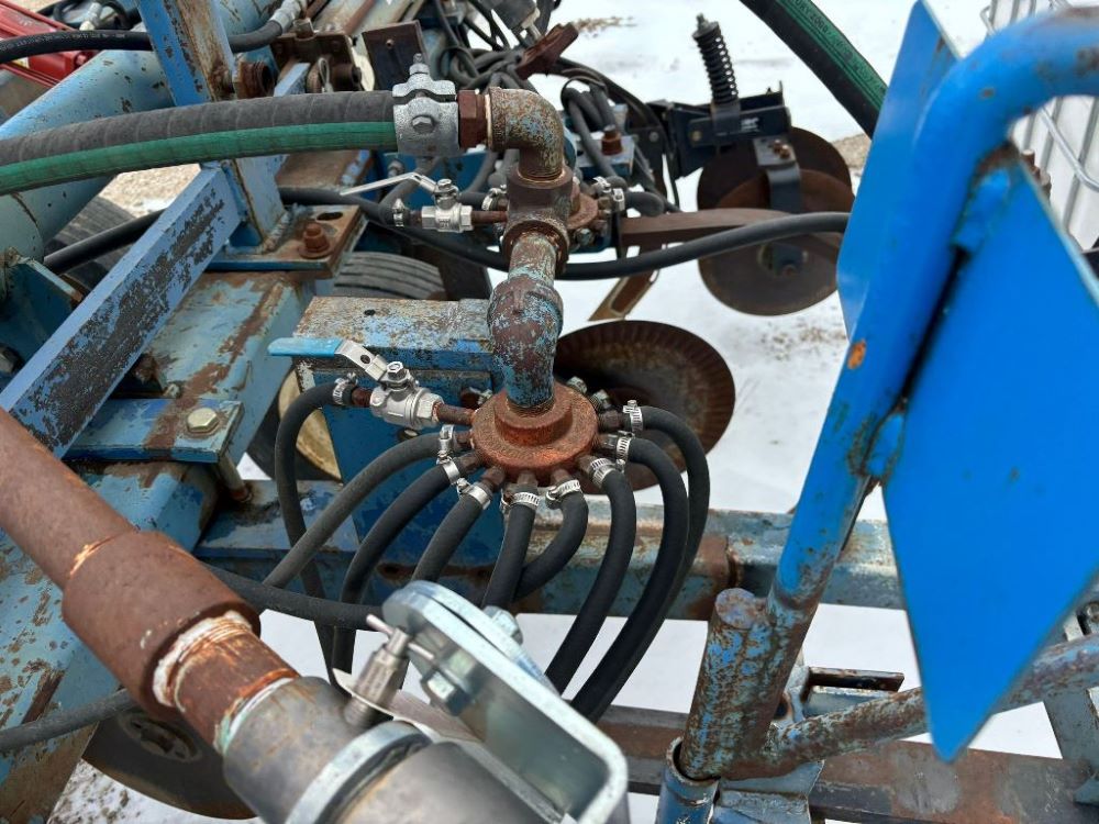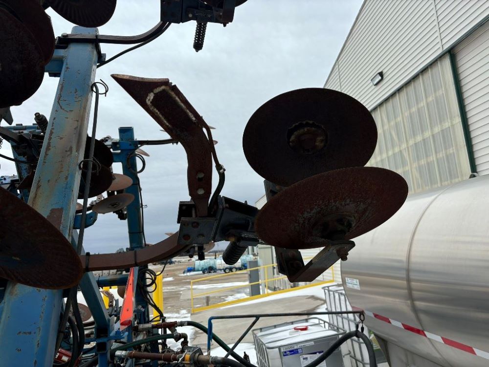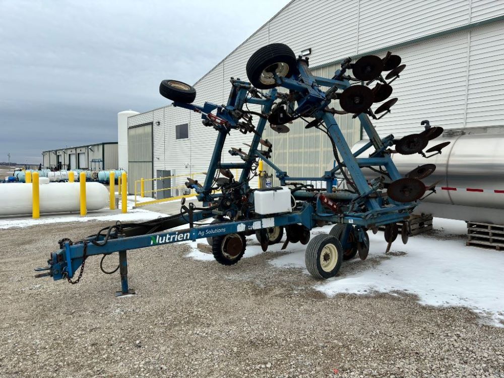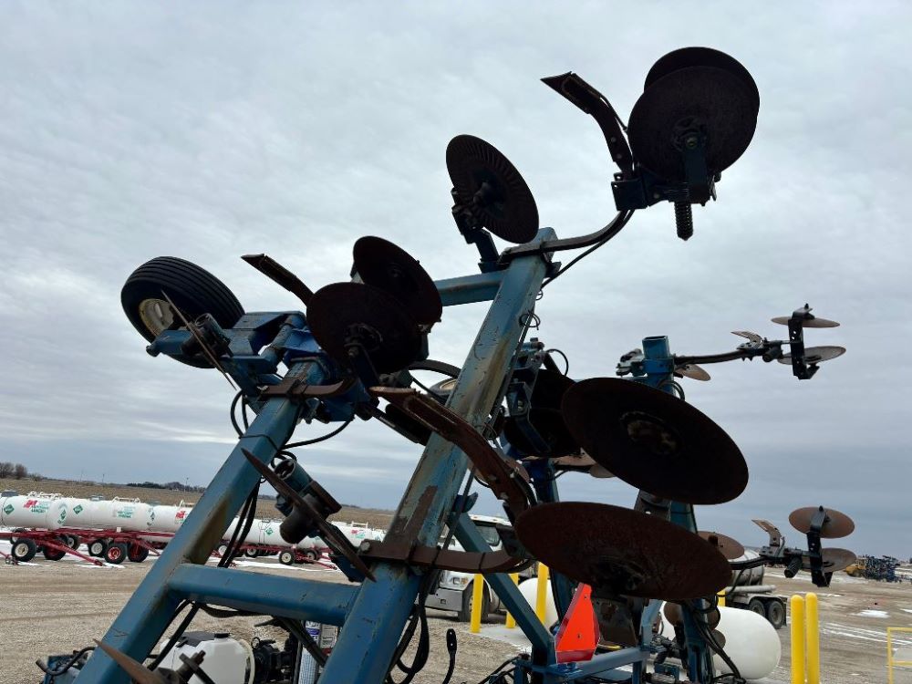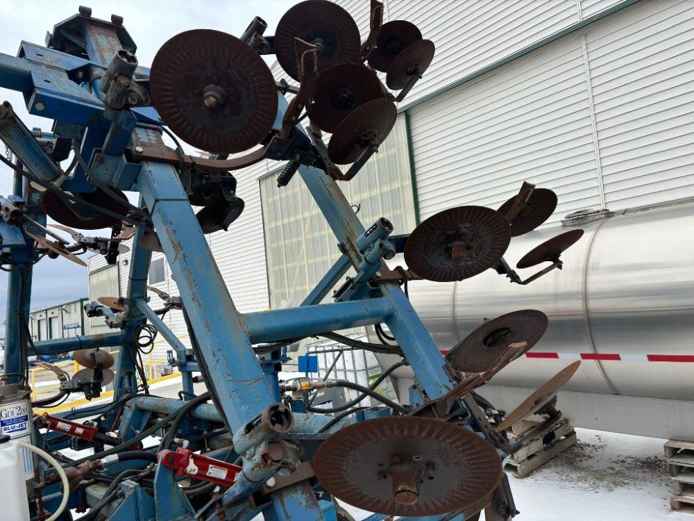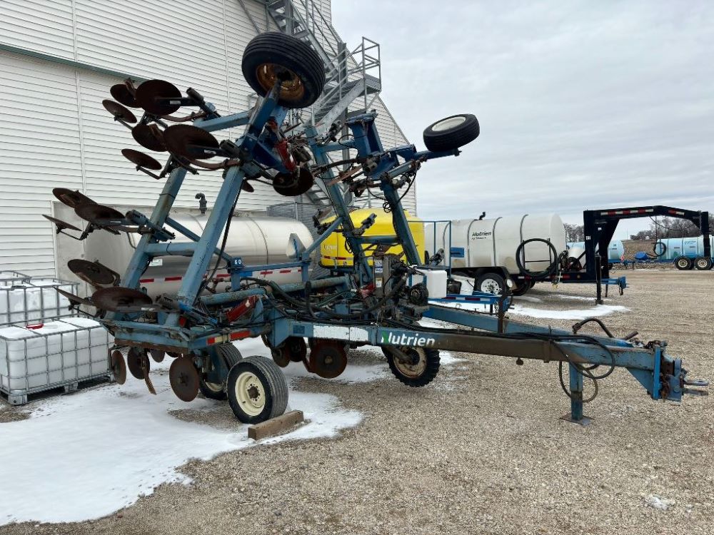 Anhydrous Tool Bar (GP6946, Unit 107660), 15 knife anhydrous tool bar, coulters, double disc sealers, walking tandems, Blu-Jet GDI 200 ground drive pump, 27x9.50-15 tires.