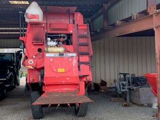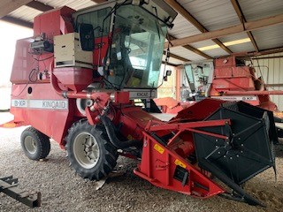 2004 Kincaid 8XP Combine (NP5137), cab, heat, 2 row combine with soybean header, Harvest Master Grain Device, shows 1,483 hours.