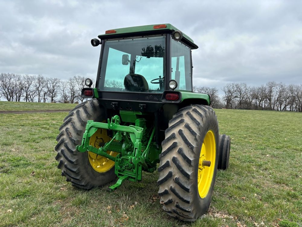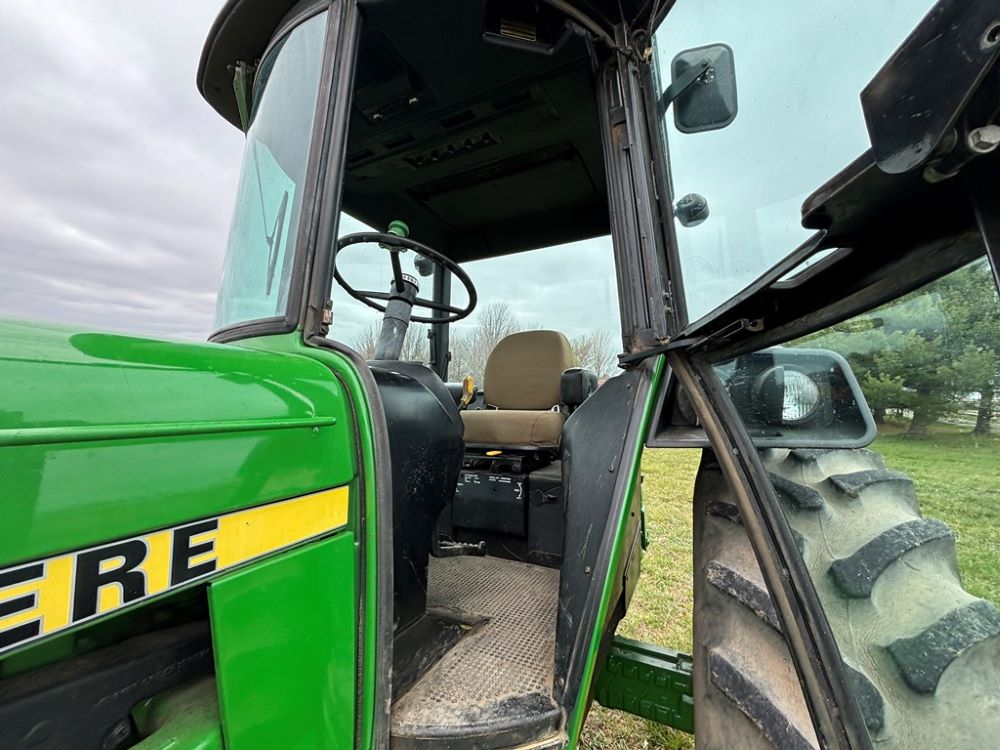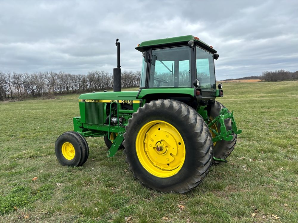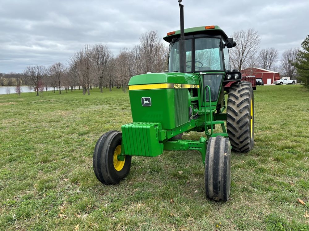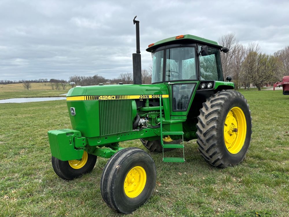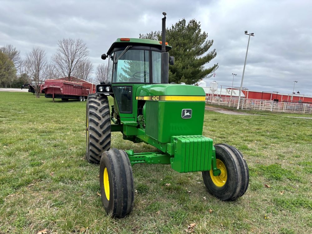 John Deere 4240 Tractor (GP6945), cab, John Deere diesel engine (S/N 6466DR-02 060828RG), Power Shift transmission, heat, air conditioning, quick hitch, 540 PTO, 3 port hydraulics, (8) 45KG front suitcase weights, 11.00-16 front tires, 18.4R38 rear tires, 3,725 ACTUAL HOURS.