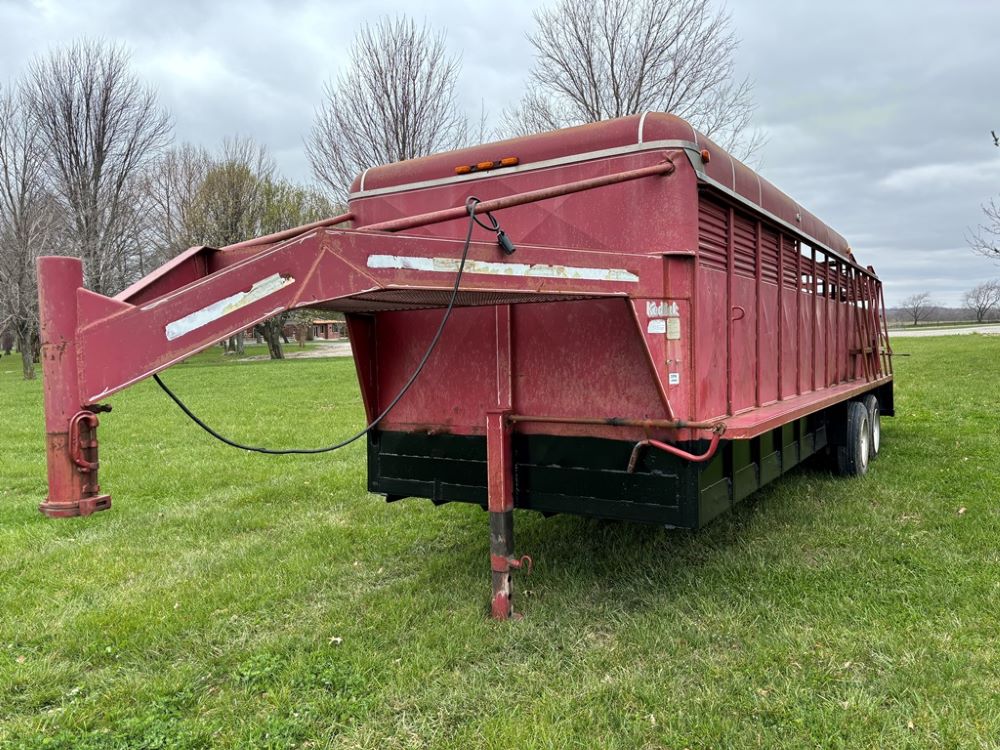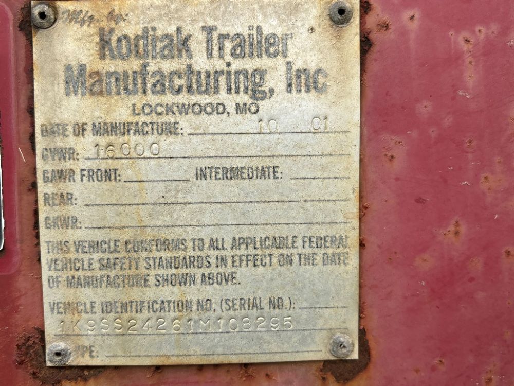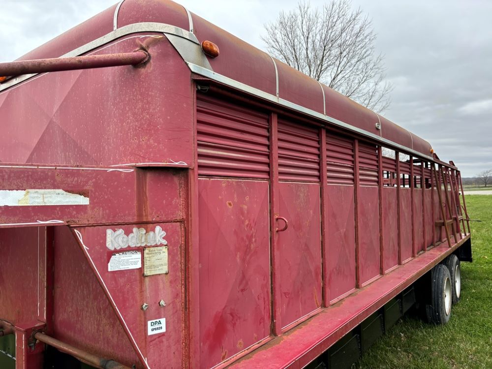 2001 Kodiak Gooseneck Livestock Trailer (GP6939), Kodiak 24' livestock trailer, tandem axle, approx. 24', 215/75R17.5 tires, GVWR 16,000 pounds.