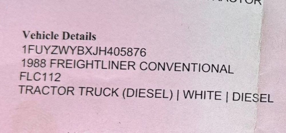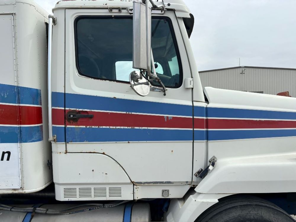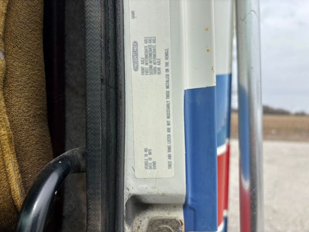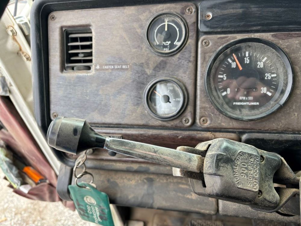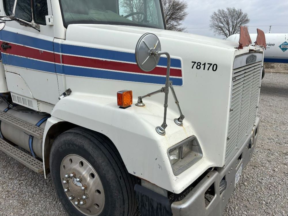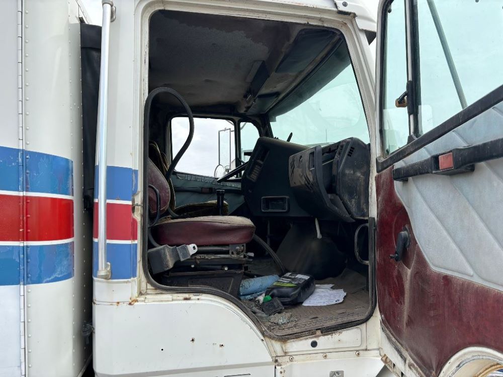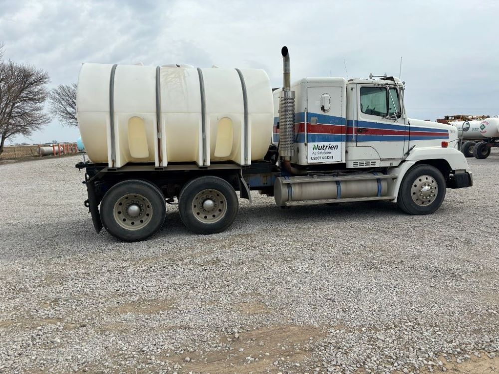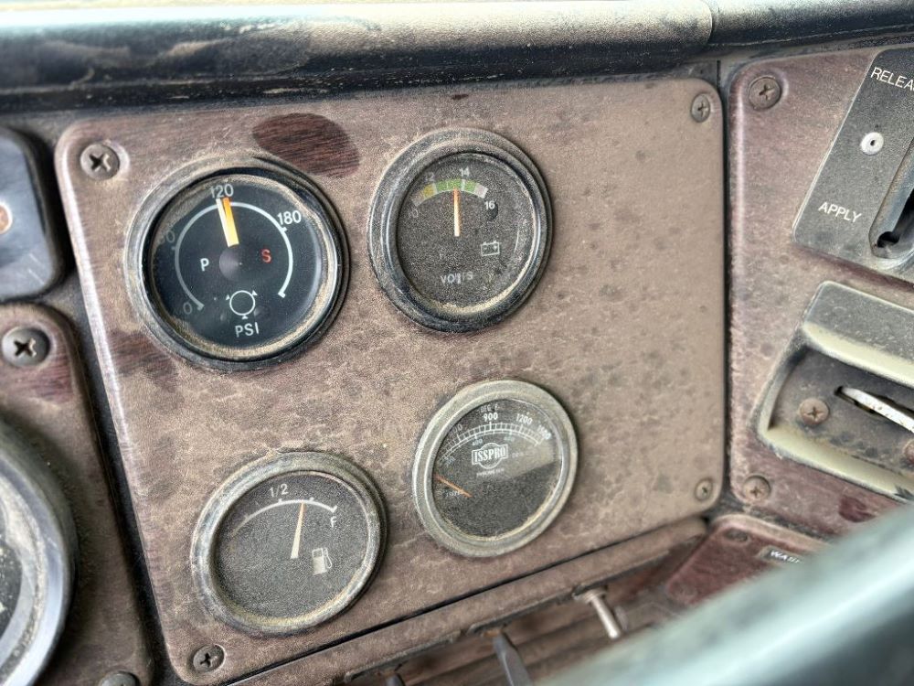 1988 Freightliner Liquid Nurse Truck (GP6728, Unit 78170), Cat 3306 10.5L diesel engine, Eaton Fuller Roadranger transmission, heat, tandem axle, spring suspension, approx. 3,000 gallon poly flat bottom liquid tank, Honda GX340 11.0HP electric start gas motor, pump, dual fuel tanks, single exhaust, 11R24.5 tires.