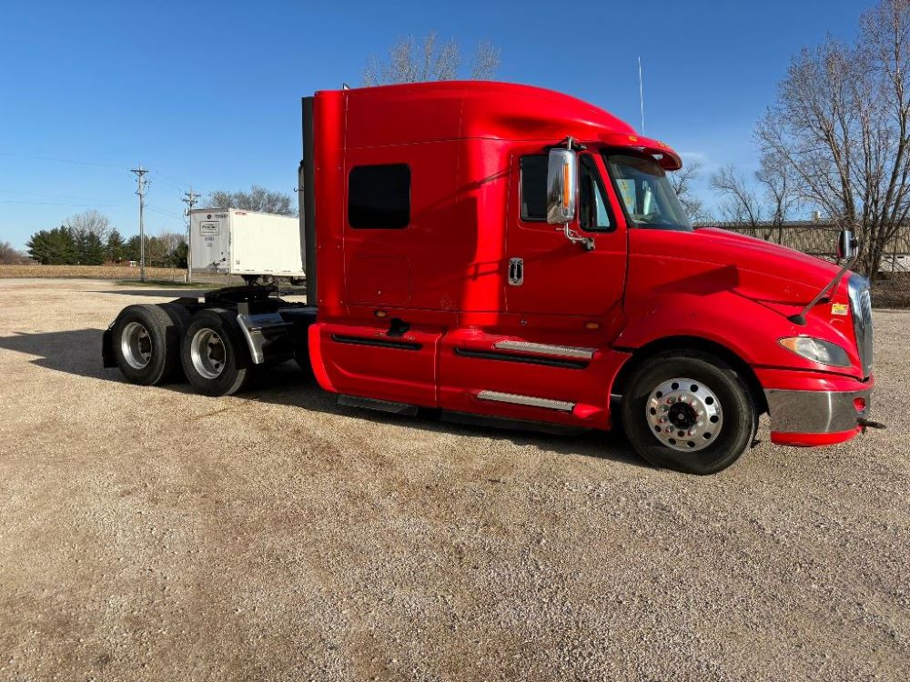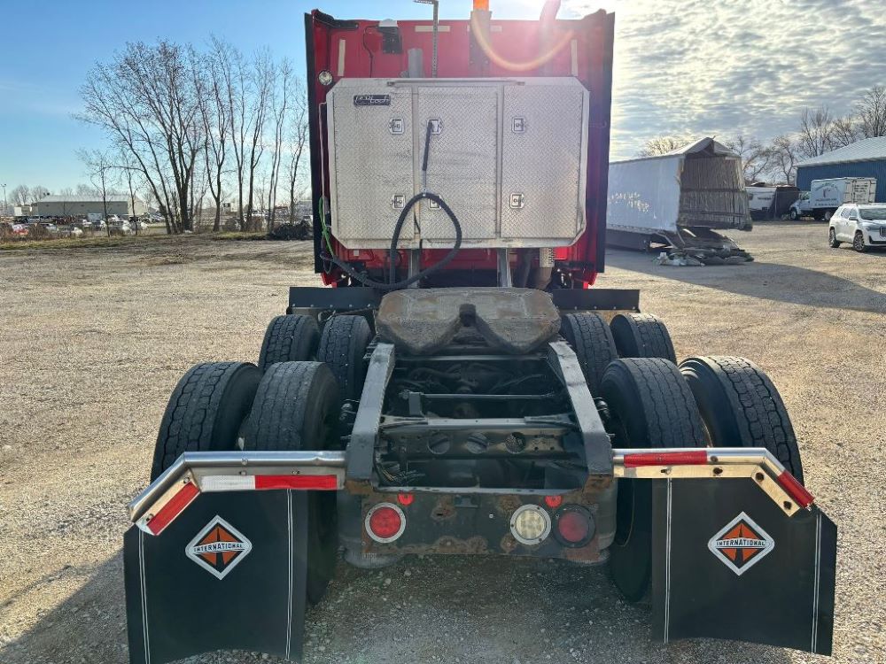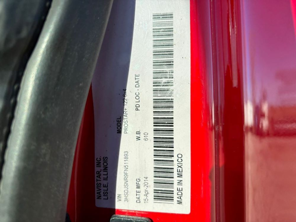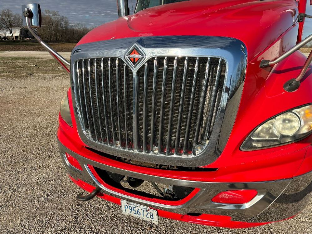 2015 International ProSTar+ 122 Truck (GP6866), Navistar 12.4L diesel engine, Eaton fuller 10 speed transmission, heat, air conditioning, Am/Fm radio, power windows and locks, air ride cab, cruise control, tandem axle, full screw, air ride suspension, air slide 5th wheel plate, 11R22.5 tires, aluminum wheels, Pro-Tech headache rack/lockers, GVWR 52,350 pounds, shows 490,127 miles.