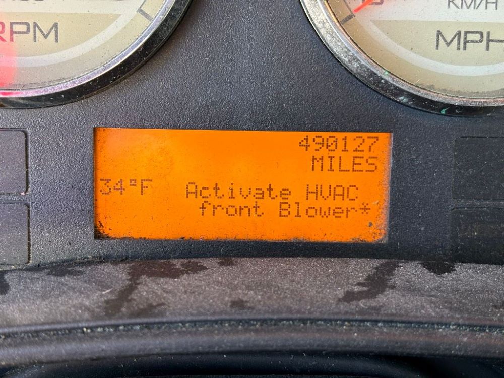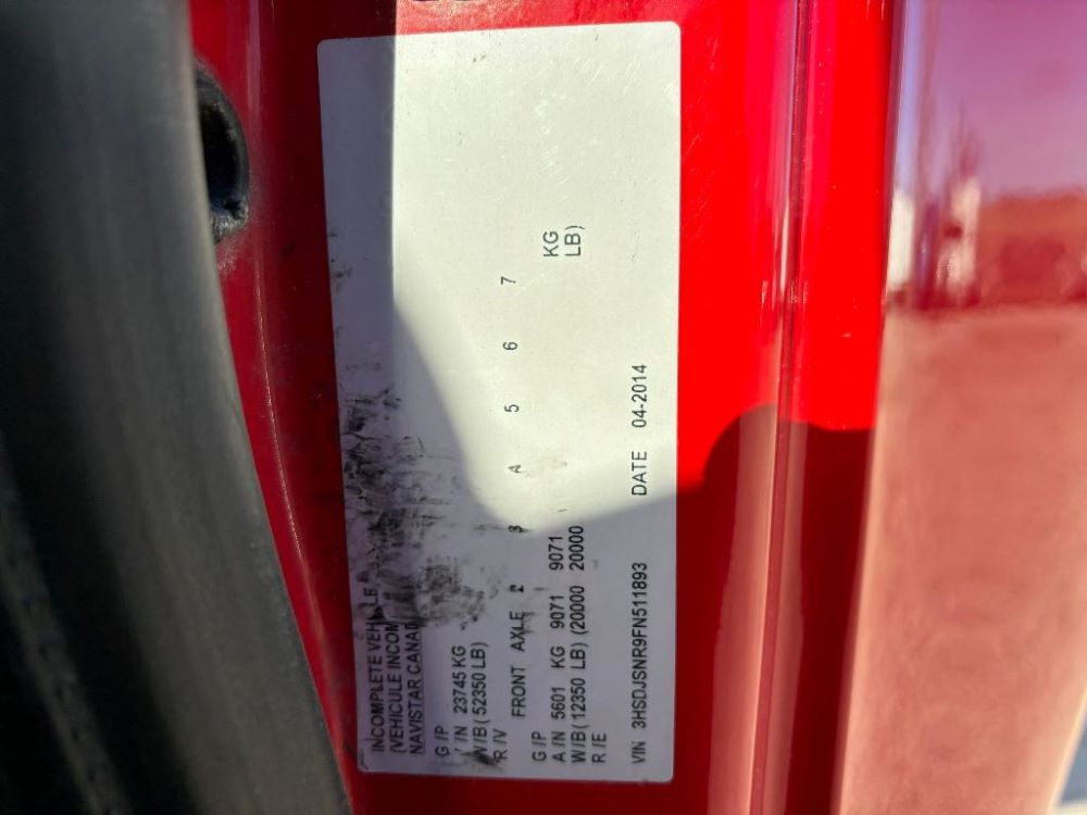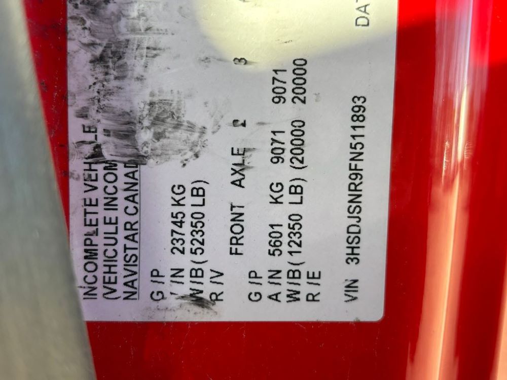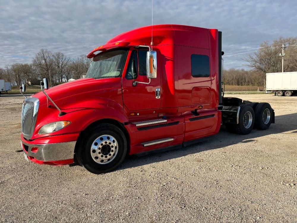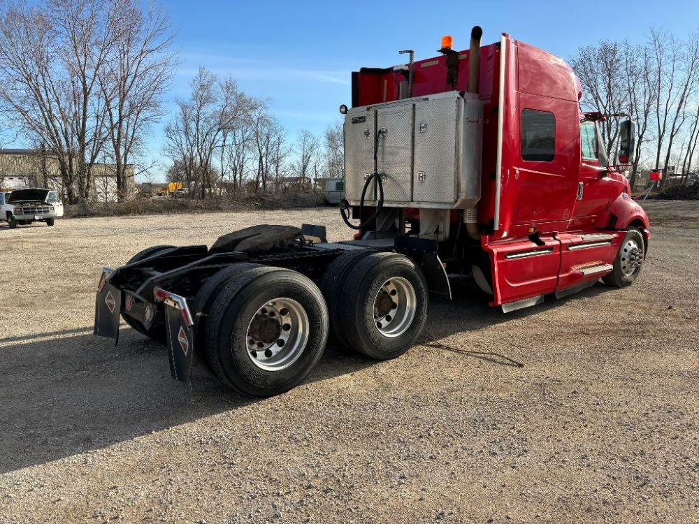 2015 International ProSTar+ 122 Truck (GP6866), Navistar 12.4L diesel engine, Eaton fuller 10 speed transmission, heat, air conditioning, Am/Fm radio, power windows and locks, air ride cab, cruise control, tandem axle, full screw, air ride suspension, air slide 5th wheel plate, 11R22.5 tires, aluminum wheels, Pro-Tech headache rack/lockers, GVWR 52,350 pounds, shows 490,127 miles.
