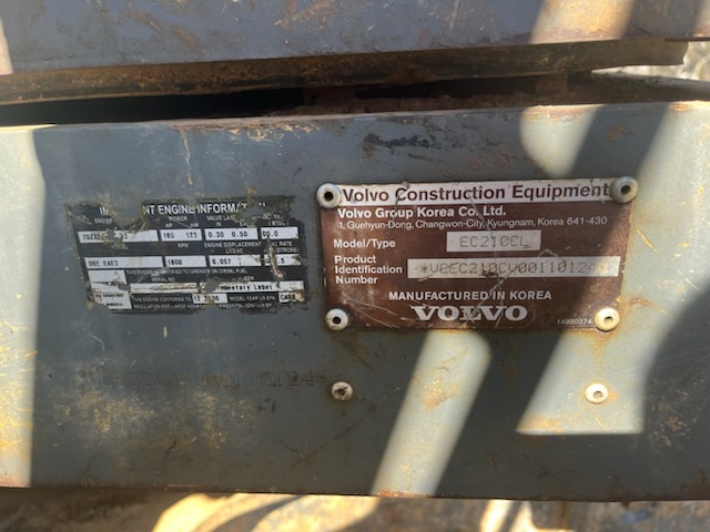 2007 Volvo EC210 CL Excavator (JM215), all hydraulic cylinders have just been rebuilt, manual thumb, no leaks, does not use oil, all pins and bushings are tight, the AC takes a can of Freon a month, side window broken, one of the door glasses is broken, shows 8,858 hours.