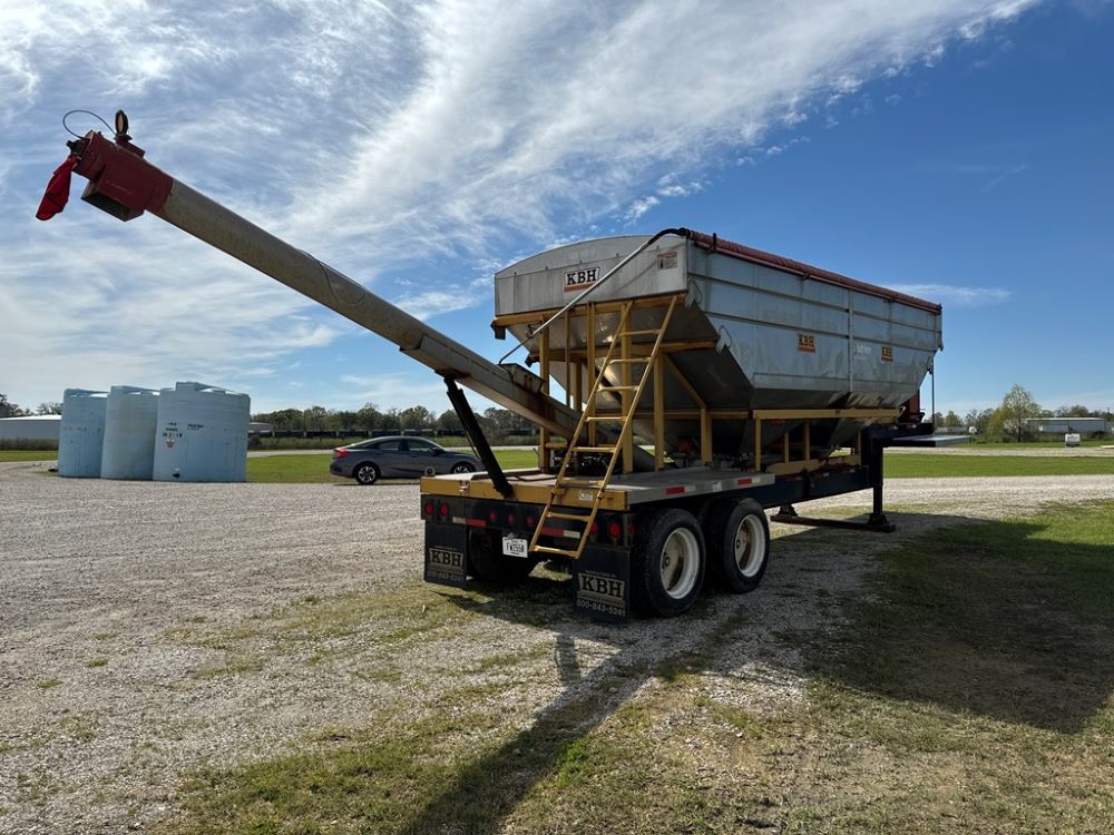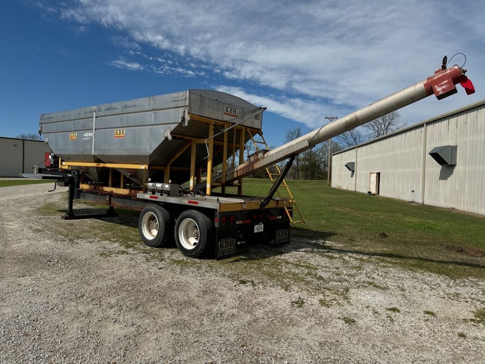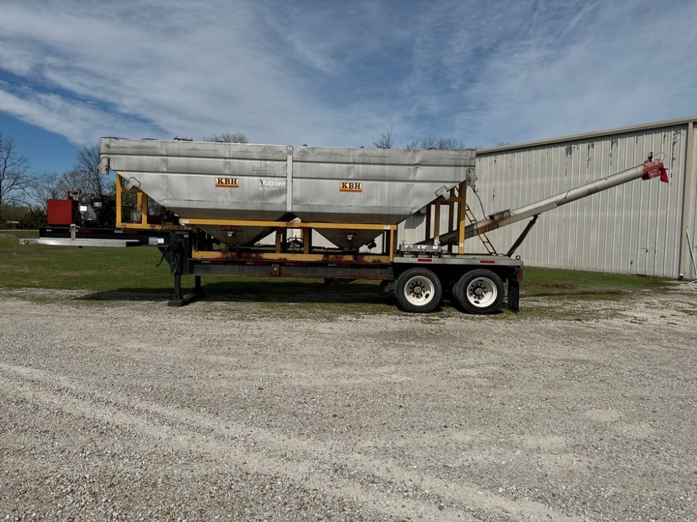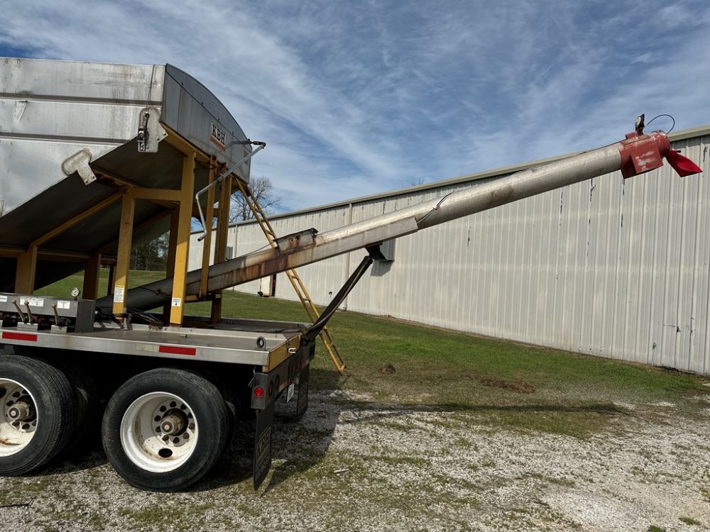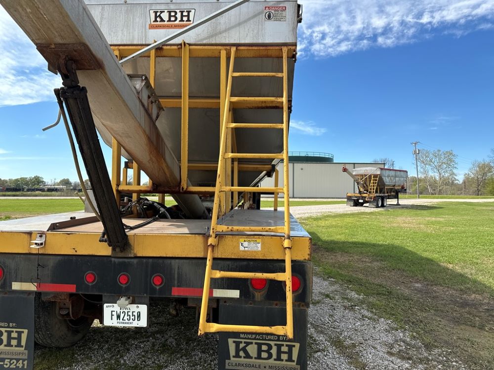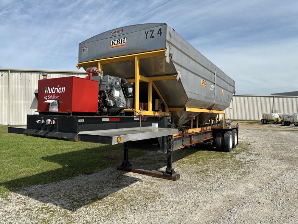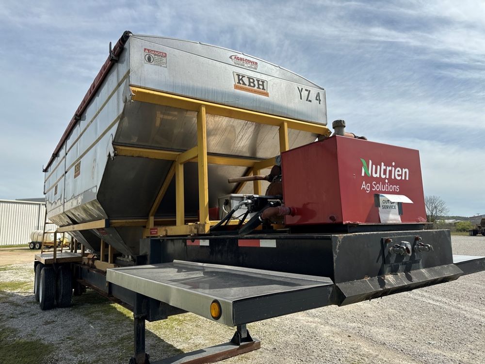 2015 KBH Dry Tender Trailer (PZ12087, Unit 31613), 2015 KBH 24 ton stainless steel dry tender trailer, self contained diesel engine, rear discharge auger, roll over tarp, tandem axle, spring suspension, 255/70R22.5 tires.