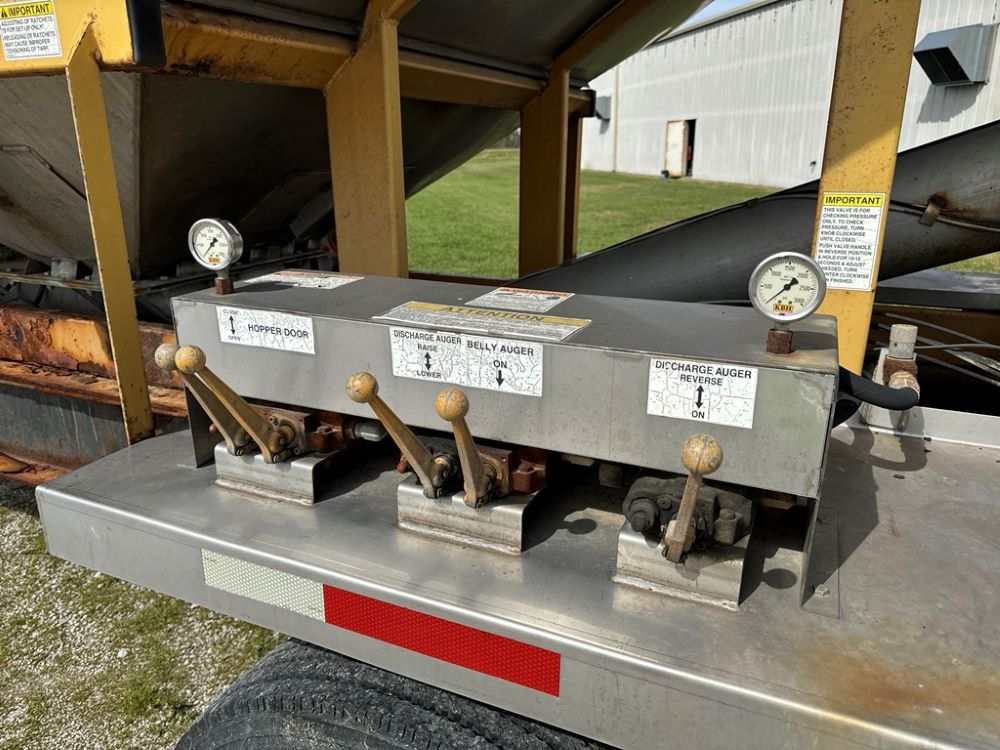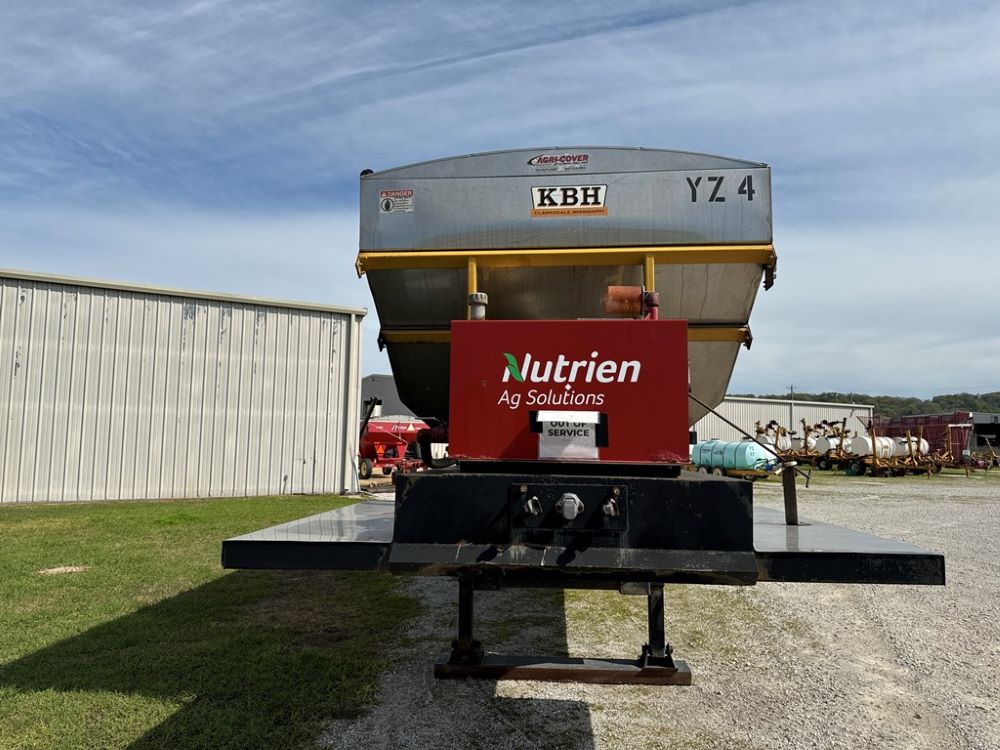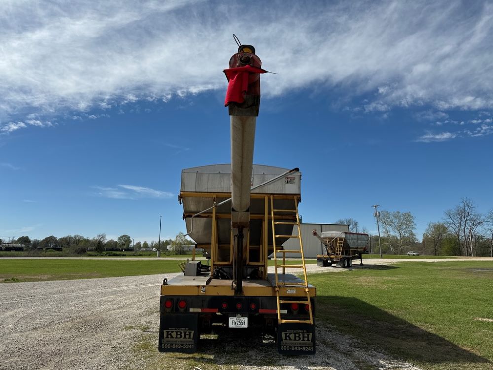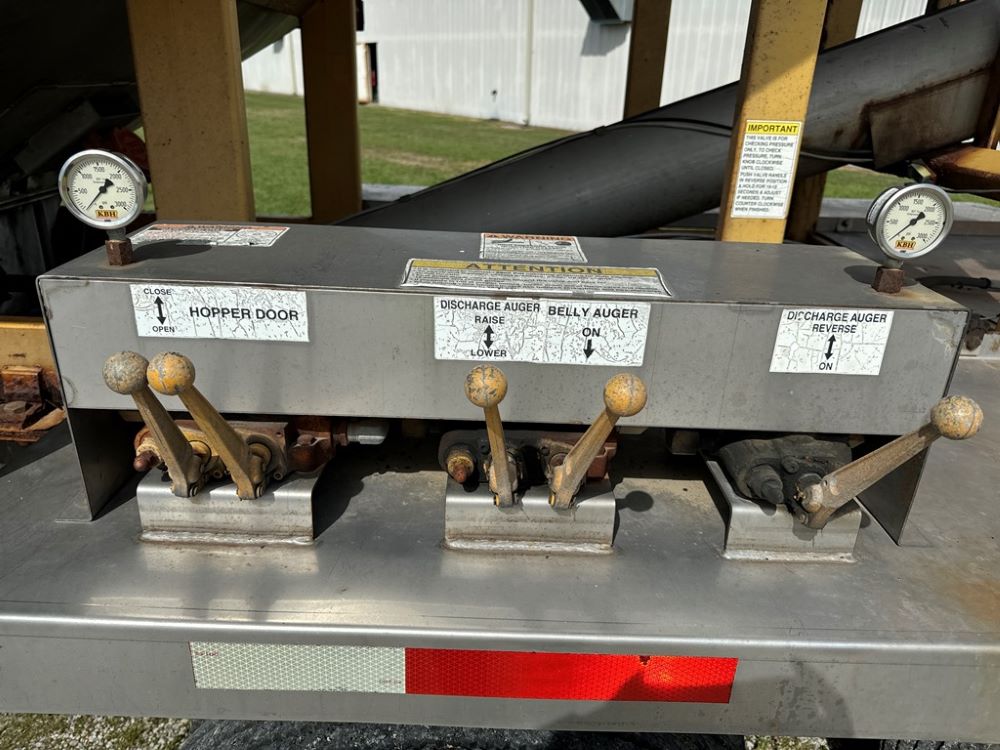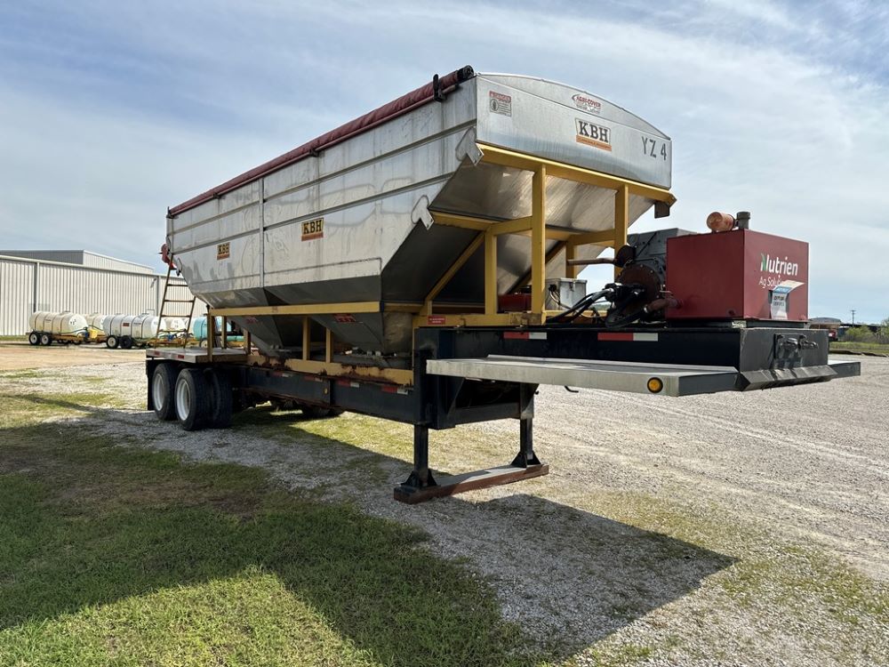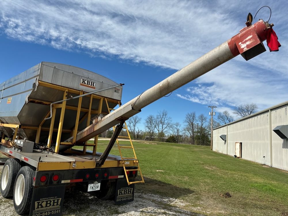 2015 KBH Dry Tender Trailer (PZ12087, Unit 31613), 2015 KBH 24 ton stainless steel dry tender trailer, self contained diesel engine, rear discharge auger, roll over tarp, tandem axle, spring suspension, 255/70R22.5 tires.