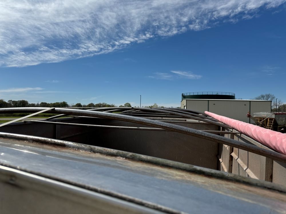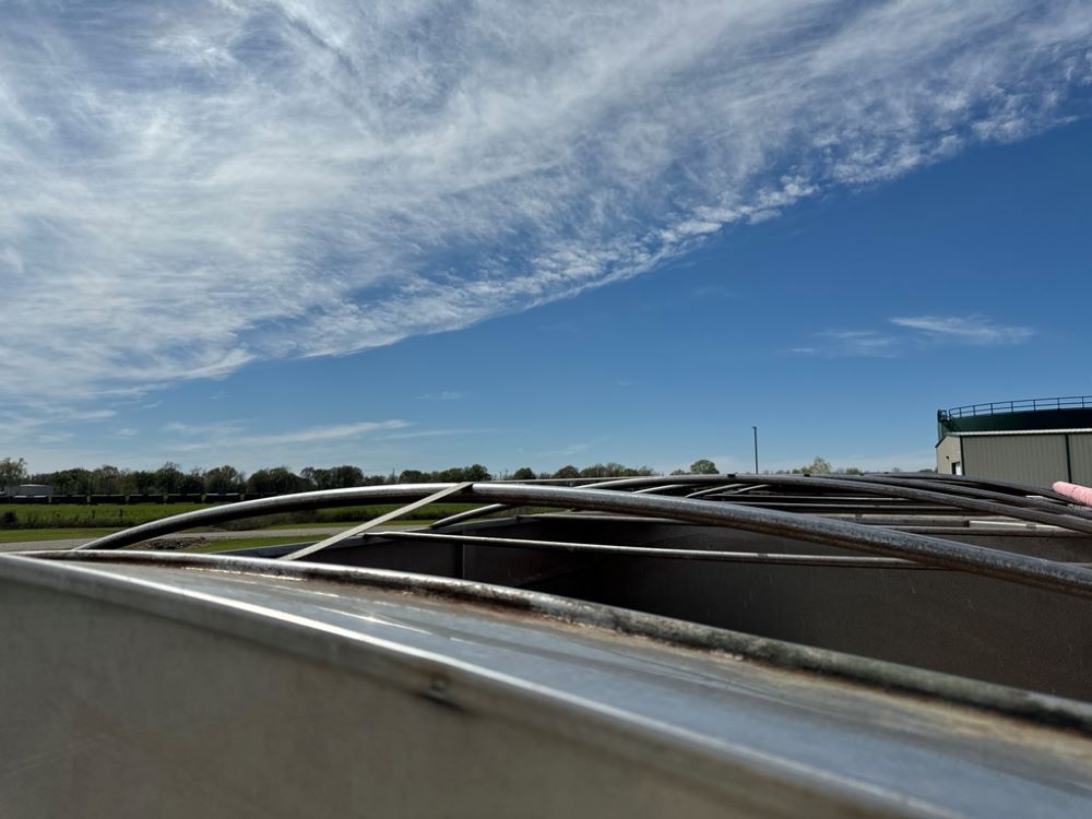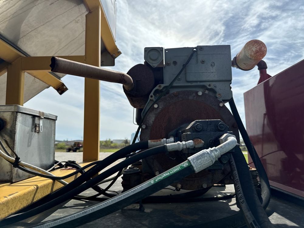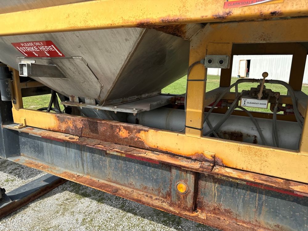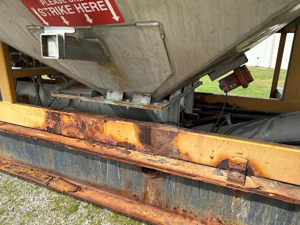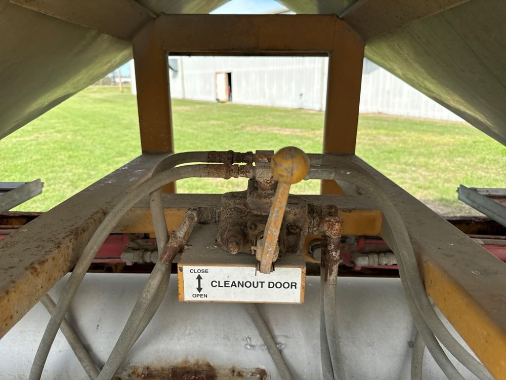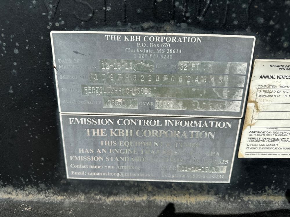 2015 KBH Dry Tender Trailer (PZ12087, Unit 31613), 2015 KBH 24 ton stainless steel dry tender trailer, self contained diesel engine, rear discharge auger, roll over tarp, tandem axle, spring suspension, 255/70R22.5 tires.
