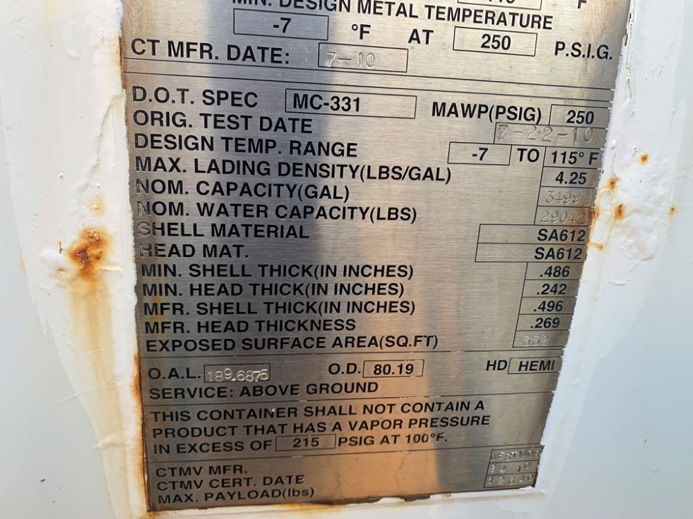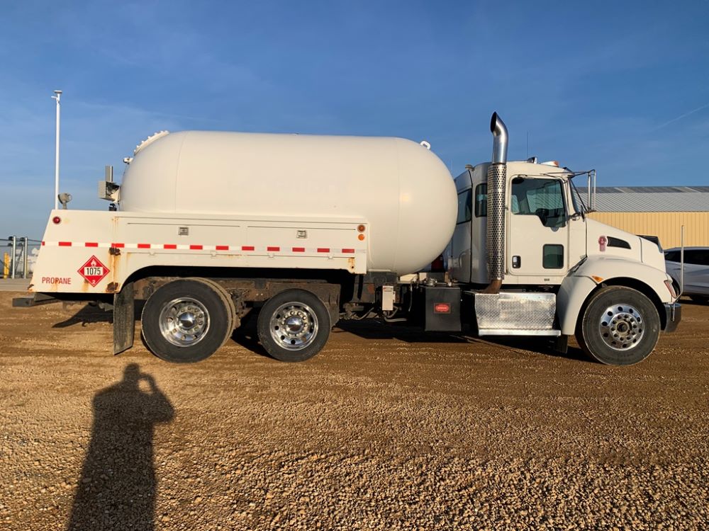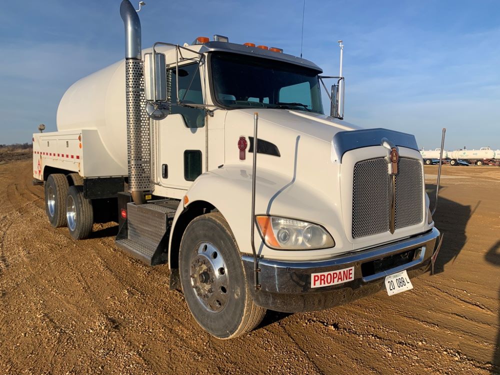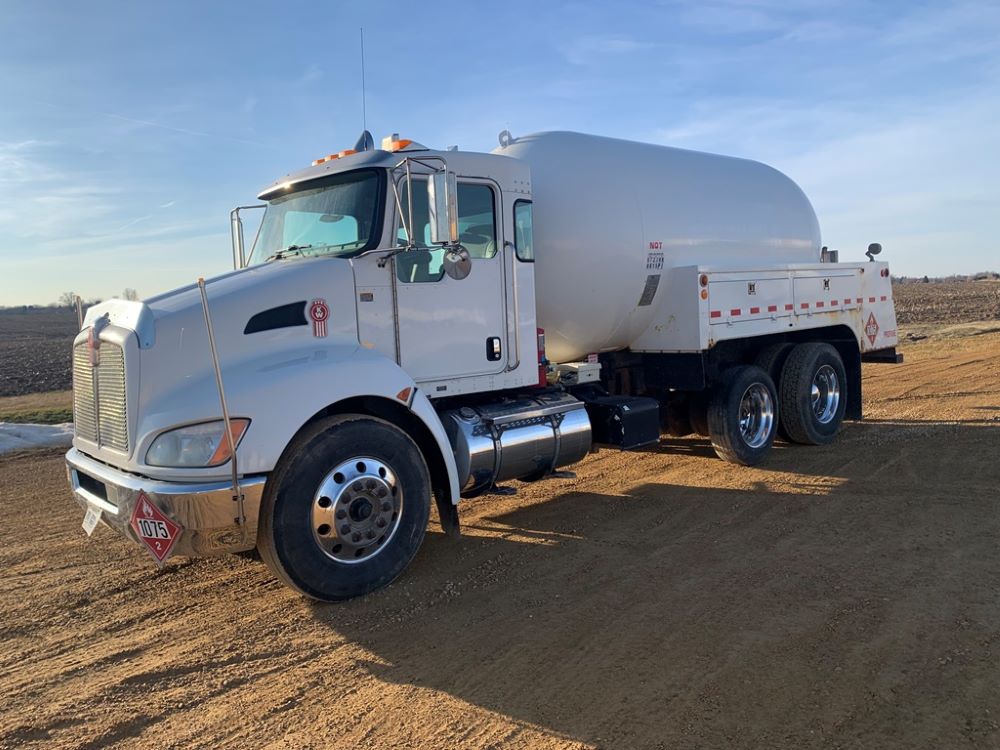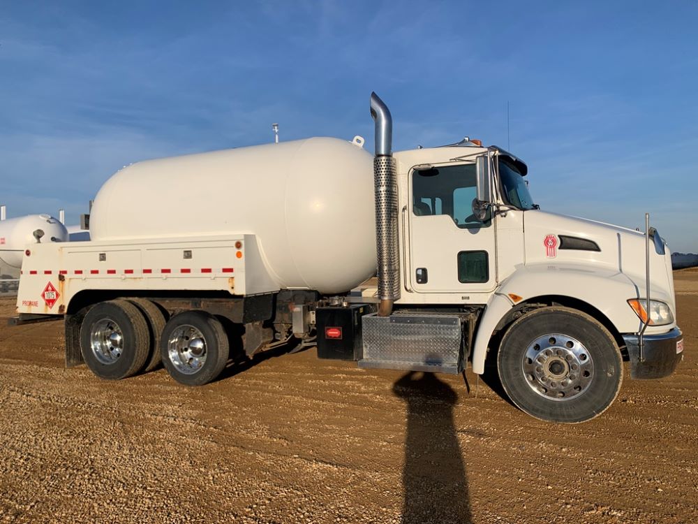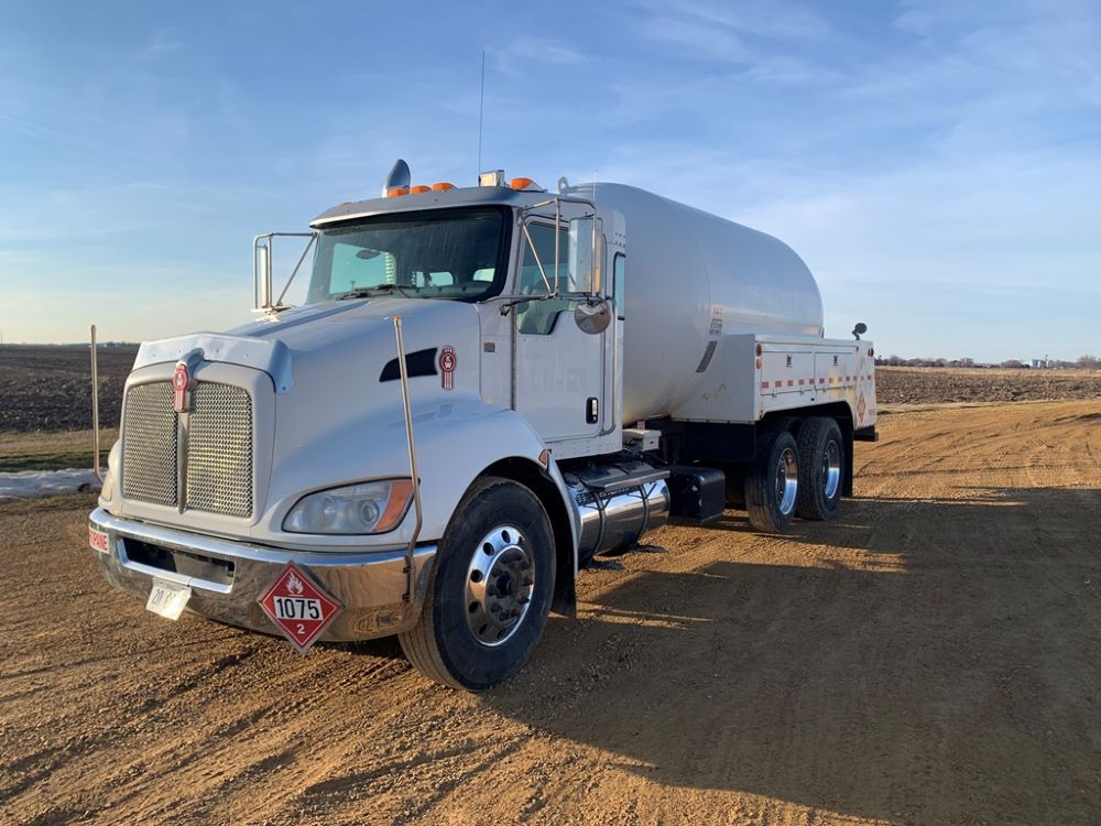 2010 Kenworth T370 LP Truck (CP3321), diesel engine, automatic transmission, single axle, air ride suspension, air lift tag axle, Westmor 3499 gallon LP bobtail tank w/rear delivery, LCMA meters, LCR II register 4 function remote, shut down, PTO, throttle and reel, engine brake, air dump, cab heat/air conditioning, cruise control, 22.5 tires, odometer shows 216,076 miles.