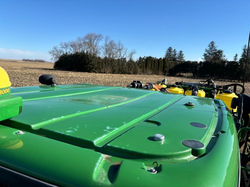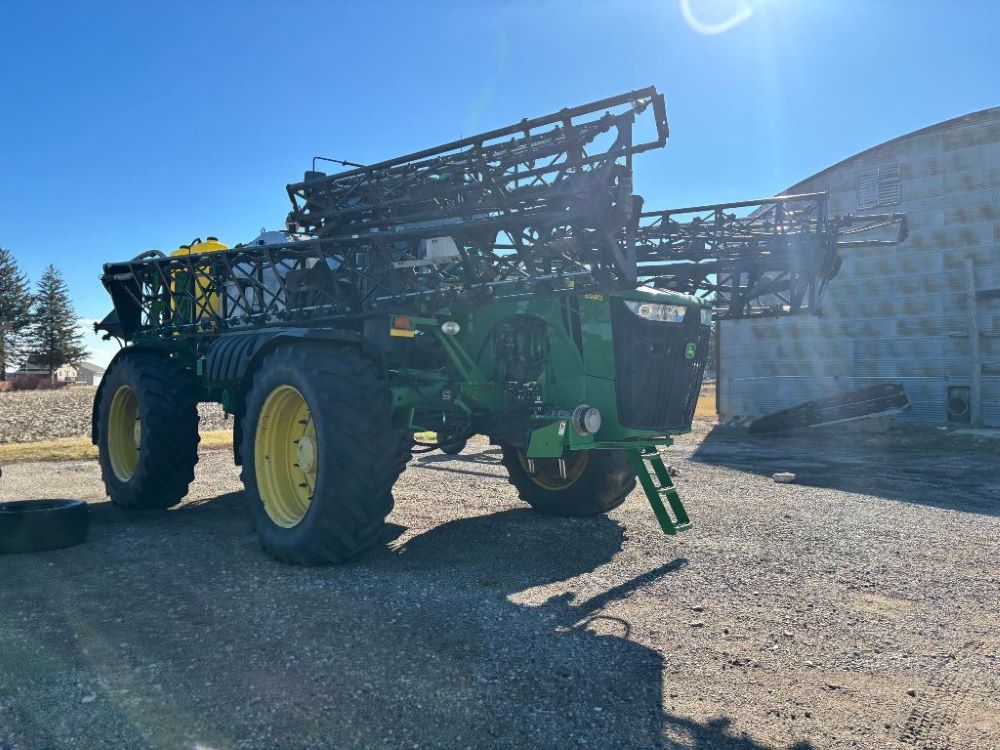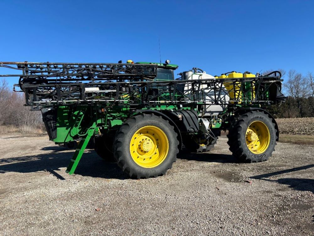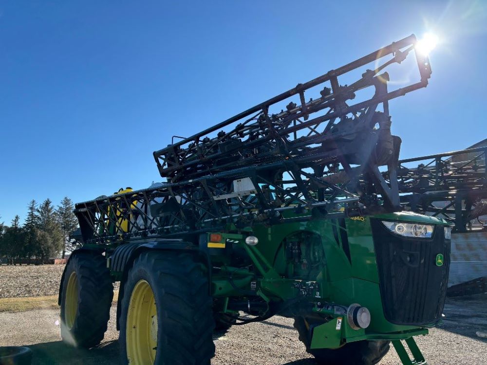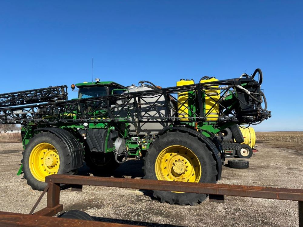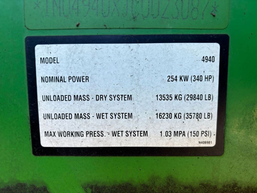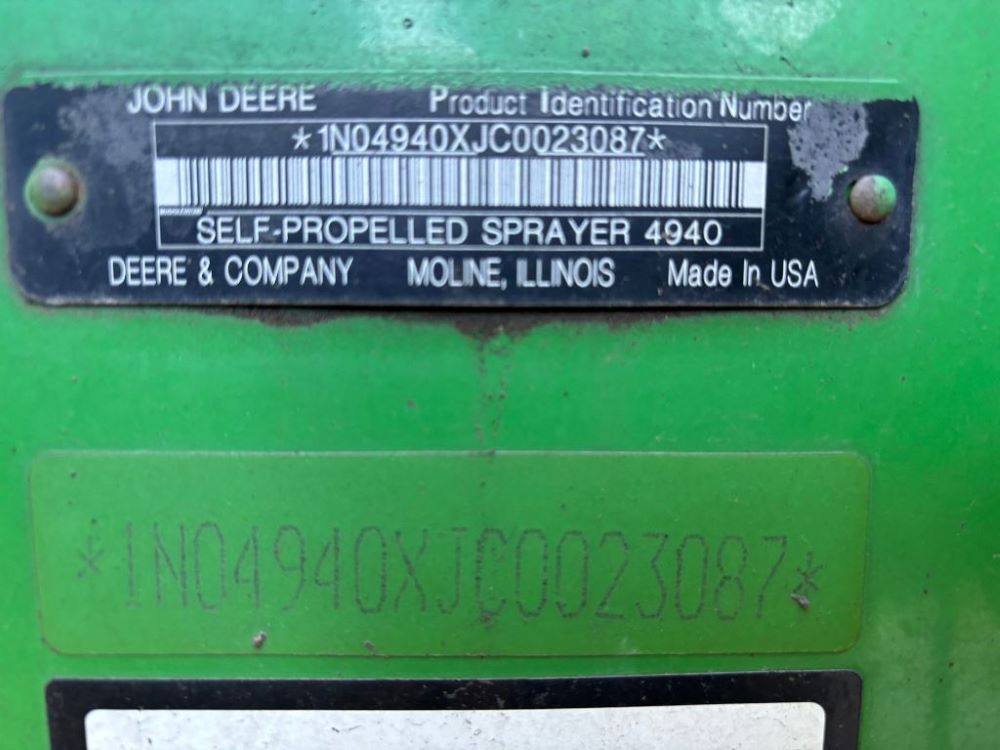 2013 John Deere 4940 Sprayer (GP6447, Unit 641), John Deere diesel engine (S/N RG6090R027606), hydrostatic transmission, air conditioning, heat, Am/Fm CD radio, beacon light, 1200 gallon stainless steel liquid system, 120' boom, stainless steel chemical inductor, 6 - 50 gallon poly direct injection tanks, pumps, Vogelsang front fill system, Good Year 620/70R46 tires, fenders, John Deere StarFires 3000 globe, John Deere monitor.