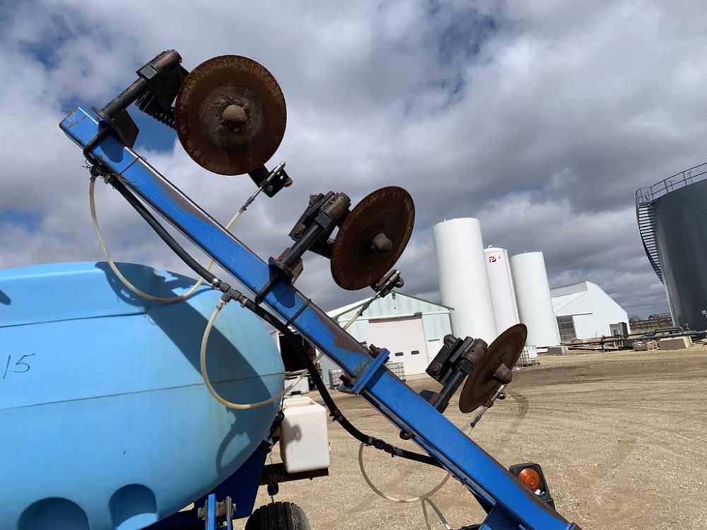 DMI 2800 Liquid Applicator (CP3480, Unit F50-4), DMI 2800 11 coulter liquid applicator, 850 gallon poly liquid tank, Hypro hydraulic pump, hydraulic wings, poly fresh water tank, 14L-16.1 flotation tires.