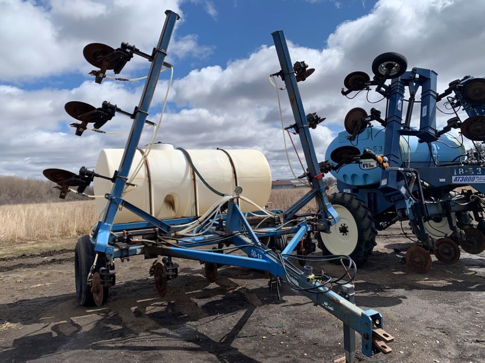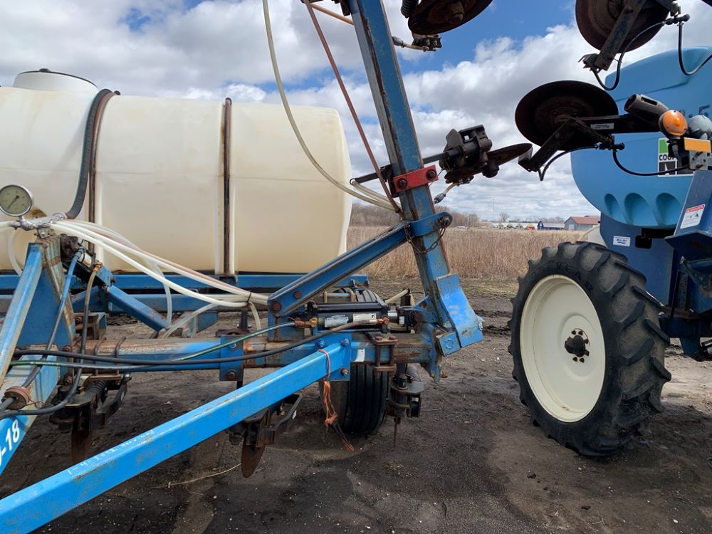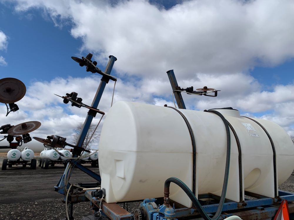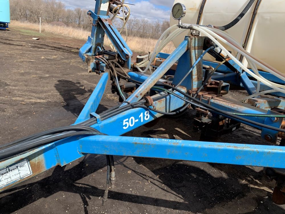 Ag Systems Liquid Applicator (CP3484, Unit F50-18), Ag Systems model 6000 11 coulter liquid applicator, 750 gallon poly liquid system, John Blue ground driven pump, hydraulic wings, 16.5L-16.1 flotation tires.
