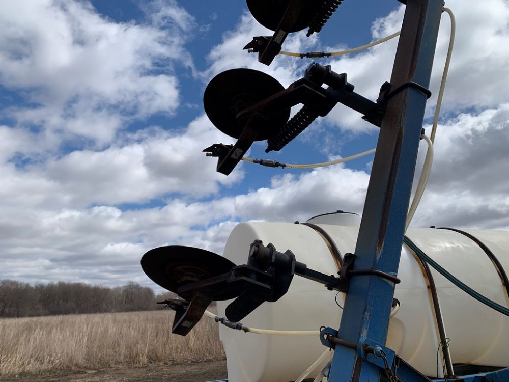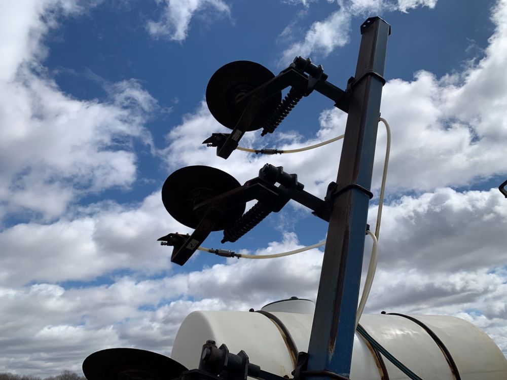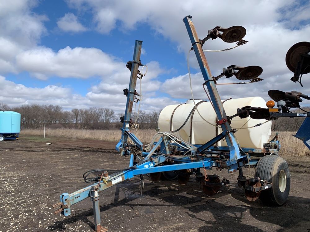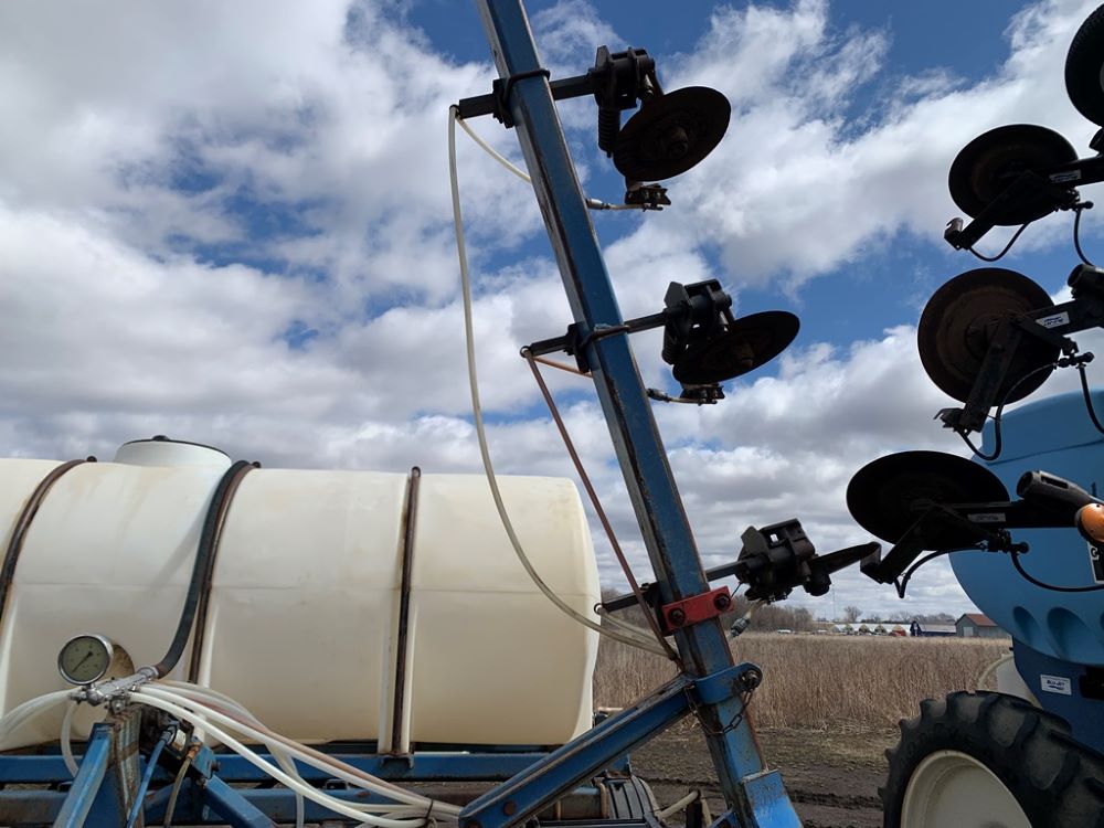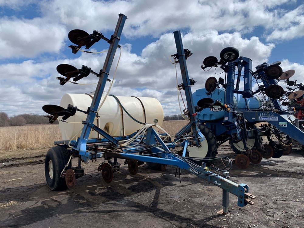 Ag Systems Liquid Applicator (CP3484, Unit F50-18), Ag Systems model 6000 11 coulter liquid applicator, 750 gallon poly liquid system, John Blue ground driven pump, hydraulic wings, 16.5L-16.1 flotation tires.