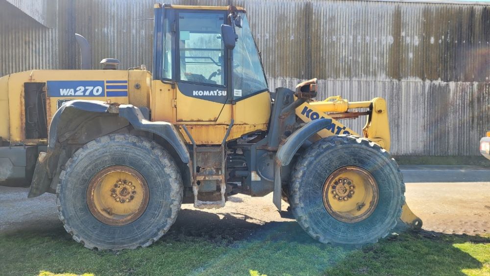 2016 Komatsu WA270 Loader (PZ12089, Unit 37301), diesel engine, shuttle shift transmission, cab, lights, heat, Am/Fm radio, No bucket, Michelin 20.5R25 tires, shows 2,561 hours, 7,217 miles.