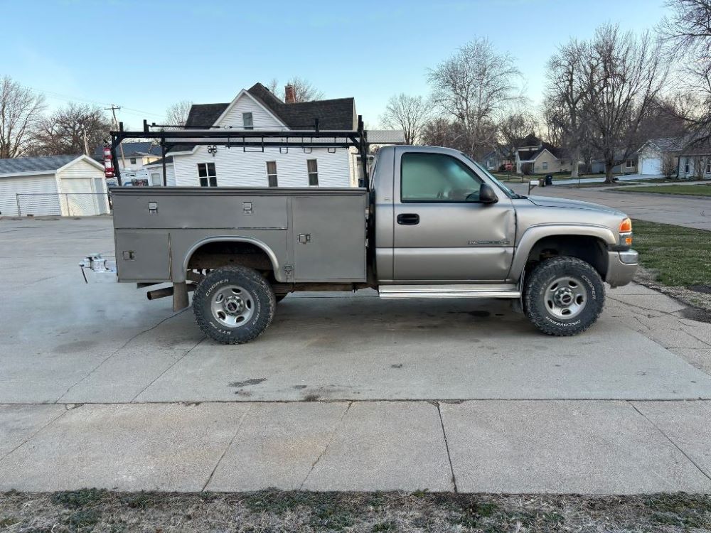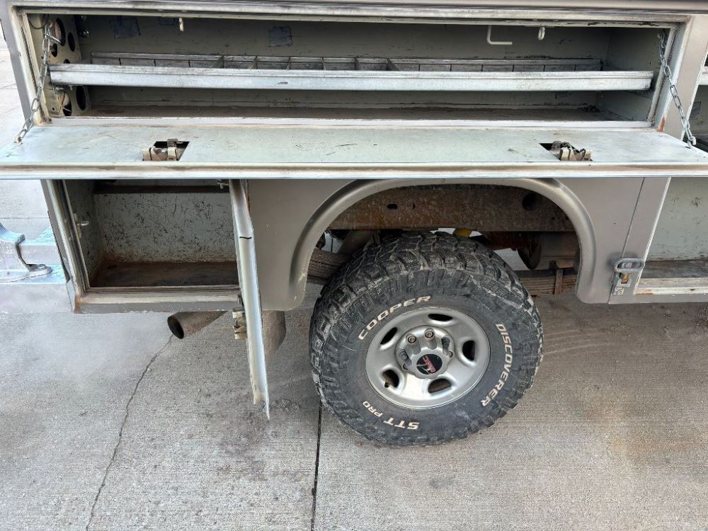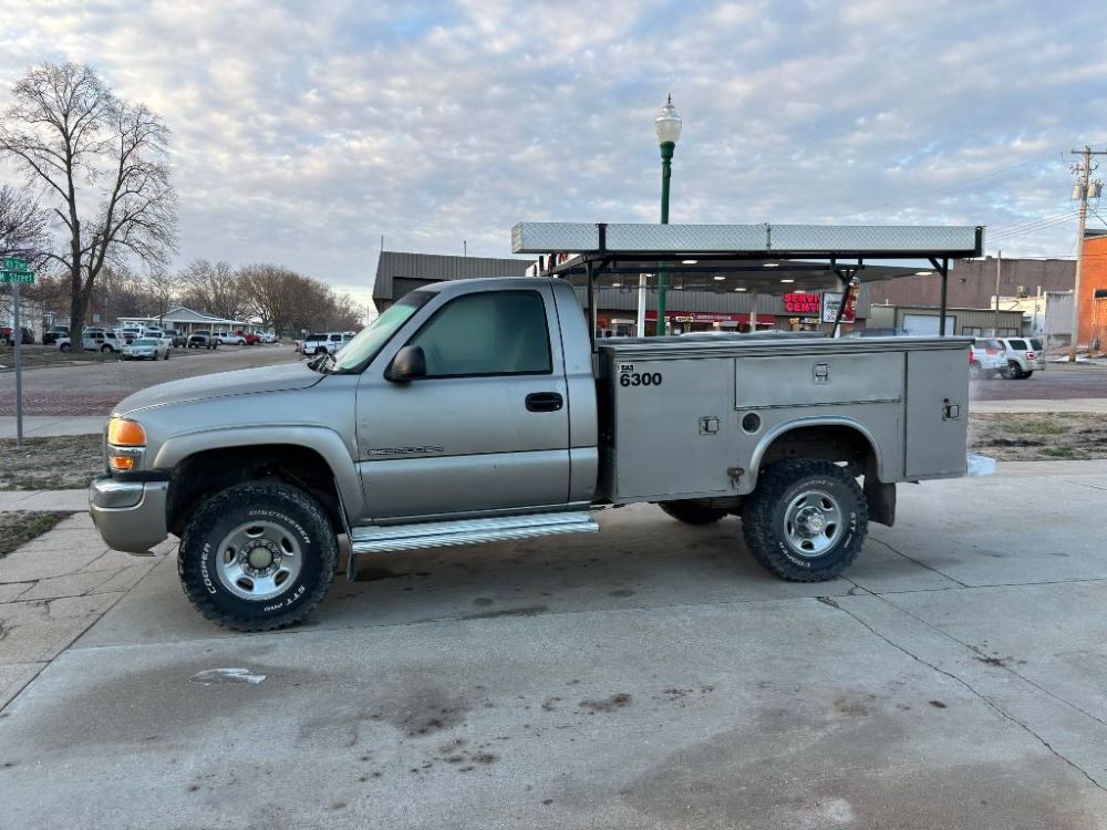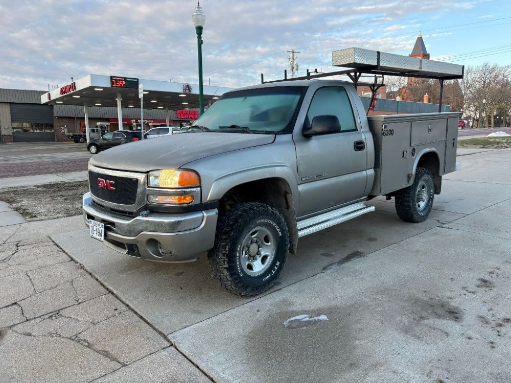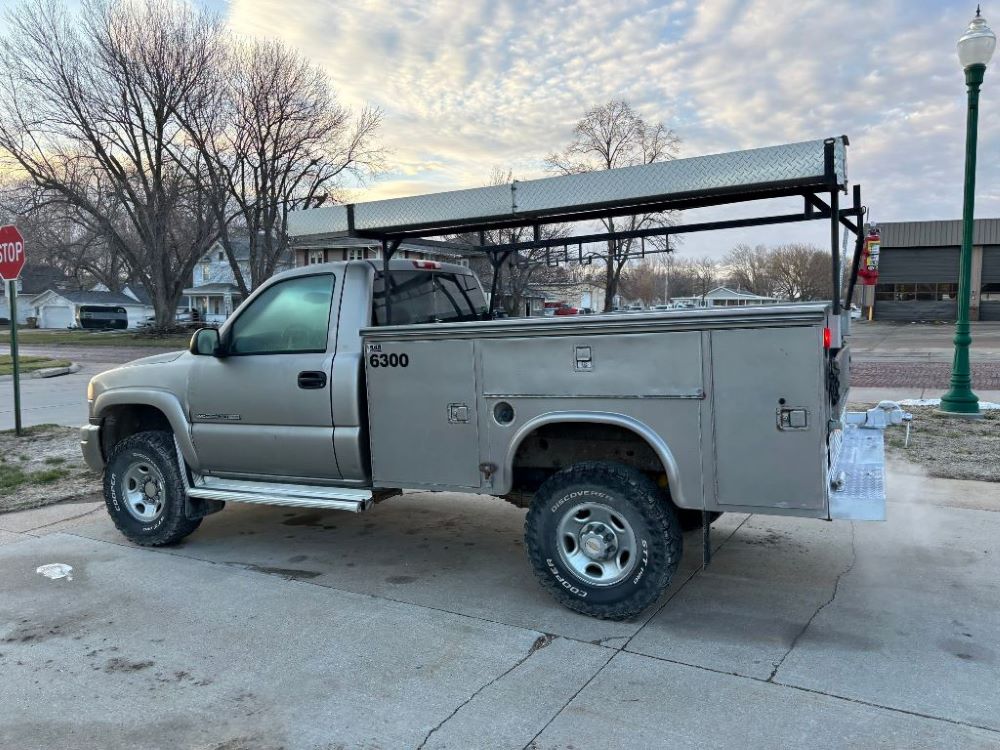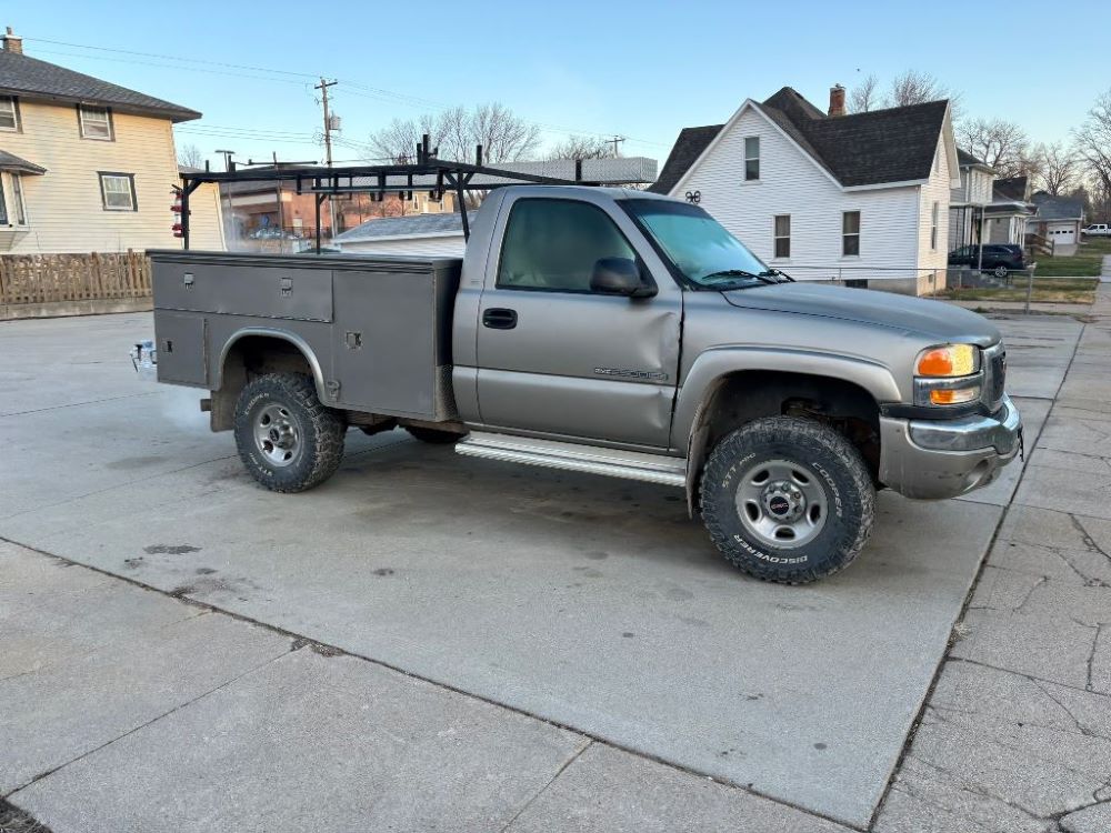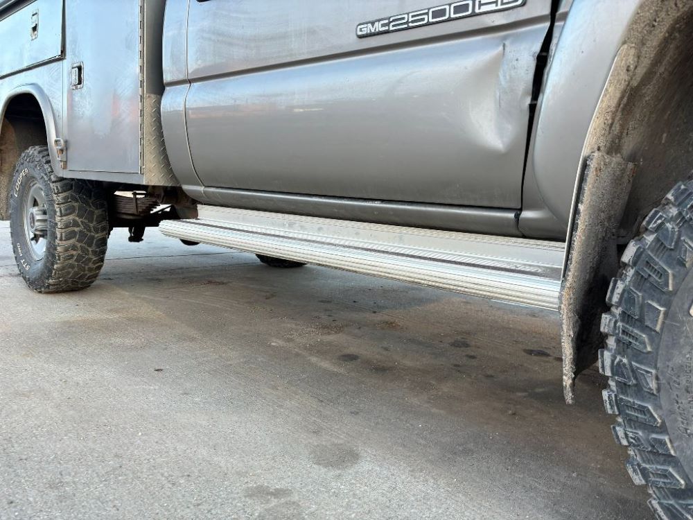 2003 GMC 2500HD Service Truck (GP6949, Unit 6300), 4x4, Vortec gas engine, automatic transmission, air conditioning, heat, Am/Fm CD radio, cruise control, power windows & locks, running boards, Knapheide model 796FJ1 service body, S/N 028435, rear hitch, LT285/75R16 tires, shows 118,676 miles.