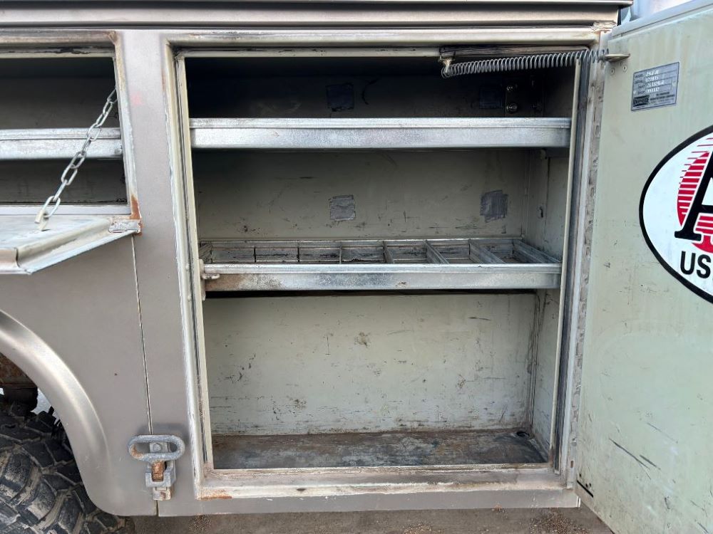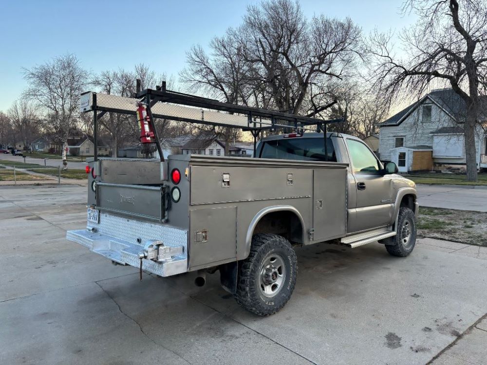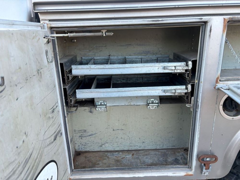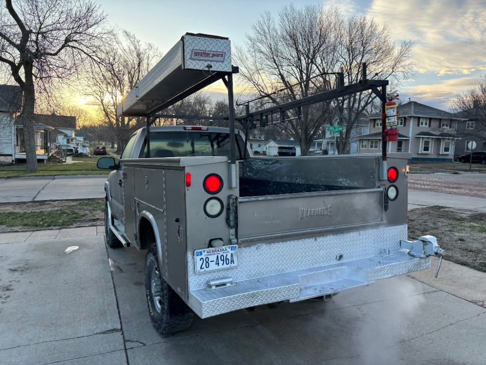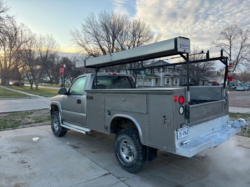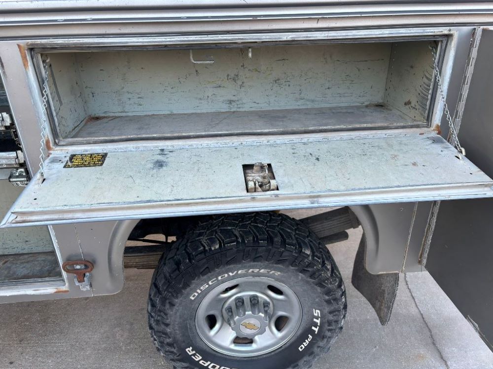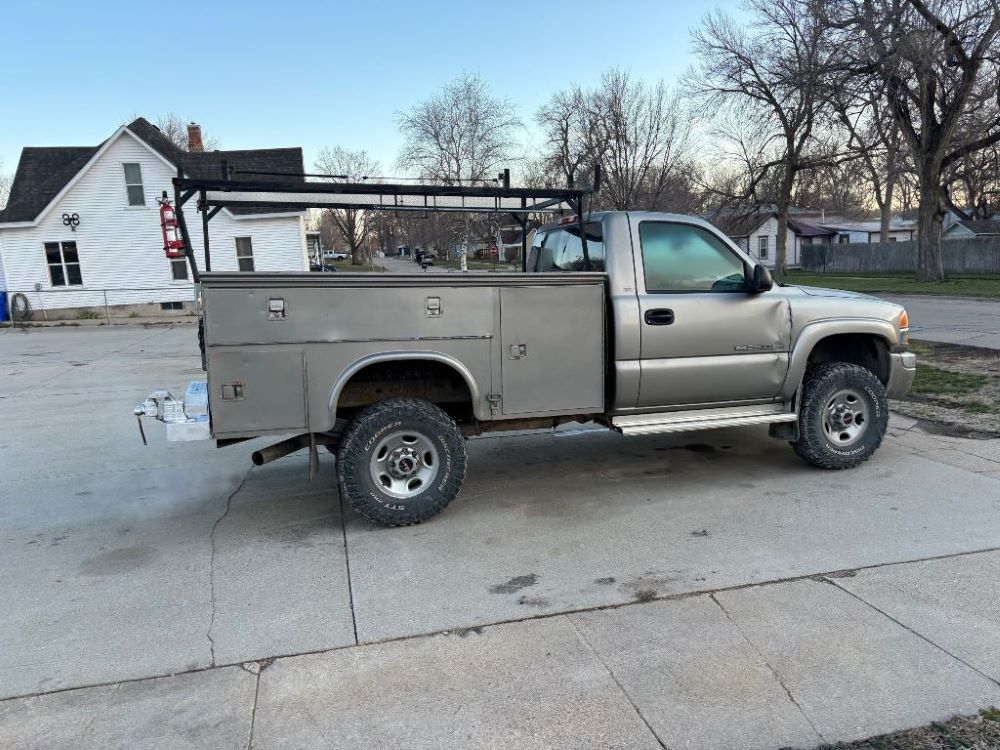 2003 GMC 2500HD Service Truck (GP6949, Unit 6300), 4x4, Vortec gas engine, automatic transmission, air conditioning, heat, Am/Fm CD radio, cruise control, power windows & locks, running boards, Knapheide model 796FJ1 service body, S/N 028435, rear hitch, LT285/75R16 tires, shows 118,676 miles.